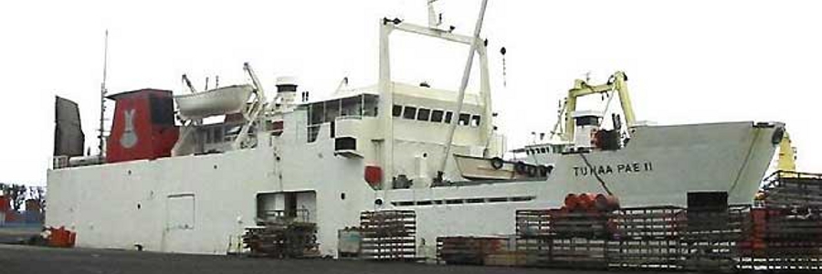 Partant de Papeete, le Tuhaa Pae II (mis à jour 2017 : C’est à présent le Tuhaa Pae IV) est un cargo mixte qui transporte denrées, matériel et personnes vers toutes les îles Australes et qui s’y arrête… on ne sait pas vraiment à quelle fréquence. Une fois par mois ? Une fois tous les deux mois ? Une fois toutes les trois semaines ? Les fréquences divergent. Par contre, le passage promet d’être folklorique, si j’en crois le récit de Joëlle qui a eu l’occasion de se rendre dans les Australes à son bord.
