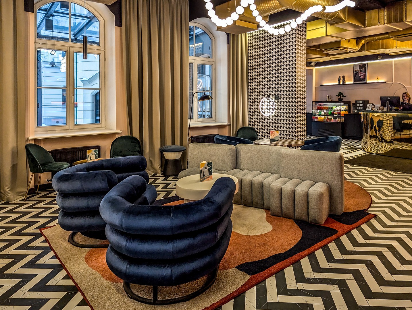 Un de mes hôtels coup de cœur pour le qualité-prix et la localisation : dans le Quartier Art Déco, à proximité de pleins de chouettes bars, de restaurants mais aussi, du quartier des brasseries (j’y reviendrai plus loin). Il vient de changer de main, après avoir appartenu au groupe Nordic Choice, il est transféré au groupe Accor qui l’a tout récemment (2024) transformé en Tribe, leur marque qui rassemblent des hôtels design, mais à prix corrects. Dans ce cas-ci, c’est un hôtel de plus de 100 ans qui a été rénové. Si certaines parties sont tout à fait contemporaines (le lobby, le bar, l’espace commun et la salle de petits-déjeuners), des souvenirs du passé ‘comme des vitraux, un vieil escalier et des lampes d’époque) ont été préservées.