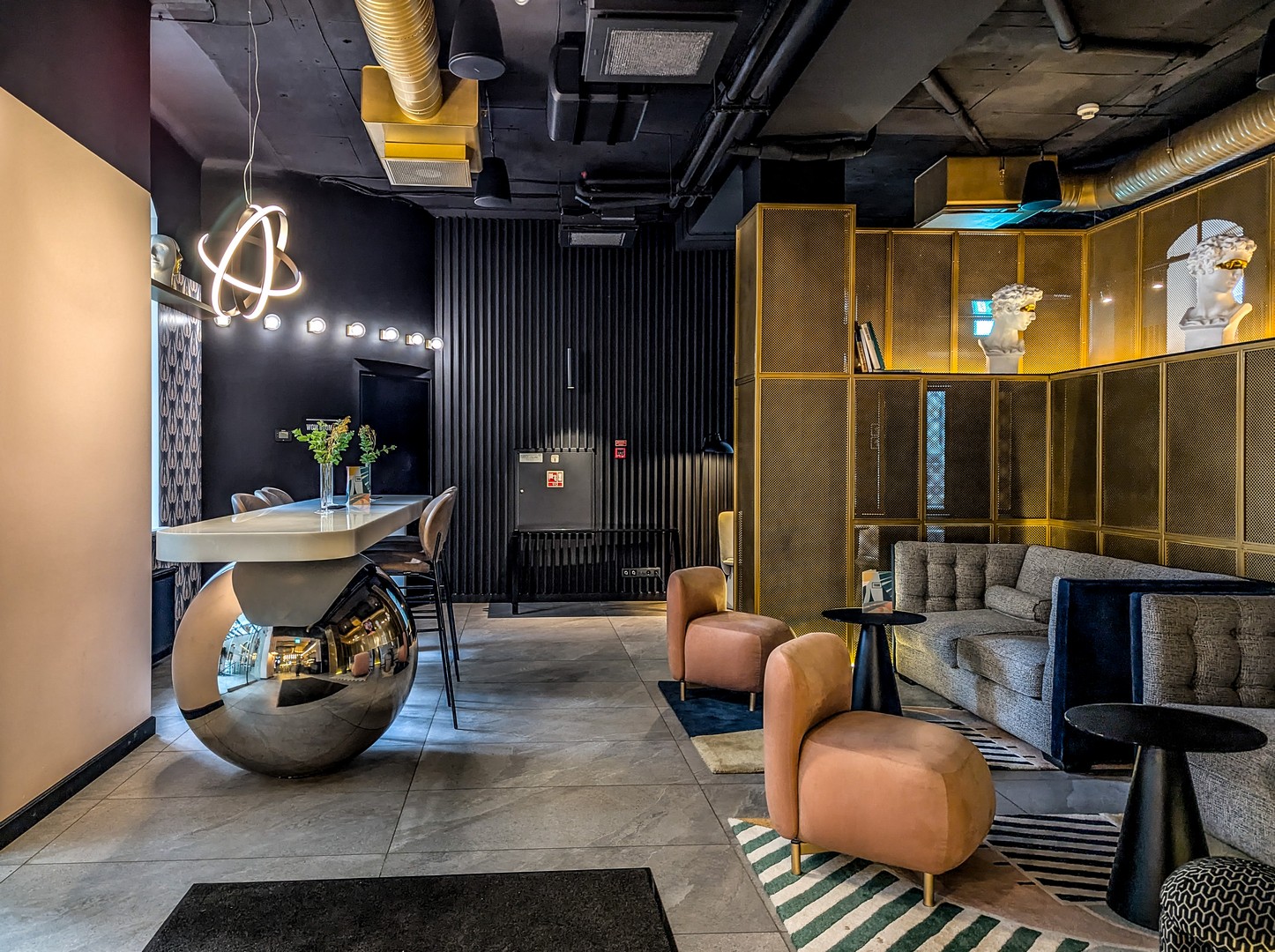 Oui, oui, j’avoue, quand je voyage avec une copine, j’aime bien qu’on fasse un peu plus péter le budget… mais à condition que cela reste raisonnable ! Heureusement, dans les pays baltes et nordiques, de bon deals sont à avoir en hiver et nous avons réussi à décrocher ce quatre étoiles à soixante Euros par nuit (ça fait 30 par personne). Son grand atout : il est situé à l’extrémité du quartier Art Nouveau, à cinq minutes à pied de la gare, 10 minutes du centre et d’un arrêt de bus pour l’aéroport. On ne peut pas le louper, c’est un énorme bâtiment et tout un pan de mur est orné de LED’s multicolores. Le lobby et le bar sont vraiment bien foutus (il y a même une sorte d’espace de travail qui ressemble à un loft de co-working pour ceux qui veulent travailler confortablement hors de leurs chambres).