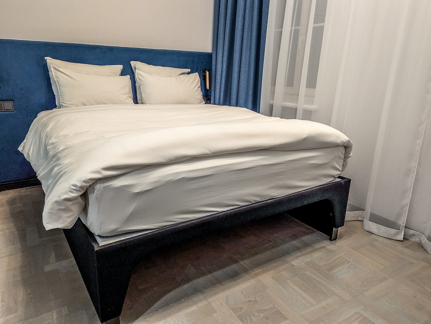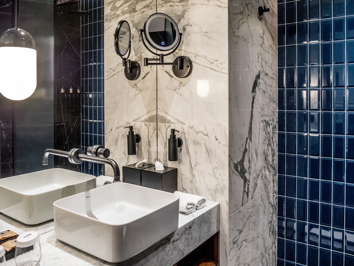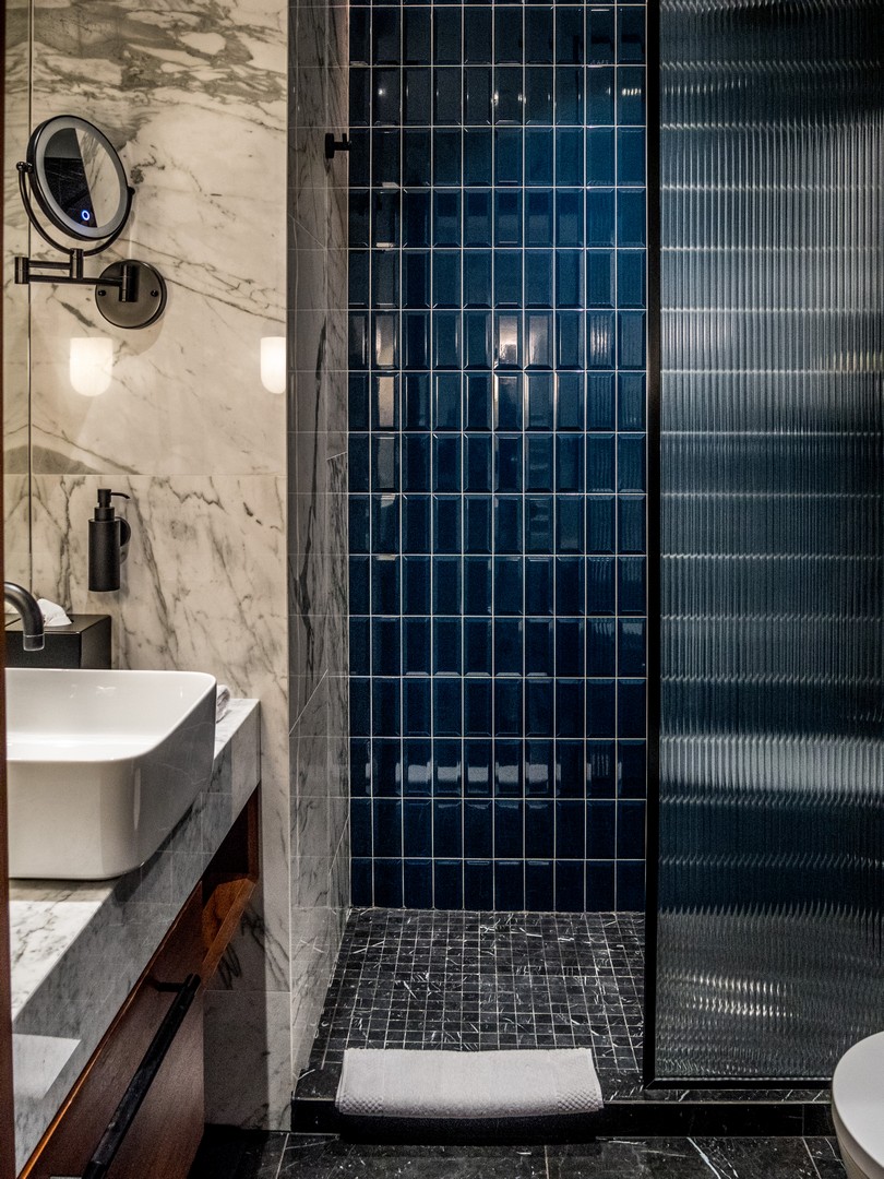 Côté chambre, c’est un peu minimaliste par contre, voire même un peu sévère avec le bleu pâle utilisé pour la déco. Les salles de bains n’ont elle, pas été vraiment rénovées depuis le passage chez Accor. On dirait que tout le budget est passé dans le design des espaces communs. Elles restent néanmoins confortables et plus que fonctionnelles. Et puis, on est là pour visiter, non ?