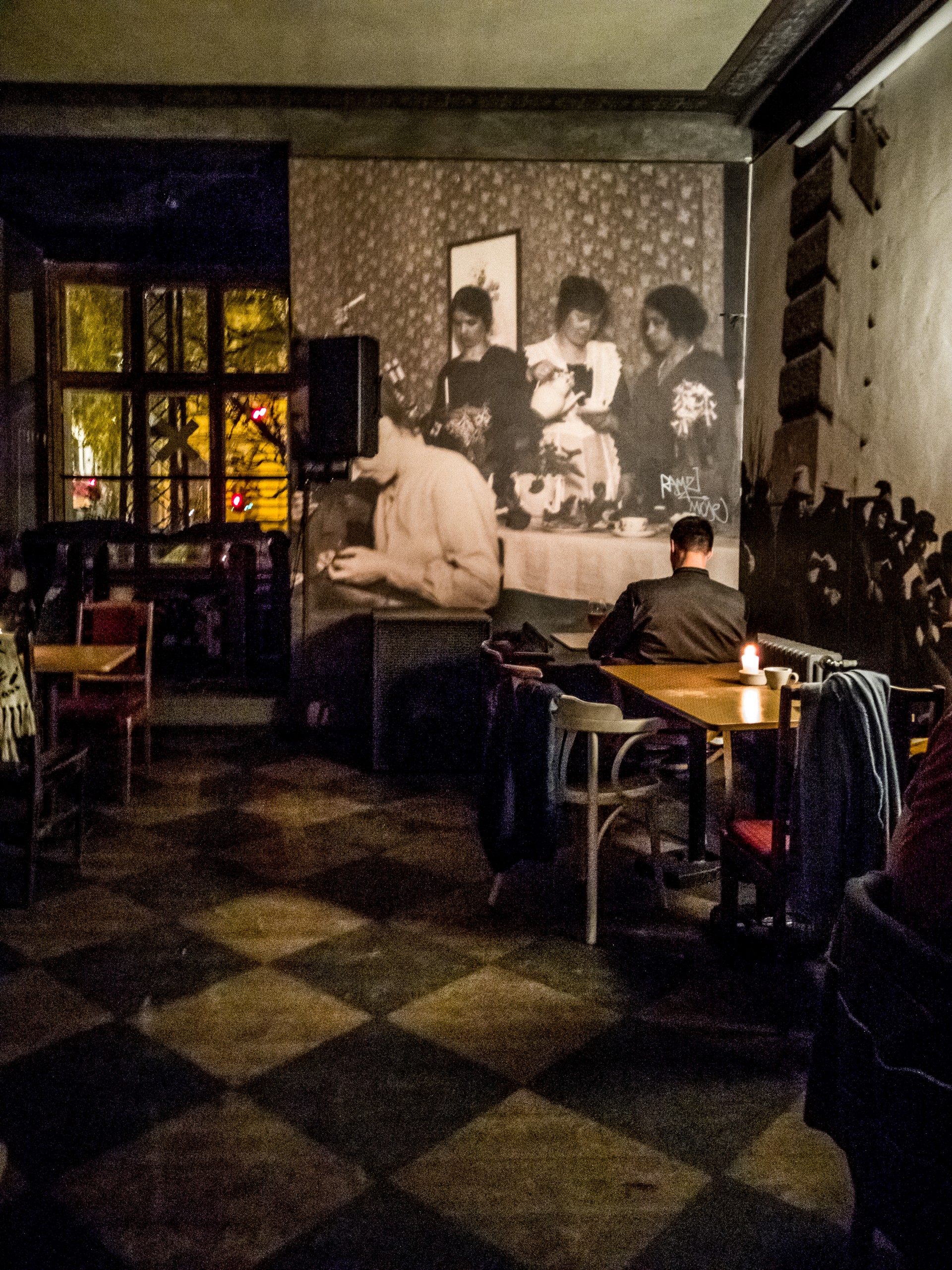 Impossible de ne pas remarquer cette maison de bois en plein quartier Art Nouveau. Elle avait attiré mon regard alors que je me promenais le soir. A première vue, elle m’avait semblé abandonnée mais les fenêtres me font voir de la lumière et même des personnes attablées. Il n’en fallait pas plus pour titiller ma curiosité ! C’est en poussant enfin une petite porte qui passe inaperçue que je tombe dans un monde un peu enchanté comme je les aime : un peu déglingué, peuplé d’une faune bohème, on dirait que la déco a été inventée au fur et à mesure et au gré des pièces… et des pièces, il y en a beaucoup, c’est un vrai labyrinthe mais ce n’est pas étonnant, c’est en centre culturel, il faut donc de la place ! A l’étage, je vais même découvrir une salle de cinéma… et une autre qui est dédiée aux performances et je tombe justement sur un spectacle de poésie ! J’aperçois même une jolie terrasse dans la cour intérieure. Bref, je suis séduite ! Reste plus qu’à choisir ma pièce préférée pour boire une bière pas chère (j’en choisi une avec un beau carrelage noir et blanc) et à regarder autour de soi et profiter. N’oubliez pas de vérifier l’agenda si vous décidez d’y aller, il y a des soirées, concerts en même du stand-up en anglais !