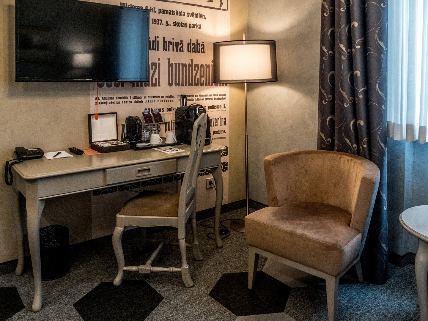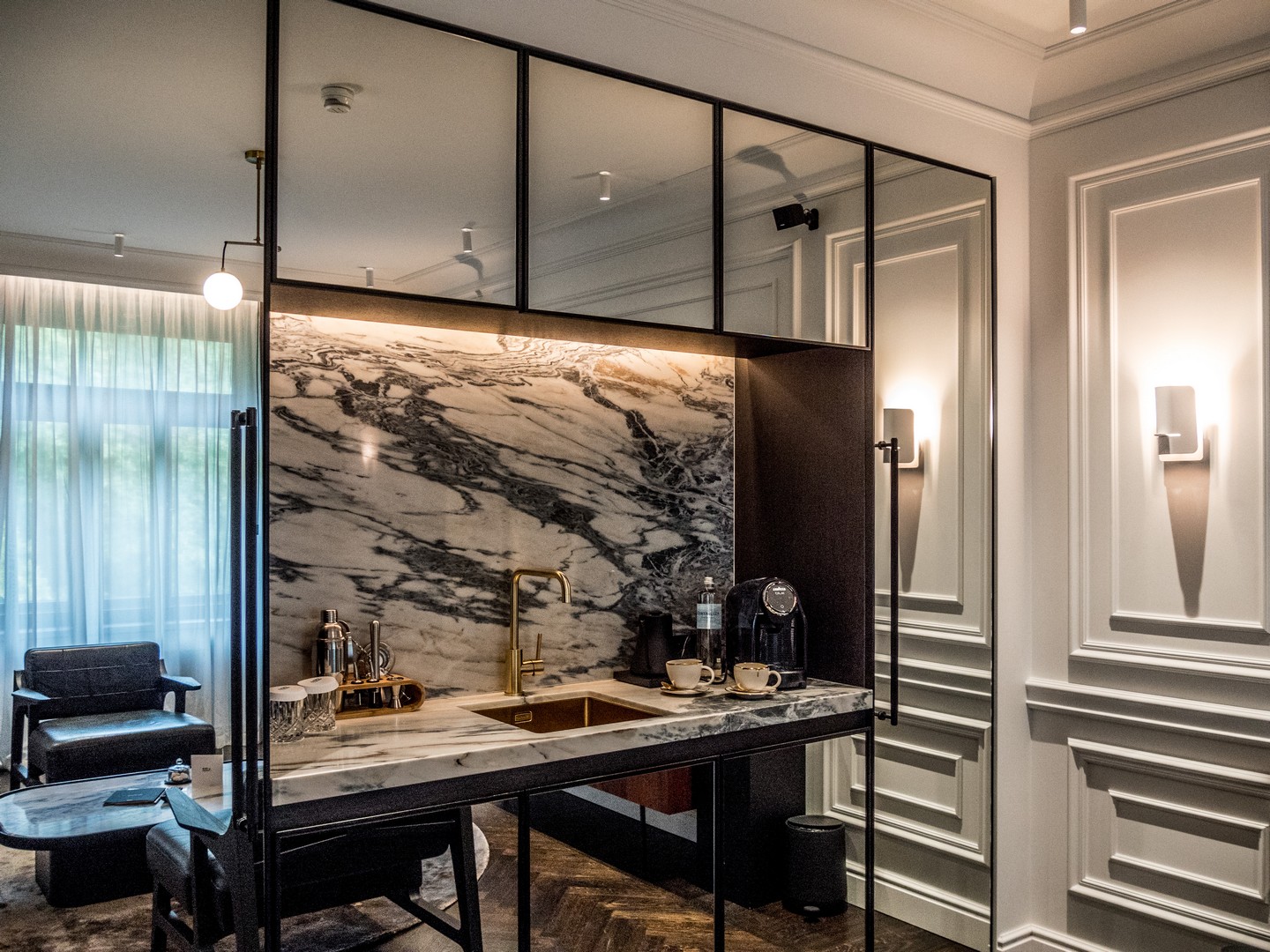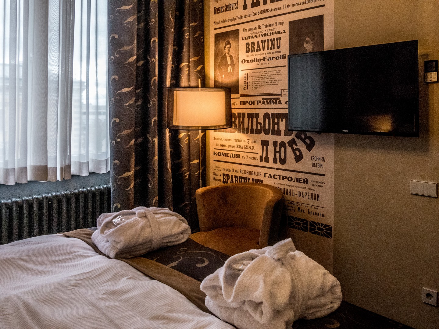 Difficile de trouver un meilleur emplacement que le Métropole : à la fois à la lisère de Vecriga (vieille ville) et du quartier Art Nouveau et à quelques minutes de la gare centrale de Riga, il est aussi le plus ancien hôtel encore en activité de la ville puisqu’il a ouvert ses portes en 1871 ! Un hôtel dans le pur style de la belle époque, avec une façade majestueuse et un splendide auvent qui protège les clients des intempéries lorsqu’ils débarquent. Ce 4 étoiles joue la carte du confort bourgeois de l’époque avec de larges fauteuils sculptés, du papier peint baroque, de lourds rideaux de velours ou encore les gros radiateurs en fonte encore présents dans les chambres, mais sans oublier un petit twist moderne avec des têtes de lits ouvrages, des salles de bain contemporaines et une palette de déco qui va du blanc, au gris, à l’anthracite et l’ambre (on en trouve sur les plages de Lettonie).