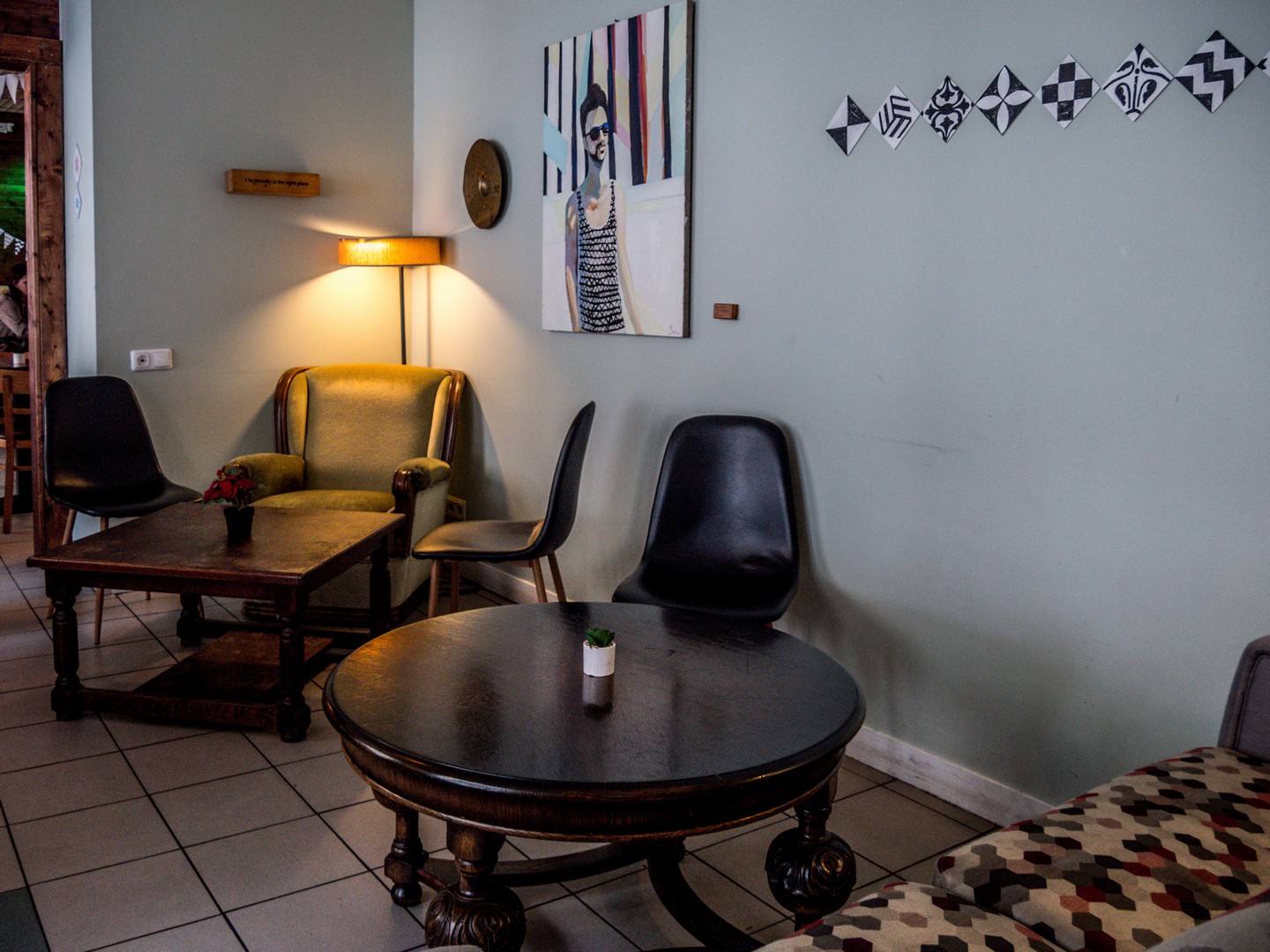 - Un coin plus petit avec fauteuils, idéal pour lire ou tricoter