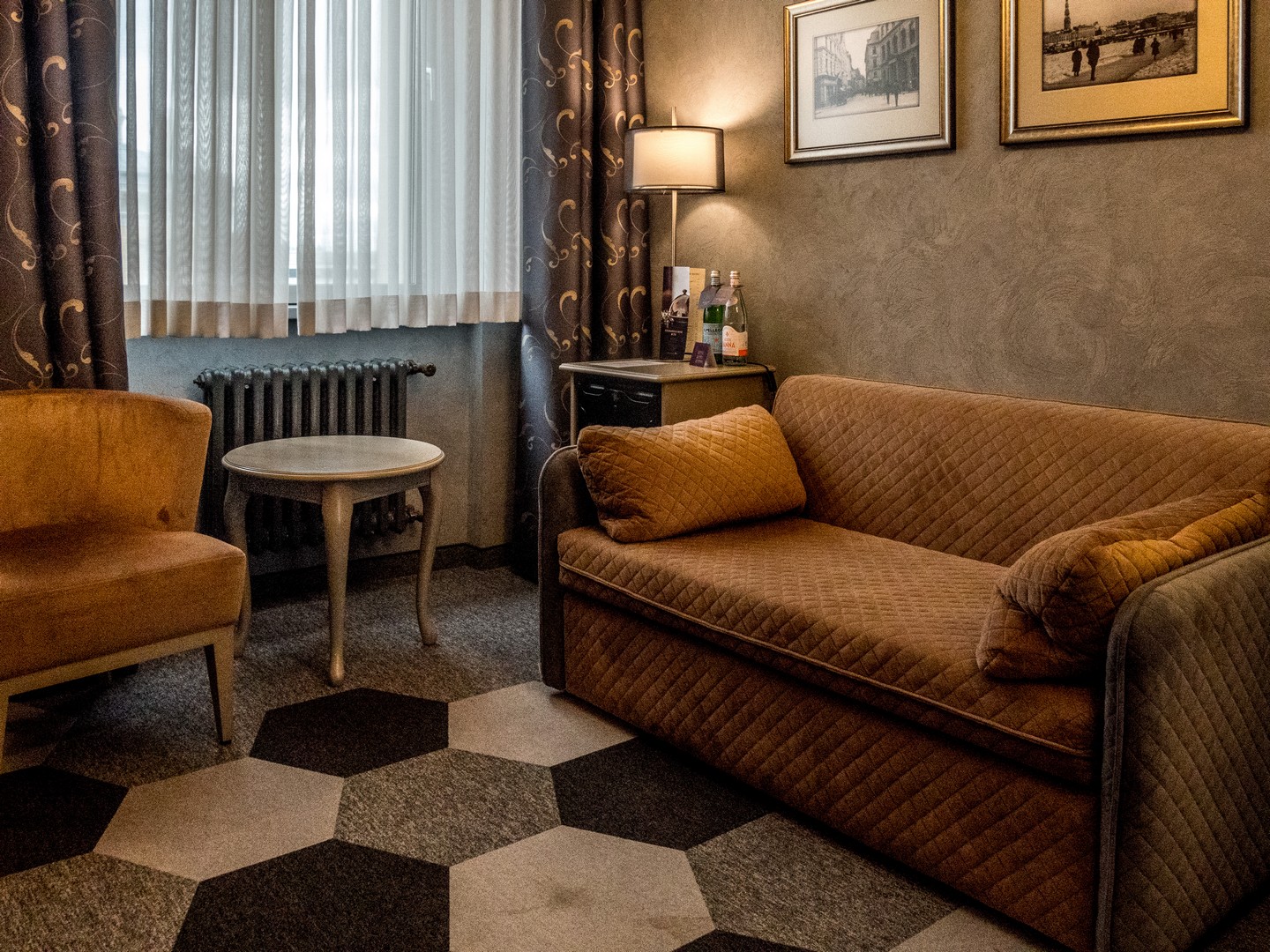 Envie de séjourner dans le vieux Riga pour un petit prix (c’est à dire à partir de 30 Euros pour une personne) ? Ne cherchez pas plus loin ! En plus, il est à 5 minutes de l’arrêt de bus de la ligne de l’aéroport. Que demande le peuple ? Un restaurant ? Il y en a un petit dans la cave de cette ancienne maison. Pas de la grande cuisine mais je dois dire que ça dépanne bien quand comme moi, on arrive fatiguée et affamée. J’ai hérité d’une chambre au rez-de-chaussée mais qui était finalement plutôt calme (grâce au système de quasi triple vitrage qu’on trouve dans les pays baltes). Si la décoration volontairement « baroque » de cet hôtel semble un peu fatiguée, il est néanmoins confortable et rien ne manque ! La chambre que j’avais était prévue pour deux personnes, c’était donc plutôt royal d’avoir une chambre de belle taille plutôt qu’une vraie single.