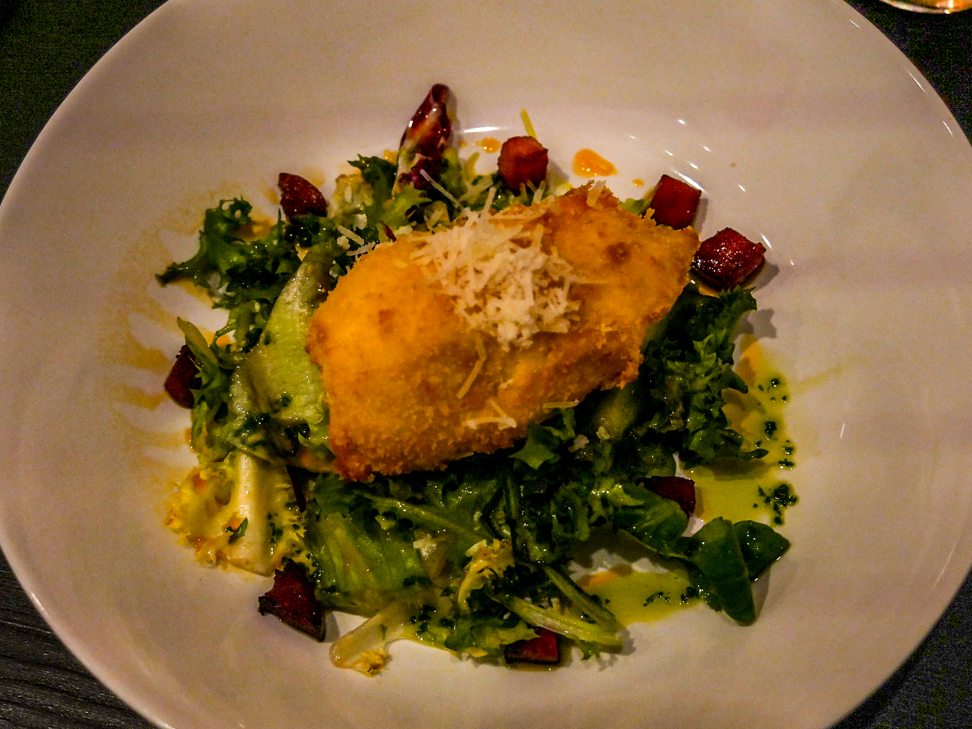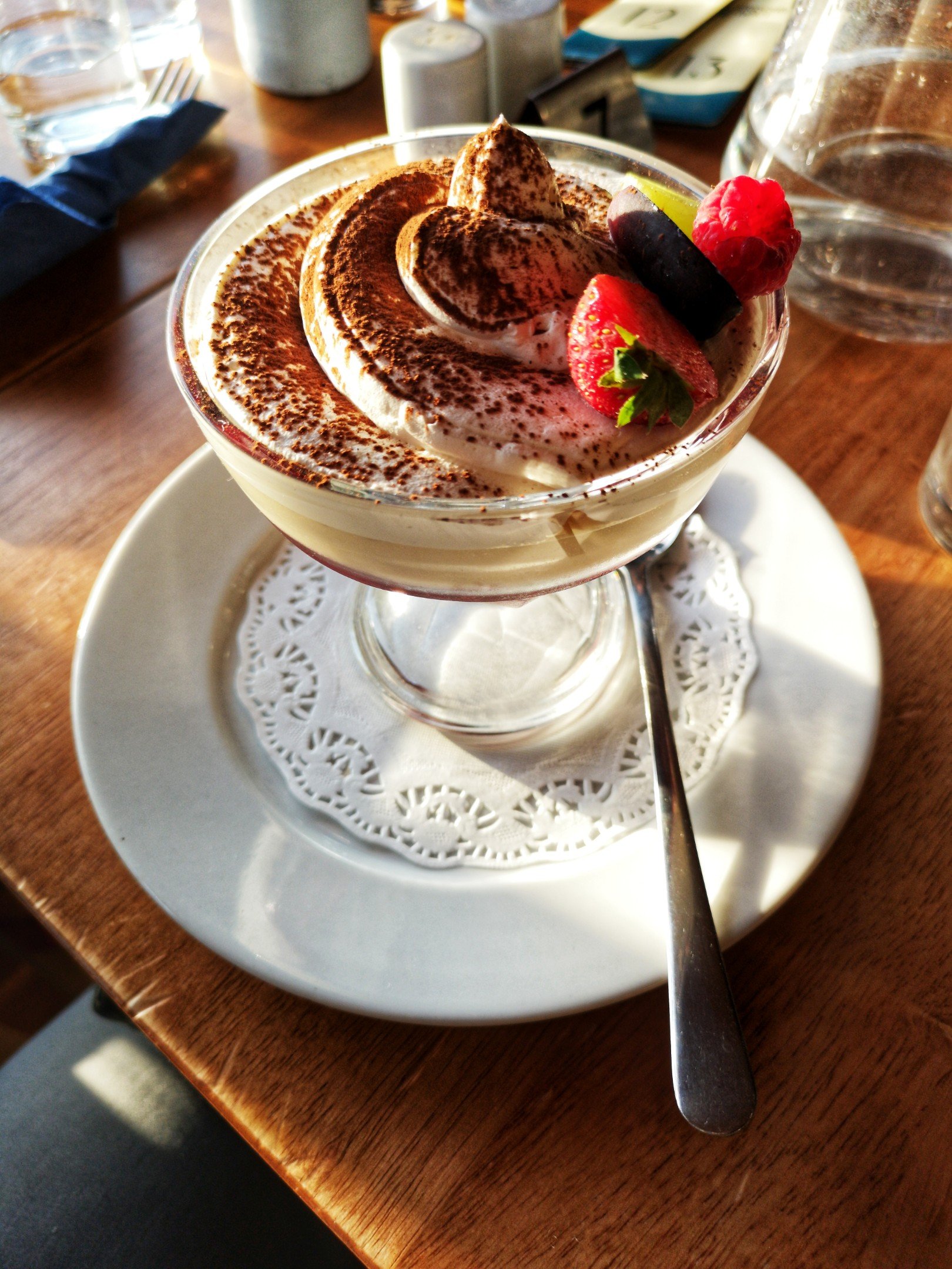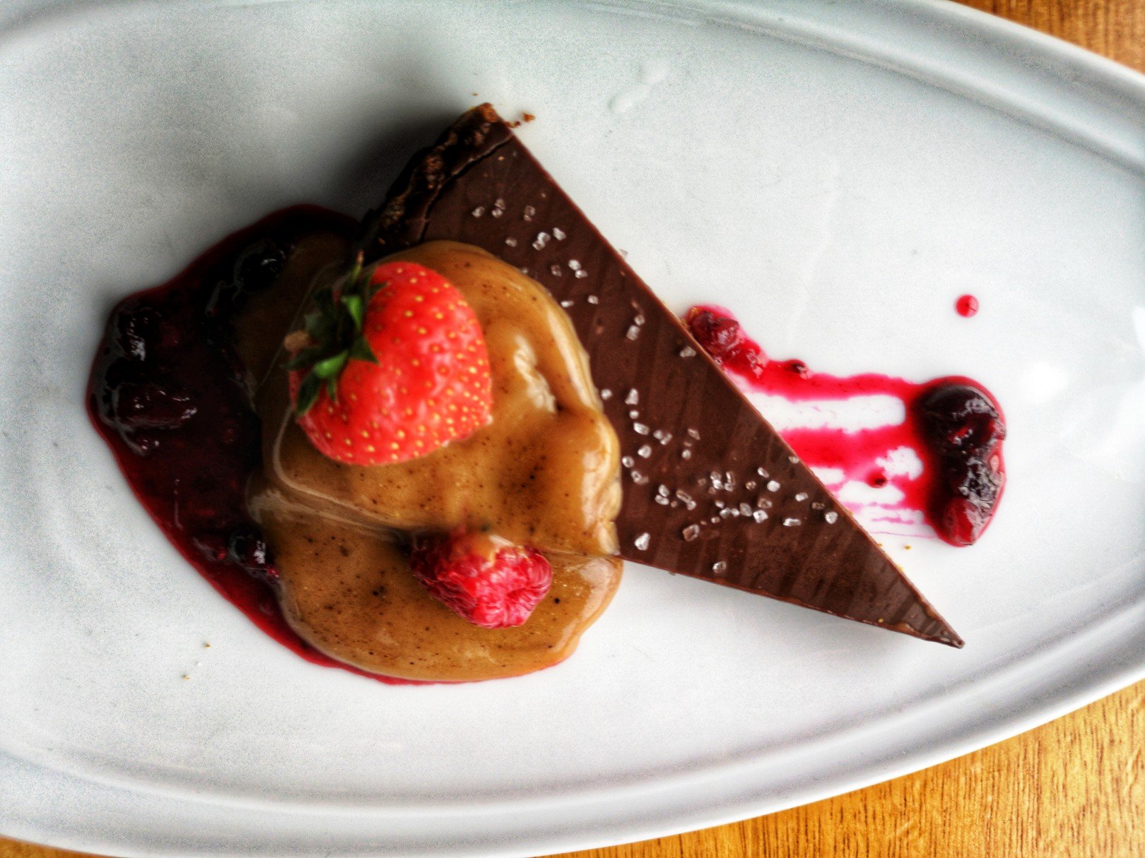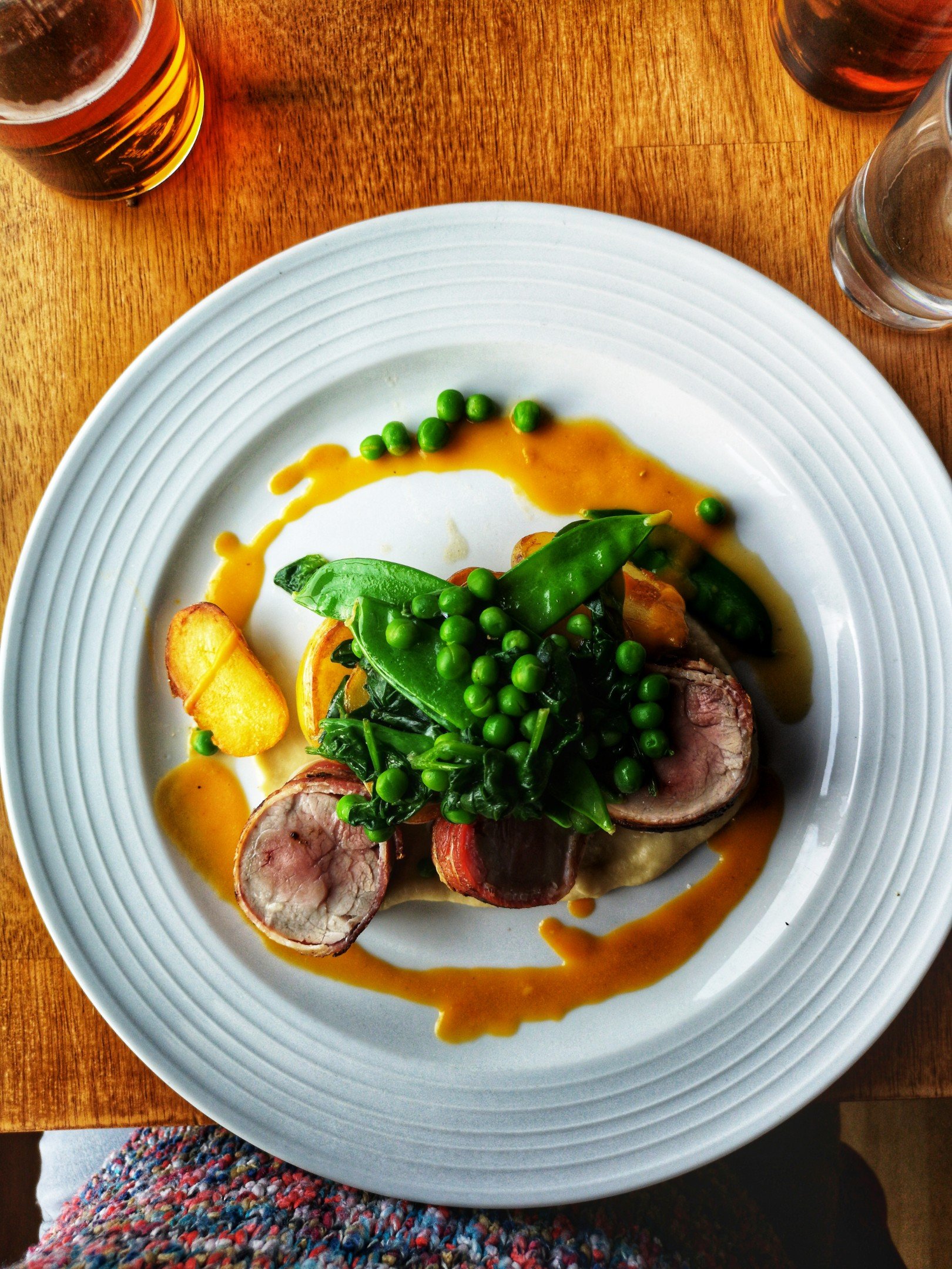 Hors du vieux centre-ville, le Lerwick Hotel est assurément plus moderne que les autres établissements, et ça se sent aussi dans son restaurant : the Bay Brasserie. Tons sombres, lignes modernes, une superbe vue sur la baie… On se dit que si le ramage se rapporte au plumage, on va bien manger. Et en effet, on passe un cran au dessus, que ce soit au niveau de la cuisine qu’au niveau des présentations. Je vais me régaler d’un bon fish and chips accompagné de grosses frites fraîches et bien sûr, de petits pois mais au lieu de la menthe ou du bacon, c’est de la pancetta qui vient donner un supplément de goût. En dessert, j’ai opté pour une panna cotta au caramel avec sa glace au pain d’épice et une sauce au chocolat-caramel salé. Une adresse recommandable, donc.