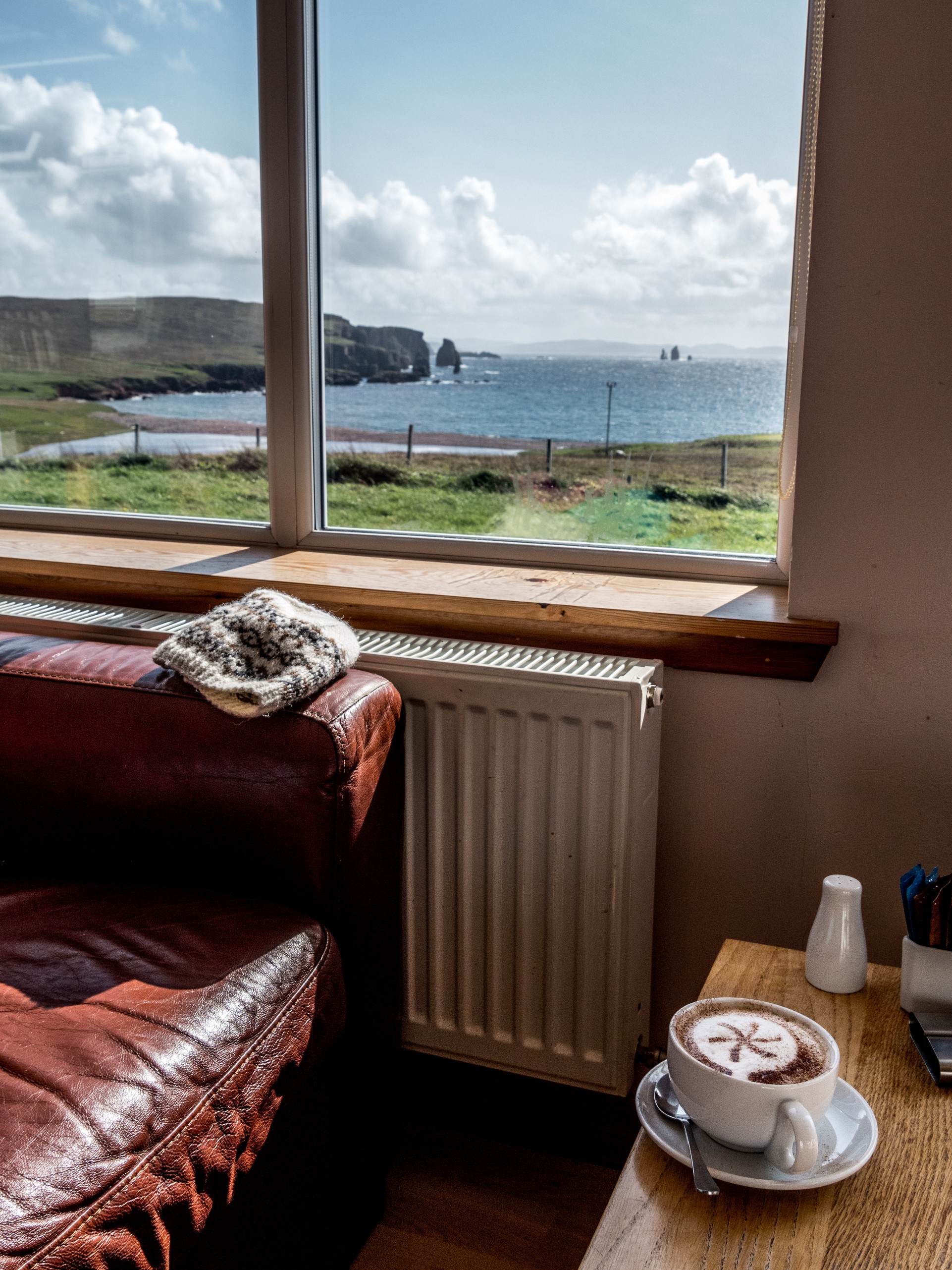 Voilà une petite adresse bien pratique puisqu’elle est à l’entrée des falaises d’Eshaness. Parfait pour se restaurer avant ou après une visite à ce merveilleux site (attention, le café ferme à 17h). On y sert… évidemment du café, du thé, des pâtisseries mais aussi quelques plats. Une des seules adresses où se restaurer dans ce coin de Northmavine. L’endroit est plaisant, ensoleillé et on s’y sent tout de suite bien.