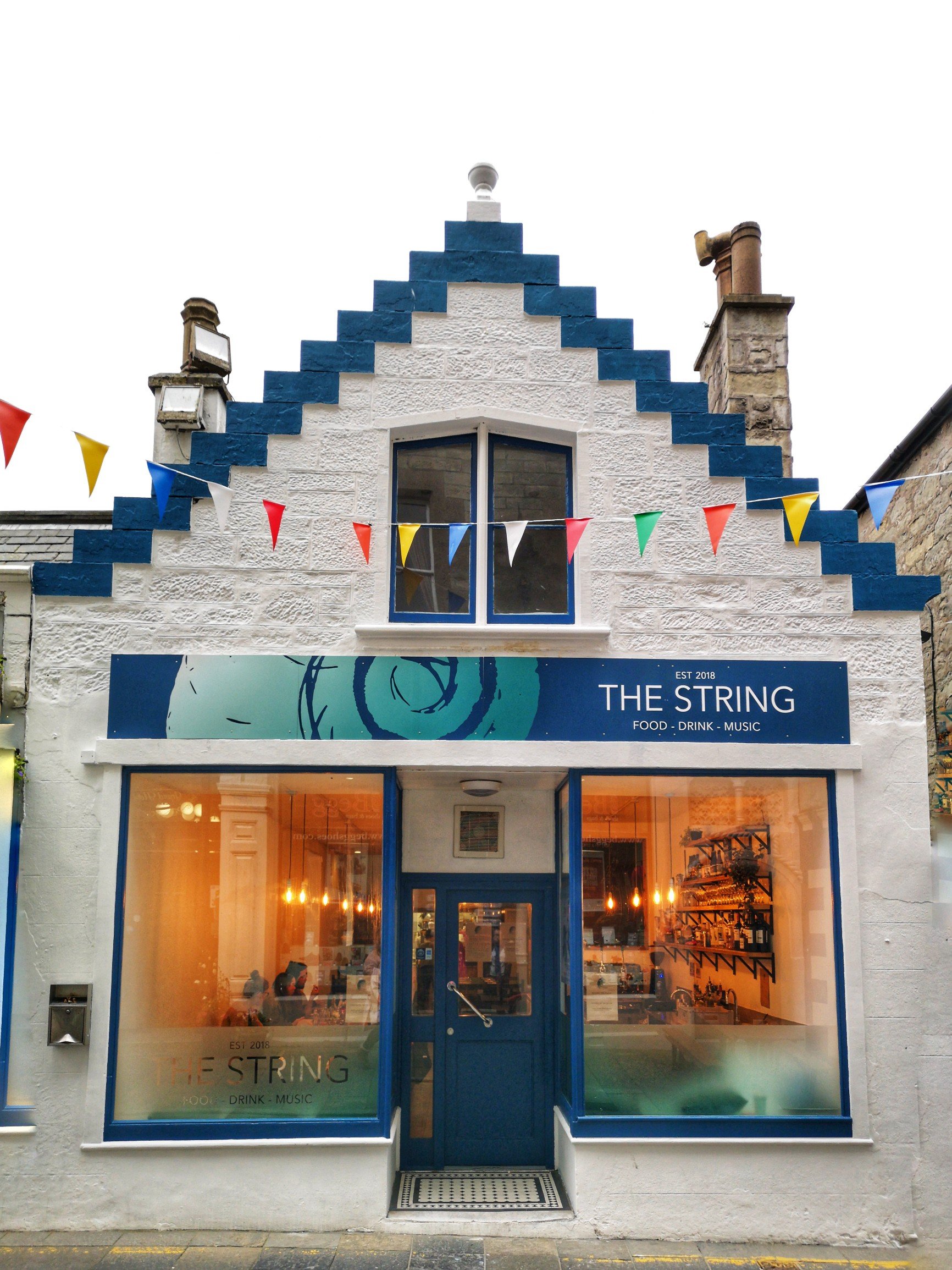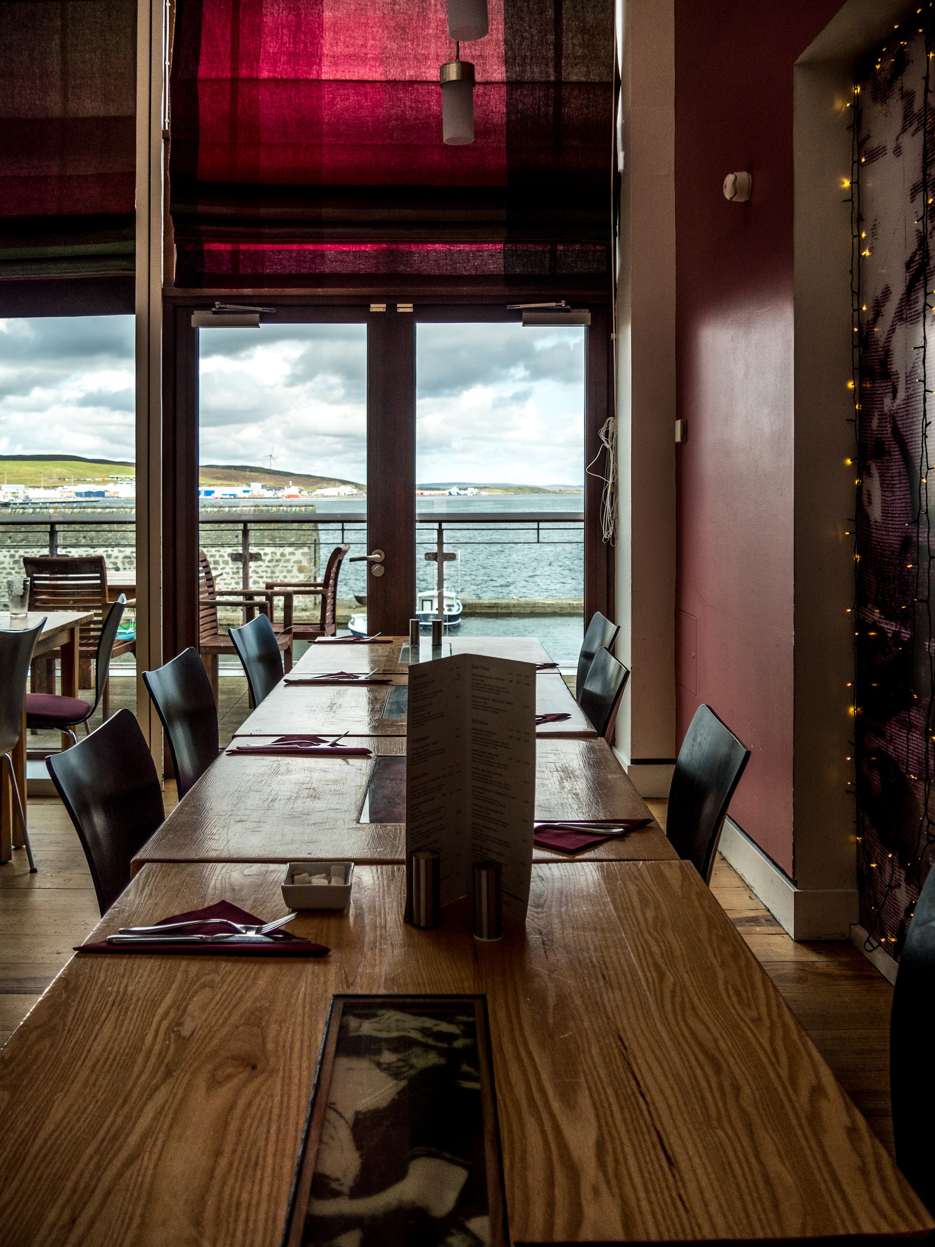 Lorsque nous avons vu The String, qui venait d’ouvrir deux semaines avant notre arrivée, si je me souviens bien, nous avons eu bon espoir ! Voilà un café contemporain, avec une carte restreinte, promettant une cuisine de produits frais. A côté de ça, l’enthousiasme qui entourait cet endroit nous avait d’ailleurs obligées à réserver pour la fin de notre séjour. On était donc très curieuses de tester cette adresse plus gastro que The Dowry. Nous sommes restées un peu sur notre faim. Il y a clairement de l’ambition dans l’assiette, en mariant des ingrédients typiquement shetlandais comme les fruits de mer, le poisson ou l’agneau, avec des accents du Proche-Orient (comme des falafels) ou indiens (comme le dahl) mais il manquait cruellement de quelque chose et le service laissait un peu à désirer. Peut-être un problème de rodage du à la jeunesse de l’établissement ? A retenter pour confirmer. Concerts organisés en soirée les fins de semaine.