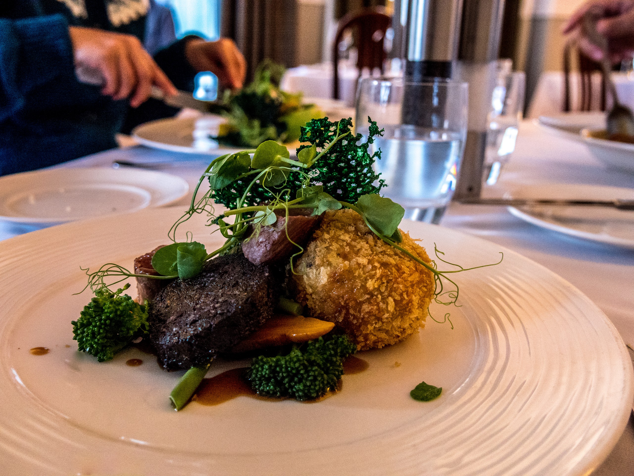 Dans l’ancienne capitale des Shetland, Scalloway, on trouve une des meilleures adresses gourmandes des îles : le restaurant du Scalloway Hotel. Certes, l’intérieur est plutôt classique et sur la carte, le poisson et les fruits de mer sont évidement en vedette, c’est tout aussi sage mais une fois qu’on voit les plats arriver, les yeux pétillent. Le dressage est moderne et soigné. J’ai adoré mon duo d’agneau au black pudding avec ses croquettes à la menthe qui ressemblaient à des bonbons. Le bavarois à la pomme commandé en dessert est arrivé sous forme de trompe-l’œil, comme une pomme mure tombée dans la terre. Un régal pour les papilles et les yeux.