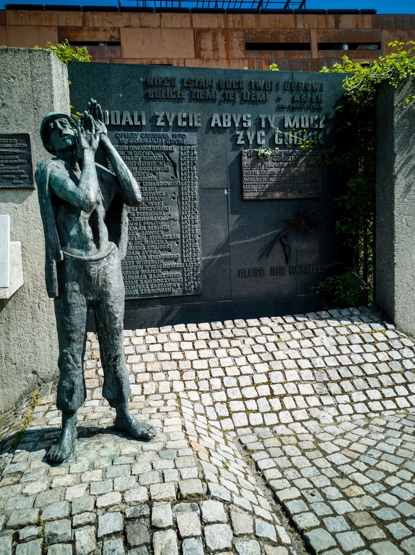 Le musée qui est au programme par contre, c’est le Centre européen de la Solidarité (que tout le monde s’est empressé de renommer « Musée Solidarnosc ». C’est sur le site même du chantier naval de Gdansk, là où les premiers soubresauts d’une envie de liberté ont signé le début de la fin du régime communiste polonais. On peut le considérer comme la suite du Musée de la Deuxième Guerre Mondiale, puisque c’est après la fin de celle-ci que les explications du musée commencent. On explique le régime et son fonctionnement, on vous remet en condition réelle avec la simulation d’un petit appartement de l’époque soviétique, avec son unique chaîne de télé et la radio diffusant de la propagande. C’est dans les années 70 que les premières protestations importantes se dressent contre l’augmentation des prix des denrées de premières nécessités. Gdynia, Gdansk et d’autres villes de la côte de la baltique se soulèvent, des manifestations qui seront durement réprimées et se solderont par 42 morts et des centaines de blessés.