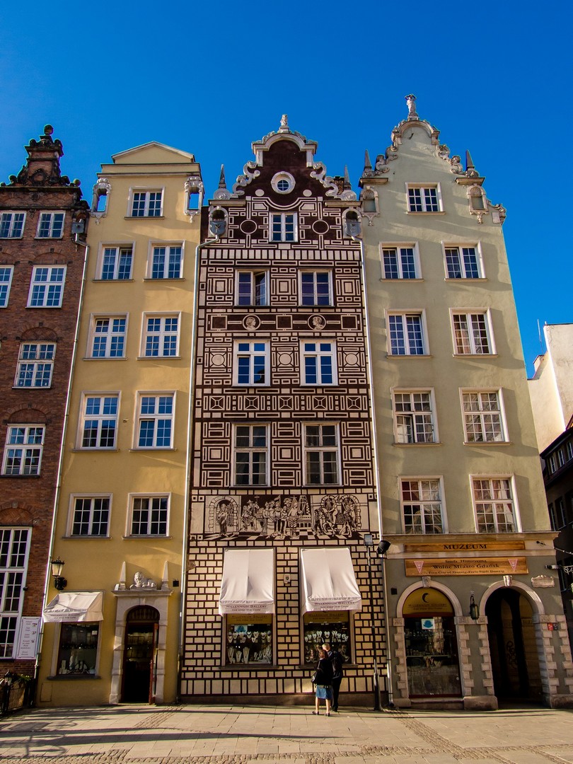 Le « Long Marché » (Długi Targ), qui constitue la première partie de la Voie Royale, était et est toujours, un lieu de prestige. Construites et habitées par les personnalités les plus aisées de la ville, ces belles demeures de style flamand-hollandais, s’enchaînent des deux côtés. On pourrait se croire à Amsterdam ! On retrouve les mêmes maisons hautes et étroites, avec leurs pignons. En plus d’être l’adresse VIP de Gdansk, le Long Marché était également le lieu choisi pour les exécutions de criminels, des hérétiques ou des sorcières… charmant ! En tout cas, les autorités civiles de la ville pouvaient garder facilement un œil sur tout ça, puisque la fin du Long Marché est marquée par l’Hôtel de ville, la fontaine de Neptune (un des symboles de la ville) et l’Artus Court, un beau bâtiment qui servait à l’époque de l’Age d’Or, d’auberge et de lieu de rencontre pour les plus riches marchands et étrangers de passage.