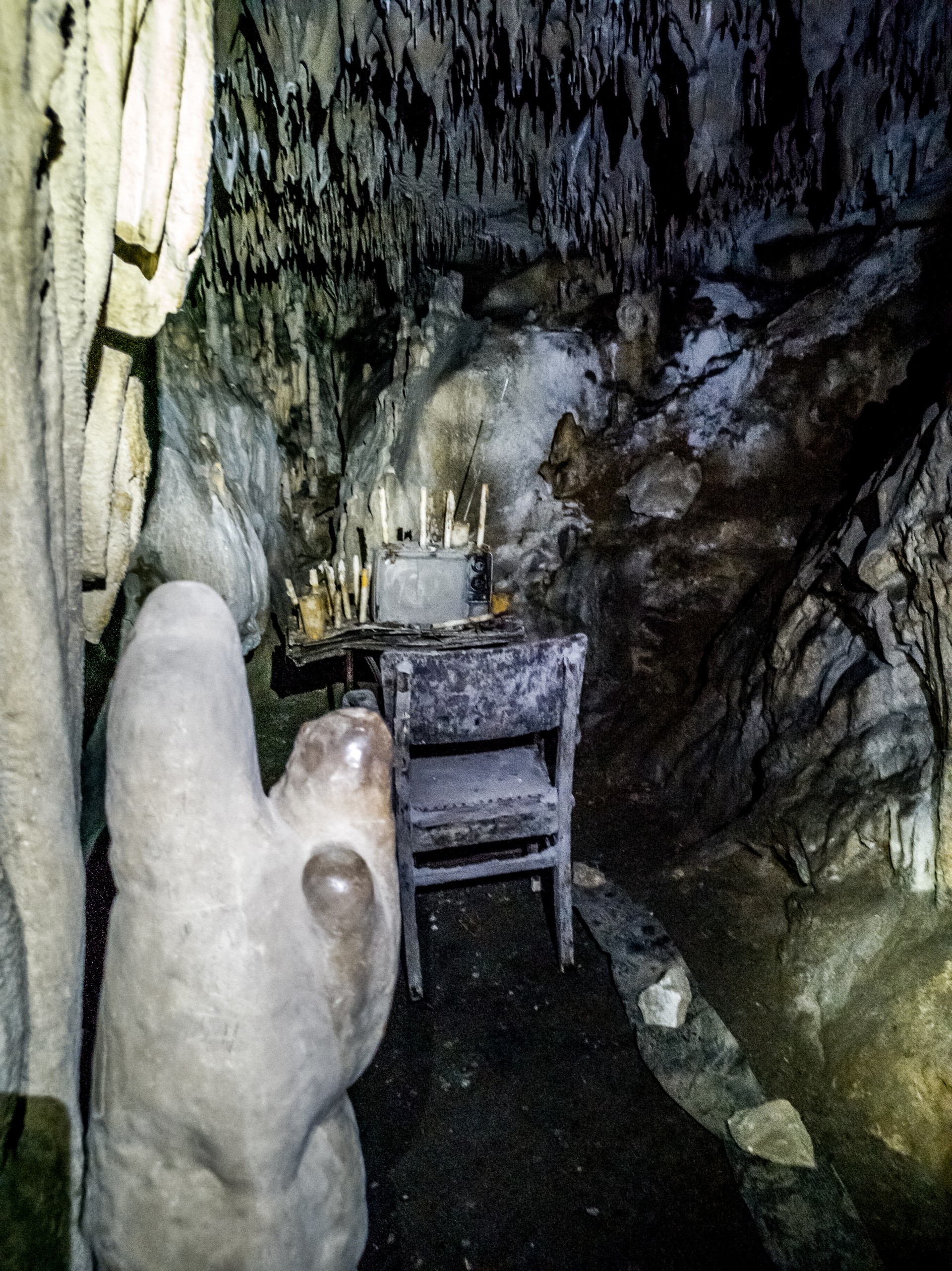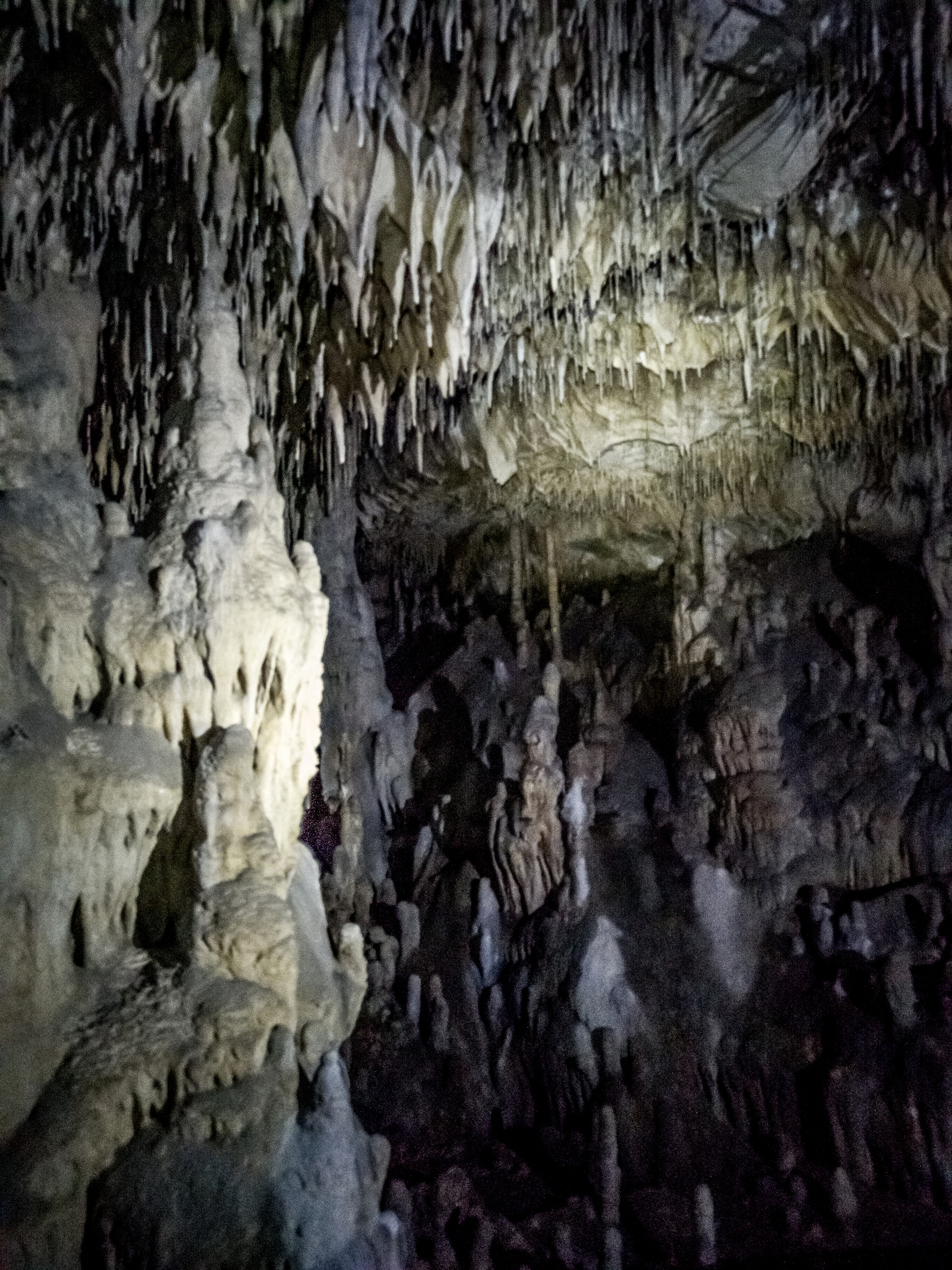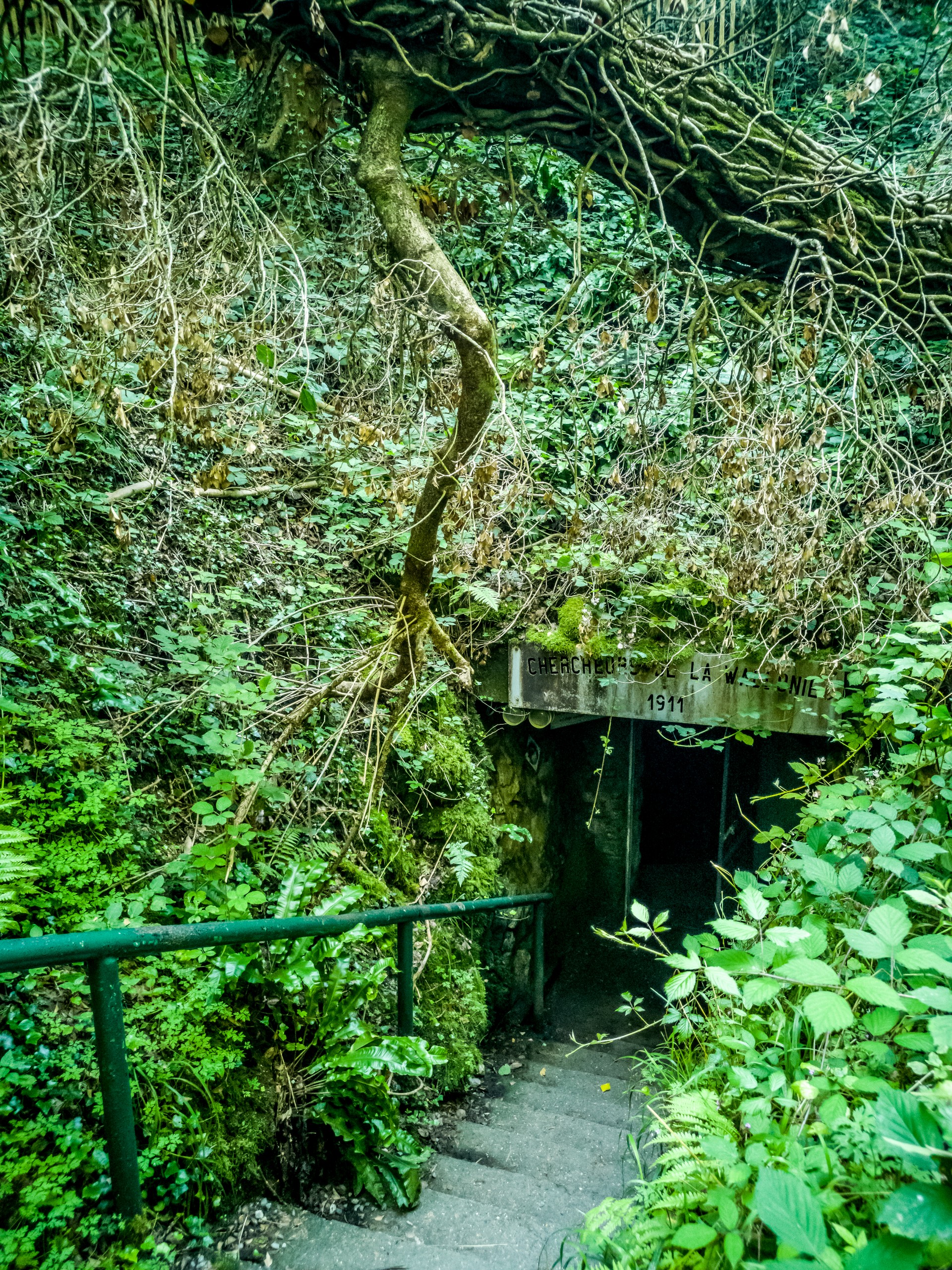 Mais avec tout ça, nous n’avons pas encore vu le lieu où tout a commencé : la fameuse Grotte de Ramioul. Et pour la visiter, c’est un peu particulier car on se met plus en moins dans la peau de ceux qui l’on découverte : elle est plongée dans le noir et elle se visite à la lumière de la lampe-torche. J’enfile donc un casque, allume ma loupiote et c’est parti ! Gros coup de bol, Marie et moi sommes les seules à se balader dedans. On a donc tout le temps d’en profiter et d’admirer les différentes salles. Elles ne sont pas spécialement spectaculaires (les salles sont petites) mais l’idée de faire la visite de cette manière est vraiment bien trouvée et permet de se rendre compte de ce qu’est la spéléologie et l’exploration de l’inconnu.