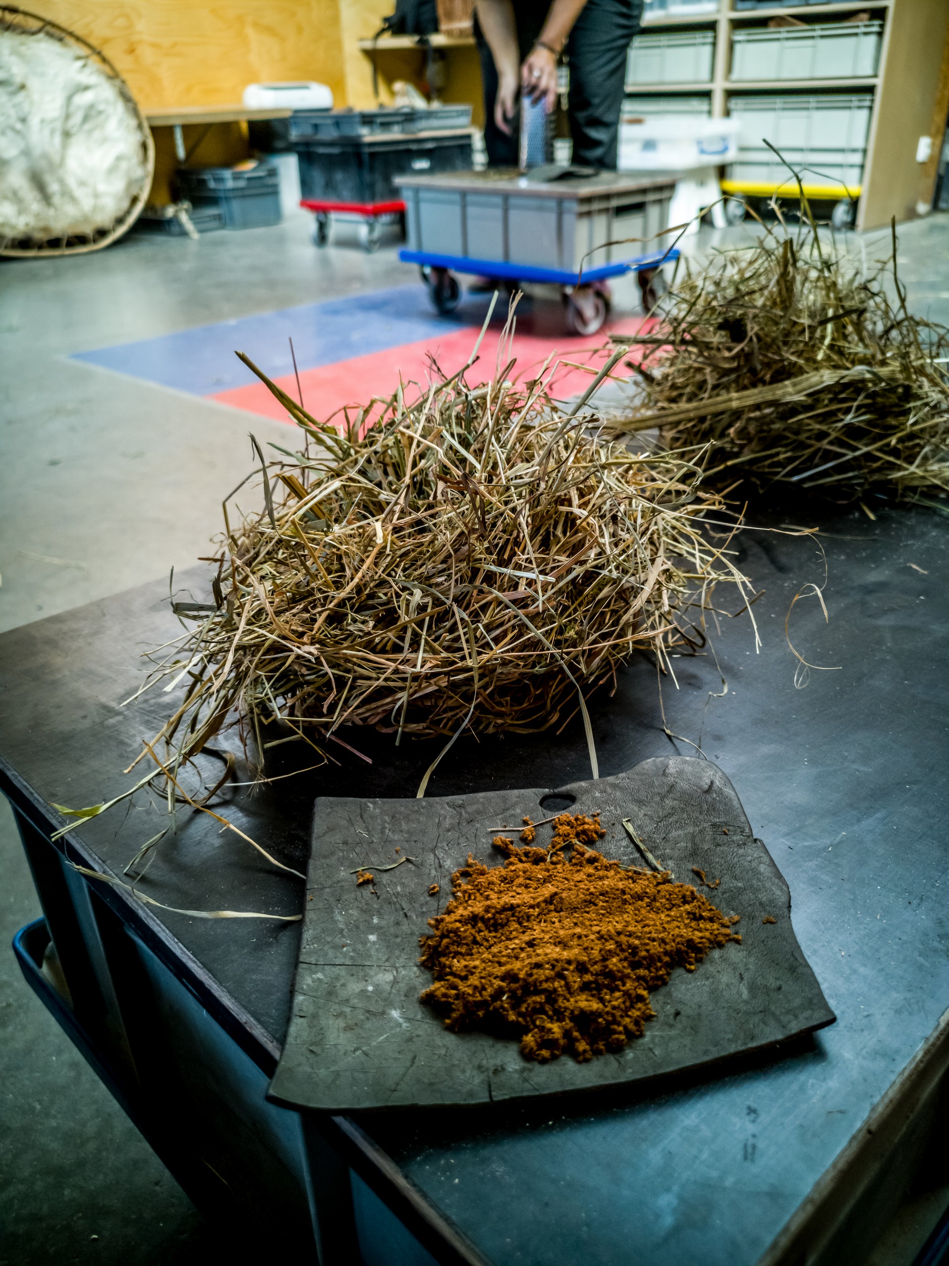 Confectionnez un nid avec le foin et placer le champignon sec réduit en poudre.