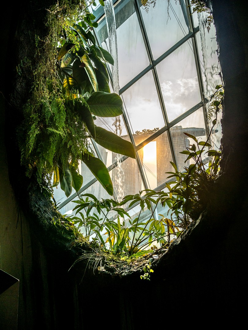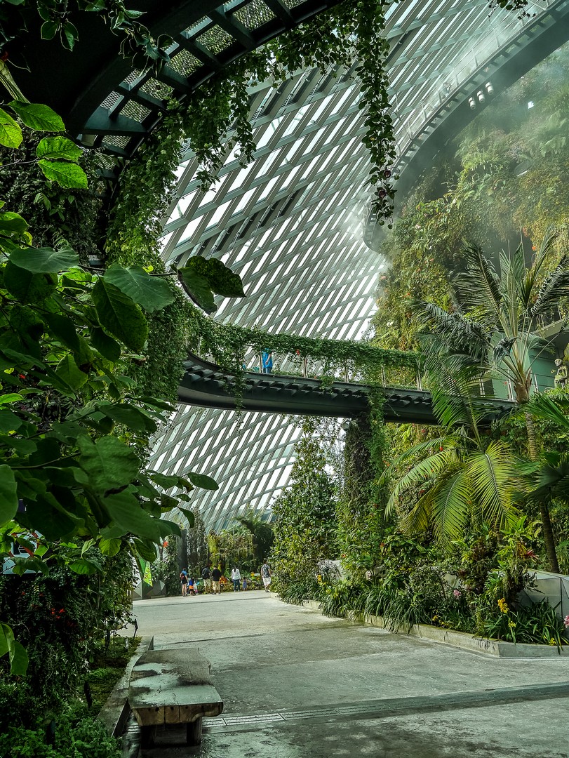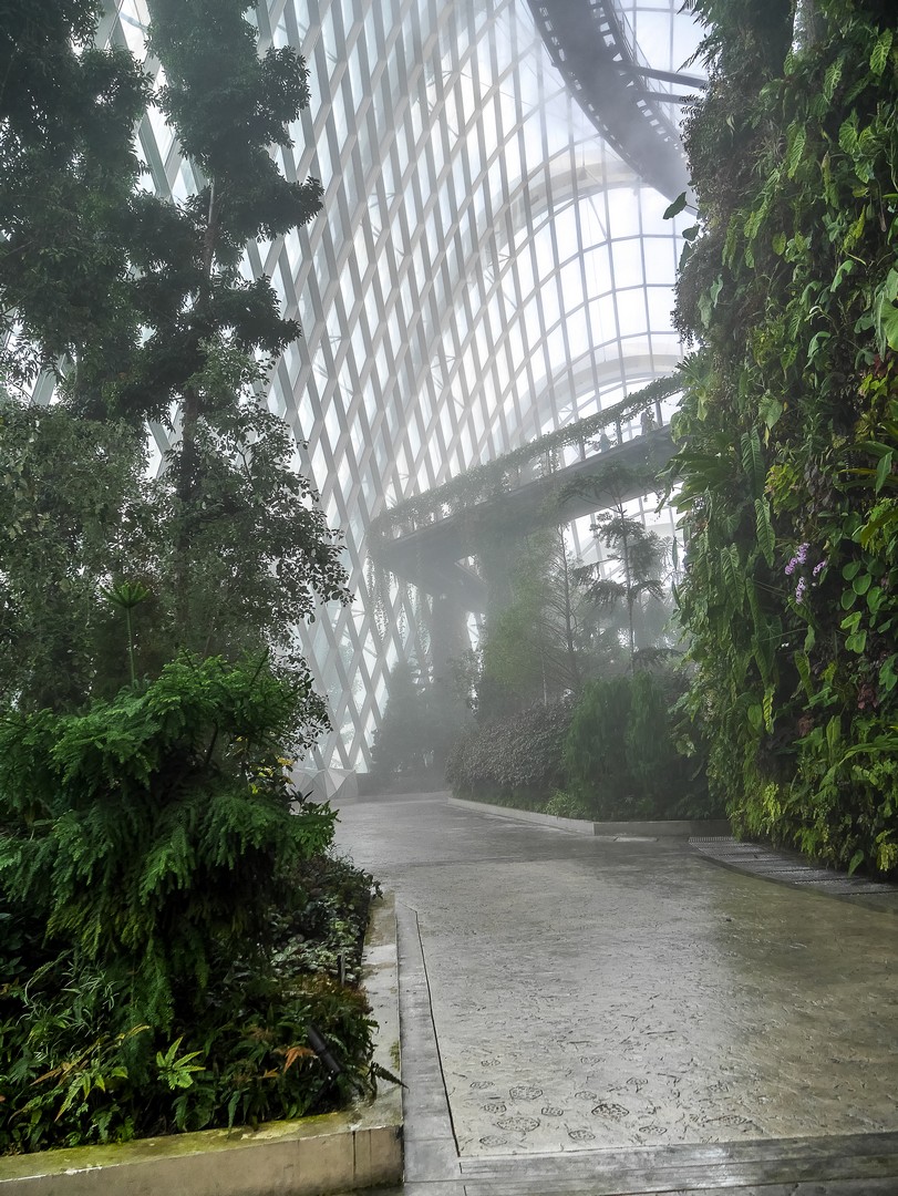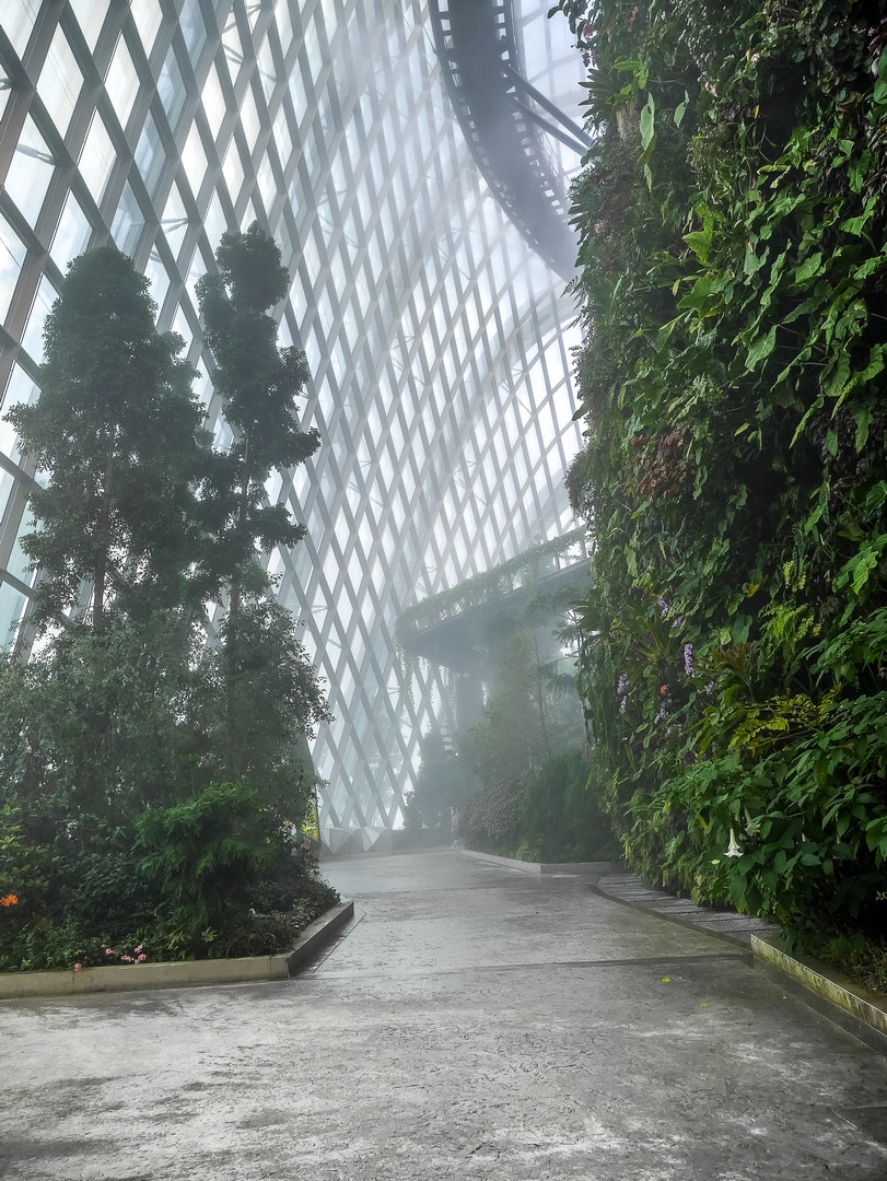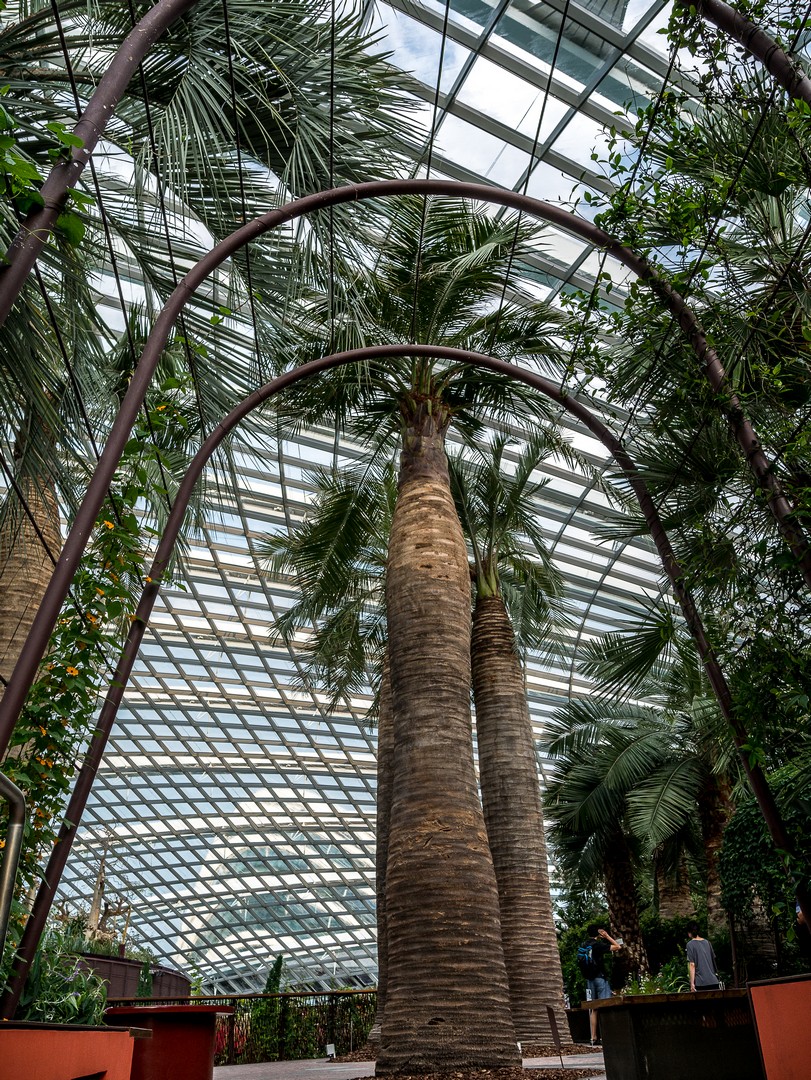 La deuxième étape se passe à l’intérieur : le Flower Dome, le monde du « printemps éternel » où quantité de plantes de fleurs sont agencées selon leur continent, toute proviennent de zones climatiques ayant la particularité d’être tempérées et sèches. Par exemple, on y trouve un jardin méditerranéen avec une oliveraie, un jardin californien, un jardin sud-américain centrée sur la végétation du Chili, etc. Et vous dire à quel point les plantes sont chouchoutées est un euphémisme : il y a un véritable « sas d’entrée » avant de pénétrer dans le dôme, les conditions climatiques de Singapour, chaudes et humides, étant le parfait opposé de ce dont ces plantes ont besoin. L’intérieur est si grand qu’on n’en voit pas la fin et il y règne le genre de température qui n’est trop chaude, ni trop froide. Celle d’une belle journée de fin de printemps. De celle qui vous donne l’impression de flotter. Une sensation que je n’avais plus eue depuis longtemps.