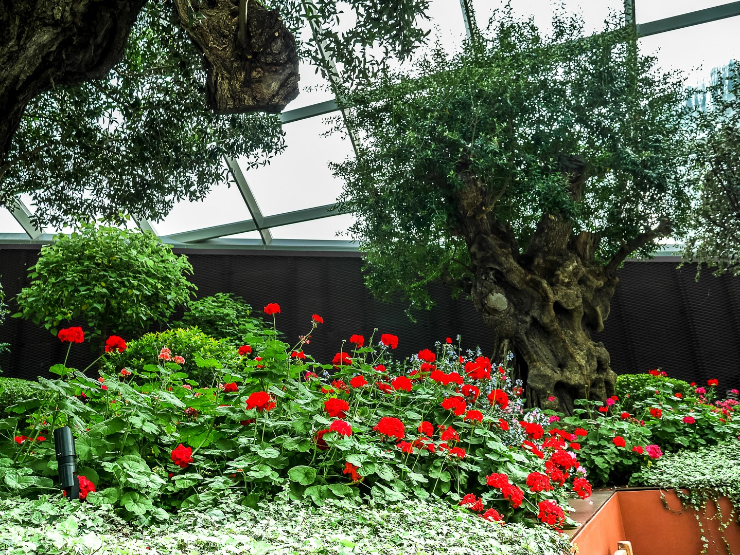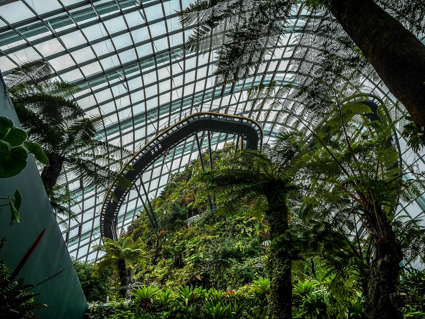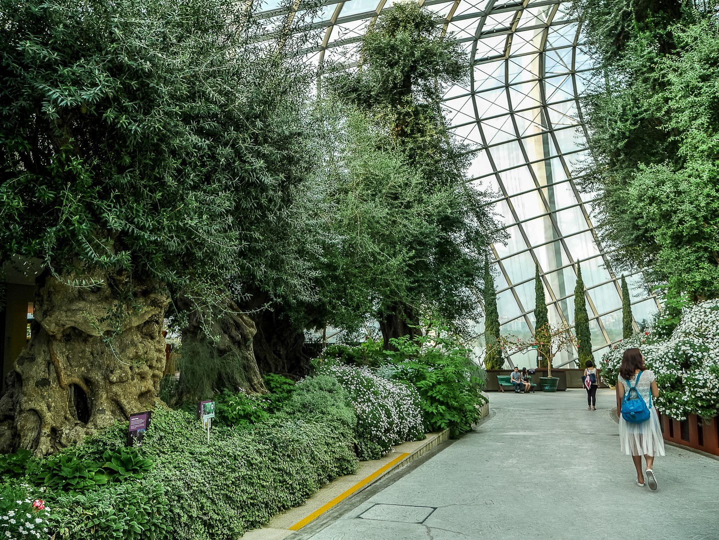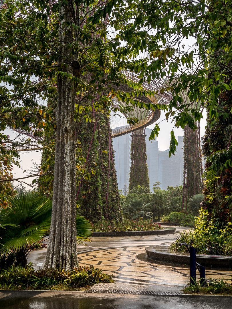 La deuxième étape se passe à l’intérieur : le Flower Dome, le monde du « printemps éternel » où quantité de plantes de fleurs sont agencées selon leur continent, toute proviennent de zones climatiques ayant la particularité d’être tempérées et sèches. Par exemple, on y trouve un jardin méditerranéen avec une oliveraie, un jardin californien, un jardin sud-américain centrée sur la végétation du Chili, etc. Et vous dire à quel point les plantes sont chouchoutées est un euphémisme : il y a un véritable « sas d’entrée » avant de pénétrer dans le dôme, les conditions climatiques de Singapour, chaudes et humides, étant le parfait opposé de ce dont ces plantes ont besoin. L’intérieur est si grand qu’on n’en voit pas la fin et il y règne le genre de température qui n’est trop chaude, ni trop froide. Celle d’une belle journée de fin de printemps. De celle qui vous donne l’impression de flotter. Une sensation que je n’avais plus eue depuis longtemps.