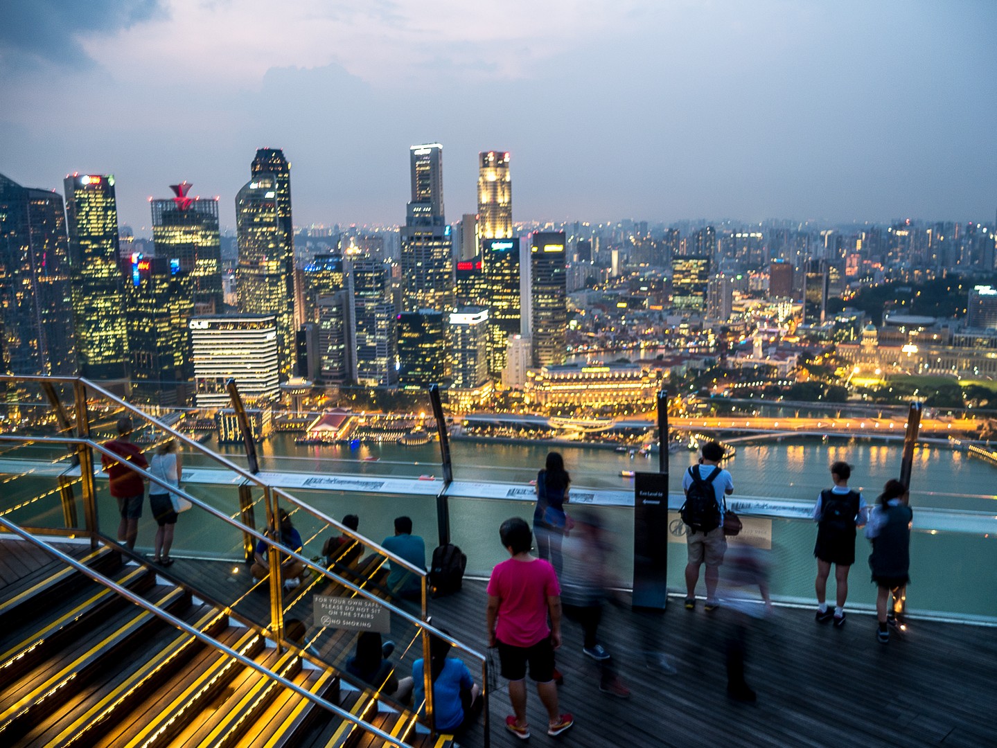 Un petit trajet en métro, c’est tout ce qu’il faut pour rejoindre les Gardens by the Bay depuis Little India. C’est une étrange création au pied de laquelle je me trouve : trois tours d’au moins une cinquantaine d’étages, fines mais larges comme des piliers, supportent une structure qui ressemble à un paquebot de croisière. Ce drôle de paquebot, c’est l’hôtel le plus fameux de Singapour : le Marina Bay Sands. J’ai demandé à pouvoir y faire une petite visite (y séjourner eût été une folie) et l’on m’a gentiment accordé cette faveur. Une jolie jeune femme responsable du marketing m’attend, son reflet miroitant sur un sol parfaitement ciré. C’est elle qui va me faire faire un rapide tour du propriétaire.