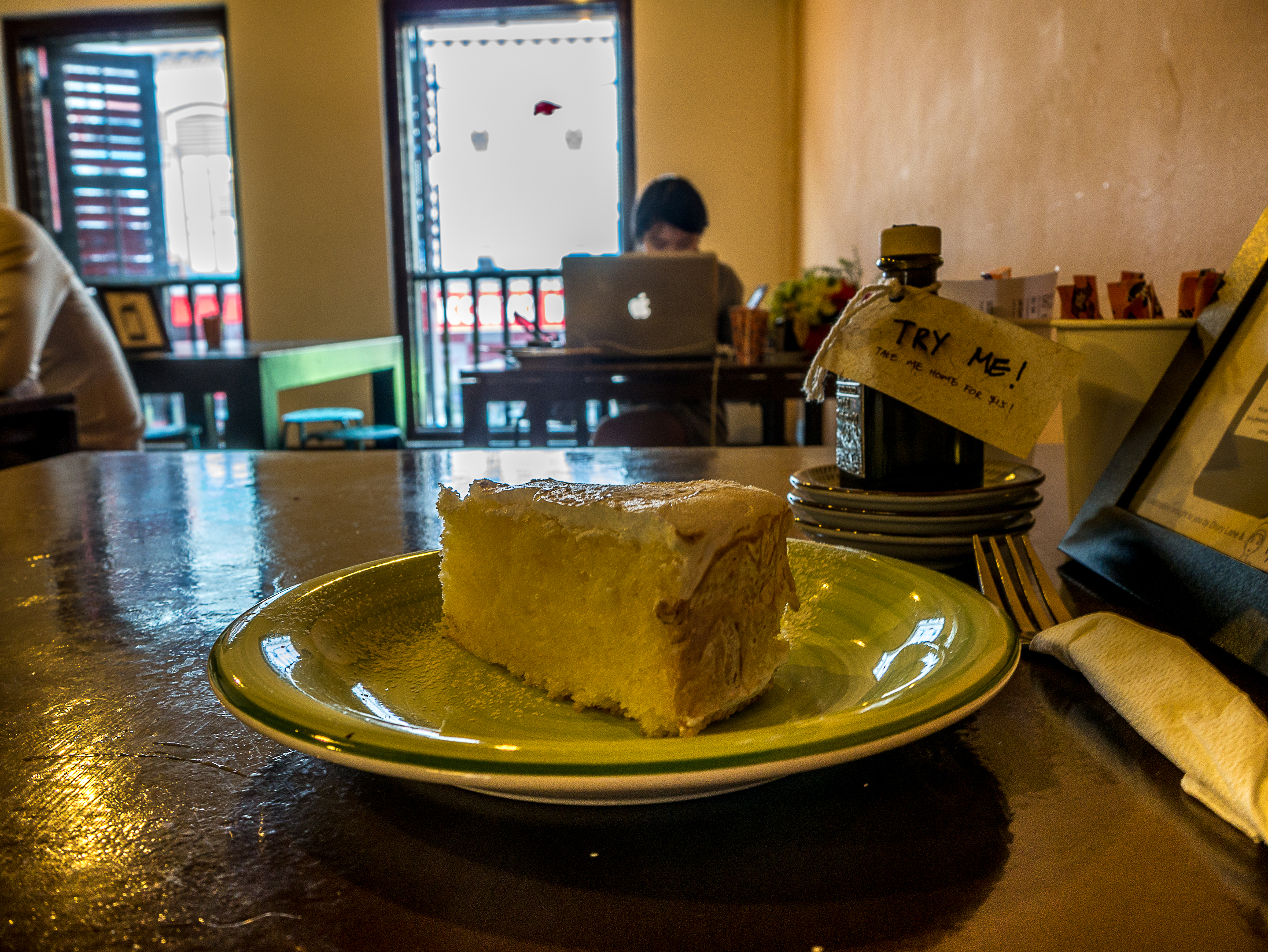 Lorsque Mélina, mon hôtesse à Pape’ete a su que j’allais à Singapour, elle m’a filé un cadeau et une adresse e-mail : celle de sa cousine qui travaille pour une grande banque ? Est-ce que je ne pourrais pas lui délivrer ce cadeau en main propre ? Ce serait plus sympa que de l’envoyer par courrier ! Pendant un mois, ce cadeau, bien amorti entre mes sacs à vêtements, s’est donc promené à travers le Pacifique, traversé presque la moitié de l’Océan Indien, avant d’être délivré sur la table de ce petit restaurant à ramens de Singapour où la cousine de Mélina m’a gentiment invitée. Je bénis cette coïncidence qui a fait que nous nous rencontrions en ce dernier jour, je ne plus seule avec mes pensées. On parle de sa cousine, de la Polynésie, de son boulot, de mon parcours pendant que j’enfile les nouilles fumantes et parfumées de mon bol. Comme d’habitude, au plus je parle, au moins je mange. La parole me remplit plus la panse que la nourriture en fait… Repue, je laisse la moitié de mon bol lorsque mon interlocutrice doit retourner au bureau. C’aurait pu être là ma toute dernière rencontre de voyage… mais pas tout à fait !