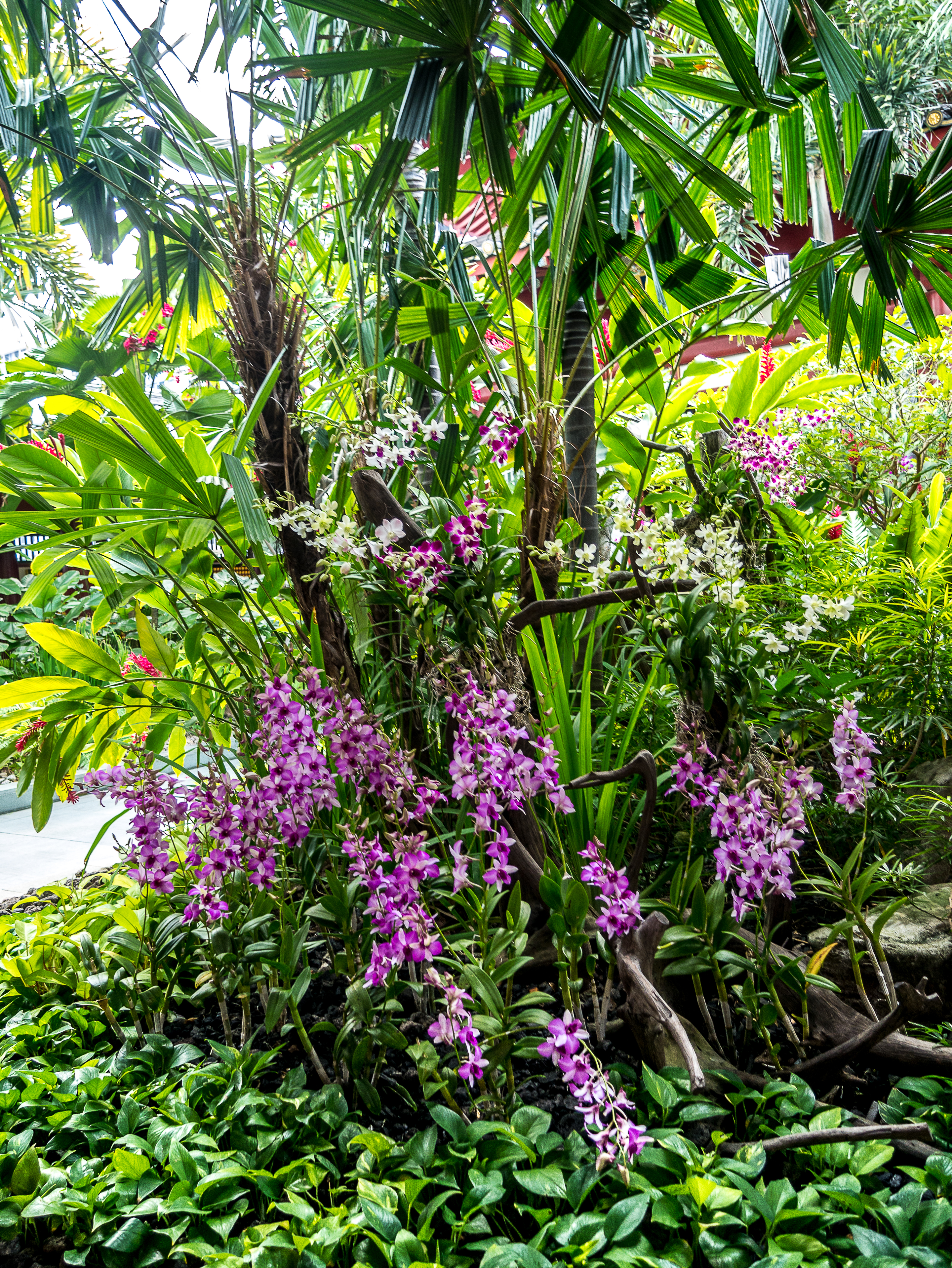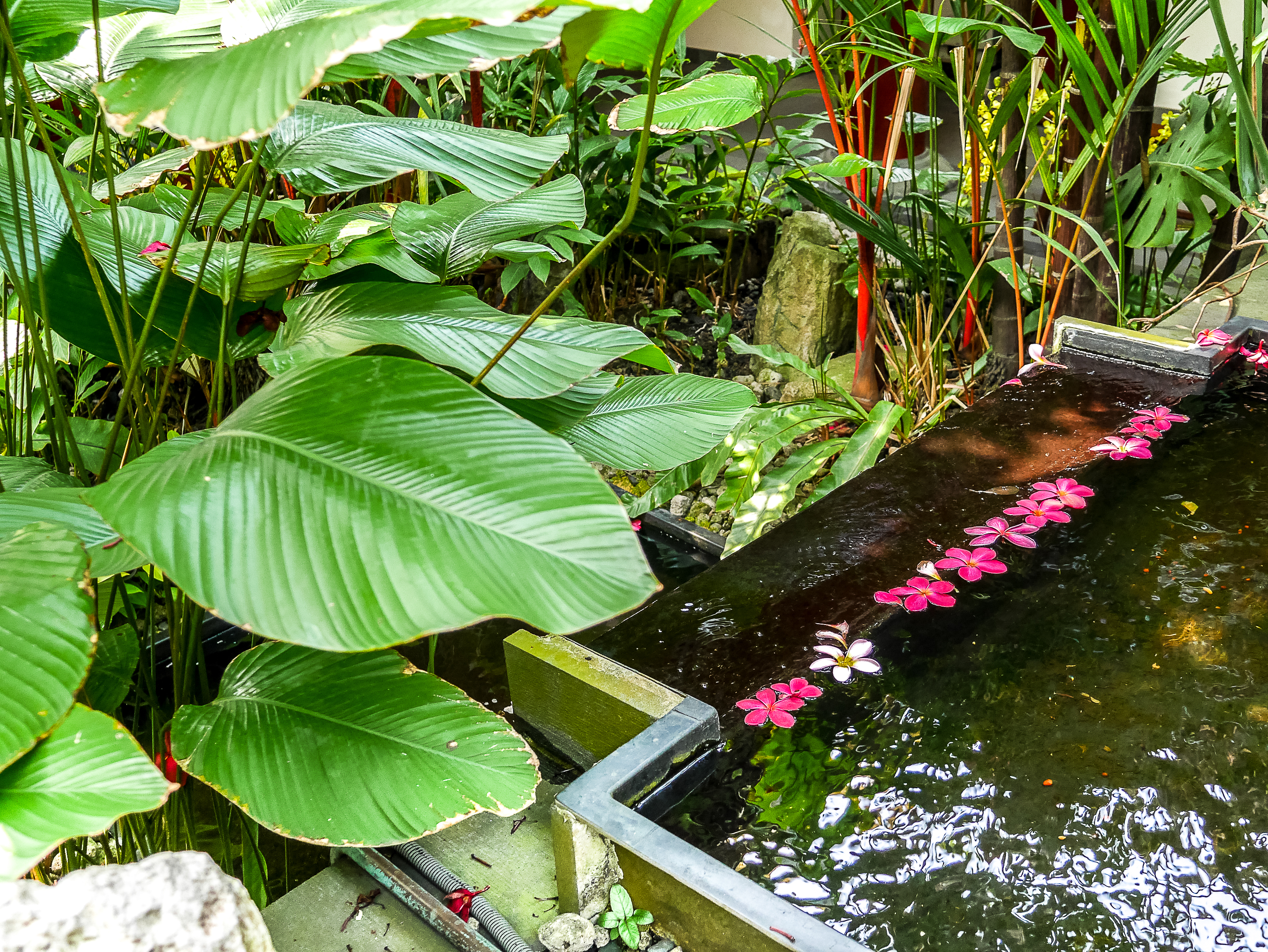 Puis, comme un retour de balancier, ce sont les opportunités saisies qui viennent à moi, des visages qui apparaissent. Les rencontres que j’ai faîtes. Je prends le temps de m’attarder sur chacune d’entre elles et leurs visages m’apparaissent comme s’ils étaient en face de moi. Dans ma poitrine, une drôle de chaleur est en train de se diffuser : c’est mon cœur, à la fois content et léger. La tristesse et l’anxiété qui m’avaient suivies depuis le matin se sont envolées. Quand je rouvre les yeux, je suis sereine. J’accepte enfin le départ. Histoire de prolonger un peu ce moment de paix, je monte sur le toit pour visiter le jardin d’orchidées et le moulin à prière tout en émail. Tout dans le jardin à sa place précise et sa signification : les petits pavillons aux quatre coins cardinaux, le pavillon des dix-mille Bouddhas où se trouve le moulin à prière est au centre. Même les parterres d’orchidées ne sont pas là au hasard et même les fleurs de frangipanier dispersées dans le bassin d’eau ont l’air d’avoir été posées à un endroit précis. C’est un festival de couleurs et de délicatesse.