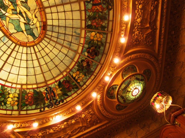 Finalement, le point de chute de cette ballade sera un des endroits les plus chics de Stockholm: le Bar de l’Opéra. Un lieu feutré, plein de boiseries et de vitraux, où l’on entre avec un peu d’hésitation et en baissant la voix. Nous sommes prises en charge par une demoiselle en uniforme qui nous place sur une banquette. Pas d’hésitation par contre sur la boisson: ce sera un aquavit pour chacune, histoire de se réchauffer. Ceux-ci seront accompagnés d’un verre d’eau et de petits biscuits salés faits des mêmes épices qui aromatisent l’alcool (carvi ou anis et cumin). On peut également y manger! A côté de nous, un groupe de Suédois BCBG déguste un gravlax pendant que nous rions en évoquant notre aventure d’hier… Nous sommes si bien installées que se lever pour payer l’addition et sortir tiendra presque du martyre. La nuit est quasi tombée sur la ville… Les réverbères sont allumées, les passants se pressent pour rejoindre le métro de Gamla Stan, à un bon 10 minutes de marches. Nous nous attardons à voir un crépuscule gris-bleu sur l’horizon de Stockholm. Une ville facile à aimer… malgré des Suédois un peu grognons, par rapport à la première fois où je suis venue. La fin de l’hiver est pénible pour tous, même pour les plus aguerris!