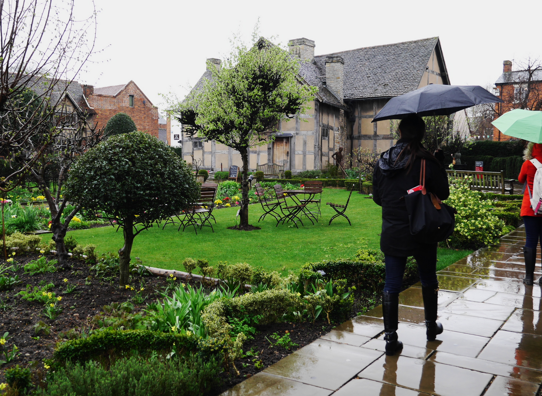 Depuis mon arrivée en Angleterre, j’ai l’impression de vivre dans un monde parallèle. Peut-être est-ce à cause du thème de ce grand tour: « Film et littérature », mais à chaque étape, sa surprise et sa petite bulle de magie! Après l’ambiance gothico-fin-de-siècle d’Oxford, la machine à remonter le temps vous emmène encore plus loin: à la Renaissance. Nous sommes à Stratford-Upon-Avon, la ville natale de William Shakespeare. Avec ses maisons à colombages qui ne semblent pas avoir changé depuis l’ère élisabéthaine, ses fleurs et ses devantures coquettes et son côté propret, nous avons l’impression de déambuler dans un livre d’image. Une ville préservée et touristique, vu qu’elle est le berceau d’un des écrivains les plus célèbres de l’histoire. Et cette année, Stratford va voir encore plus de monde que d’habitude puisque l’on fête le 450e anniversaire de la naissance de son fils le plus illustre.