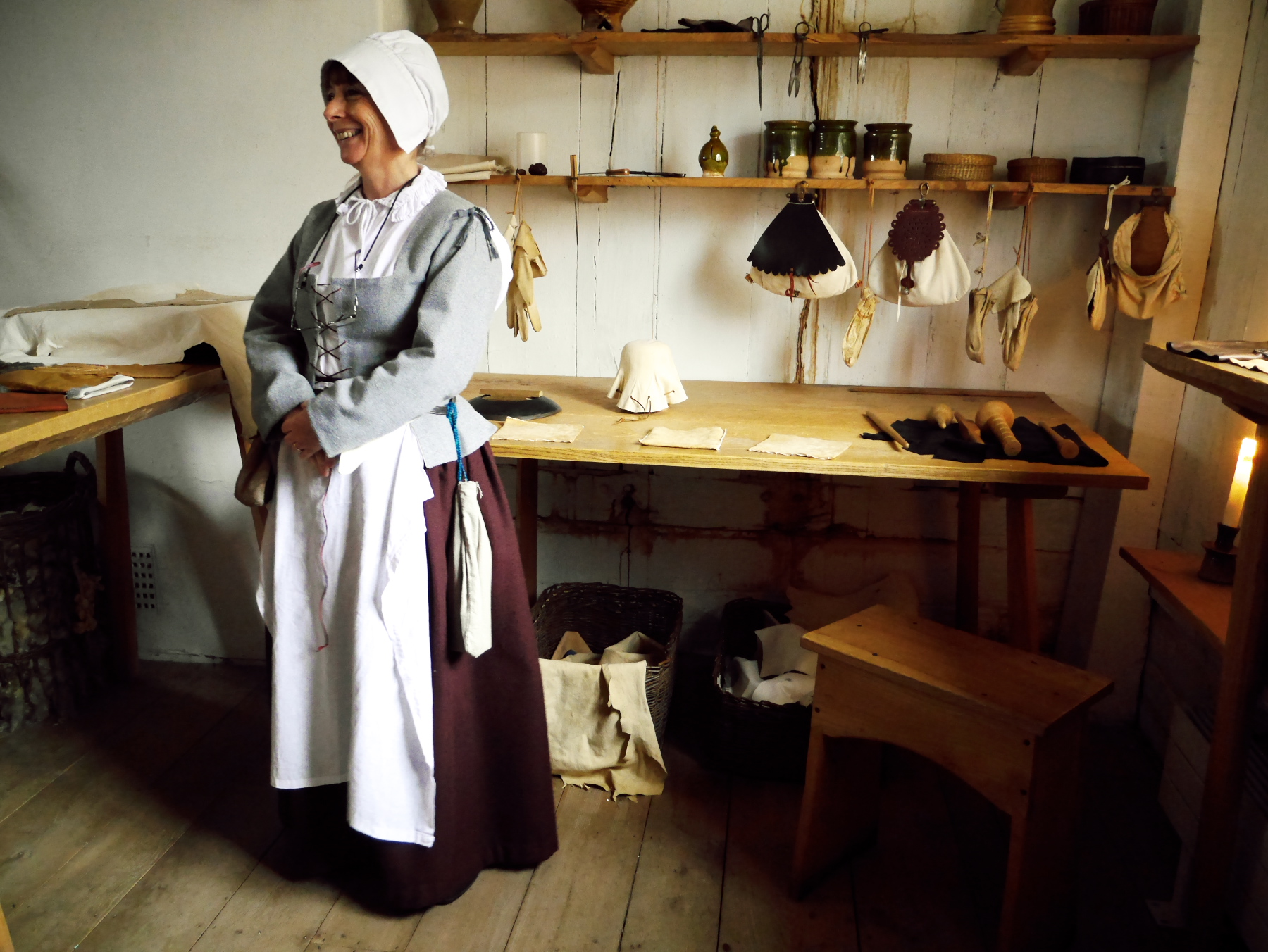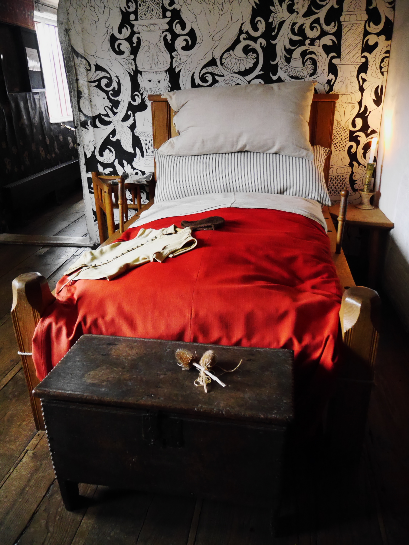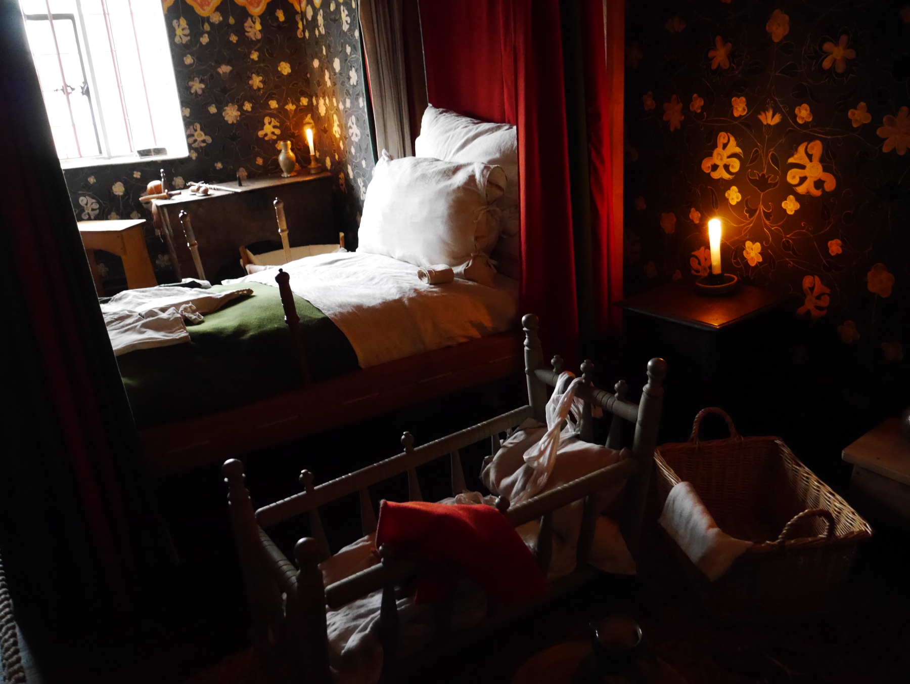 La maison a été gardée plutôt intacte, avec du mobilier d’époque. On y découvre un hall plutôt sombre, une cuisine qui devait être bien fournie, des chambres séparées pour parents et enfants (le luxe, à l’époque, même si frères et sœurs dormaient ensemble, divisés par sexe) et bien entendu, il y avait l’atelier de maroquinerie du chef de famille. Pour illustrer la fabrication d’objets à l’époque, des artisans y officient tous les jours et préparent devant vous gants ou autres sacoches. On s’y croirait presque! Ne manque plus que la persistante odeur d’urine qui devait y régner, vu l’utilisation massive qu’on en faisait pour traiter les peaux de bêtes. Juste à côté, il y a une annexe. William, qui outre un auteur, avait également le sens des affaires, surtout immobilières, y avait ouvert un pub: The Maidenhead and the Swan. Outre la maison natale, on peut également visiter le cottage de Anne Hathaway, la femme de Shakespeare, et la ferme de Mary Arden, sa mère, qui était fille d’un grand propriétaire terrien. On peut aussi y voir une des maisons qu’il acheta, une fois fortune faite: New Place.