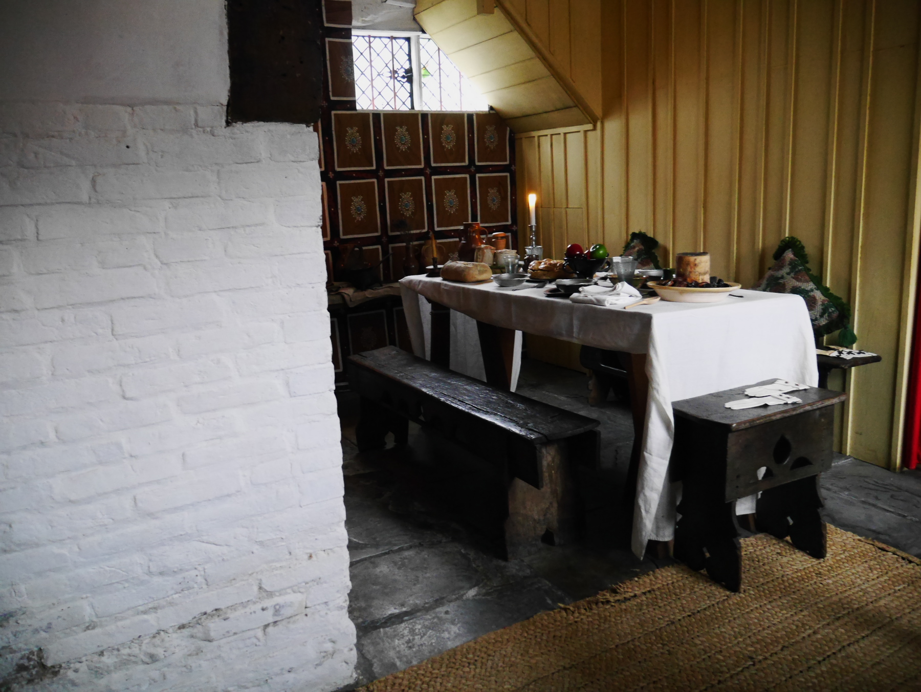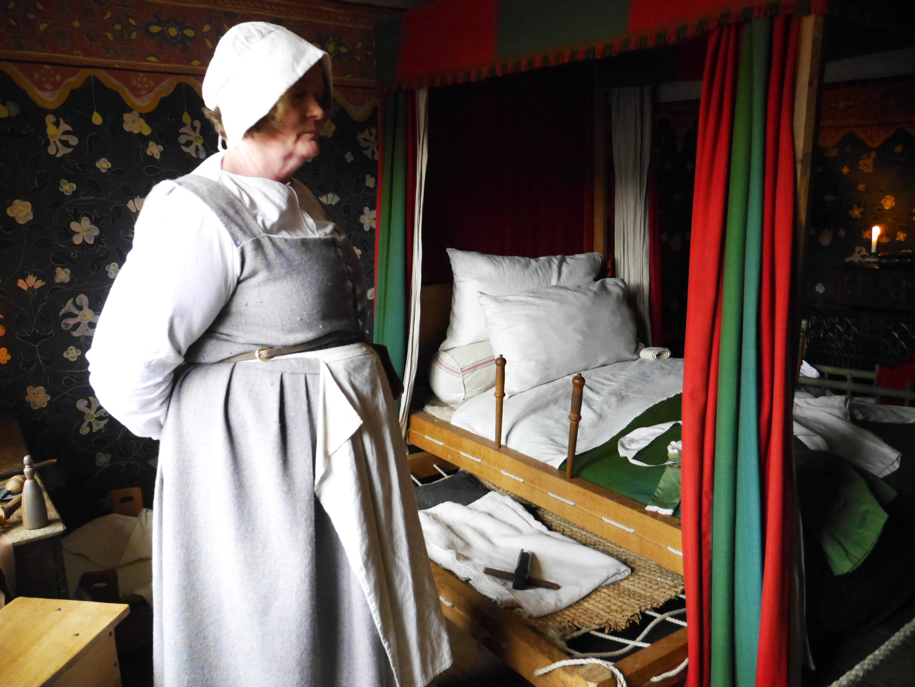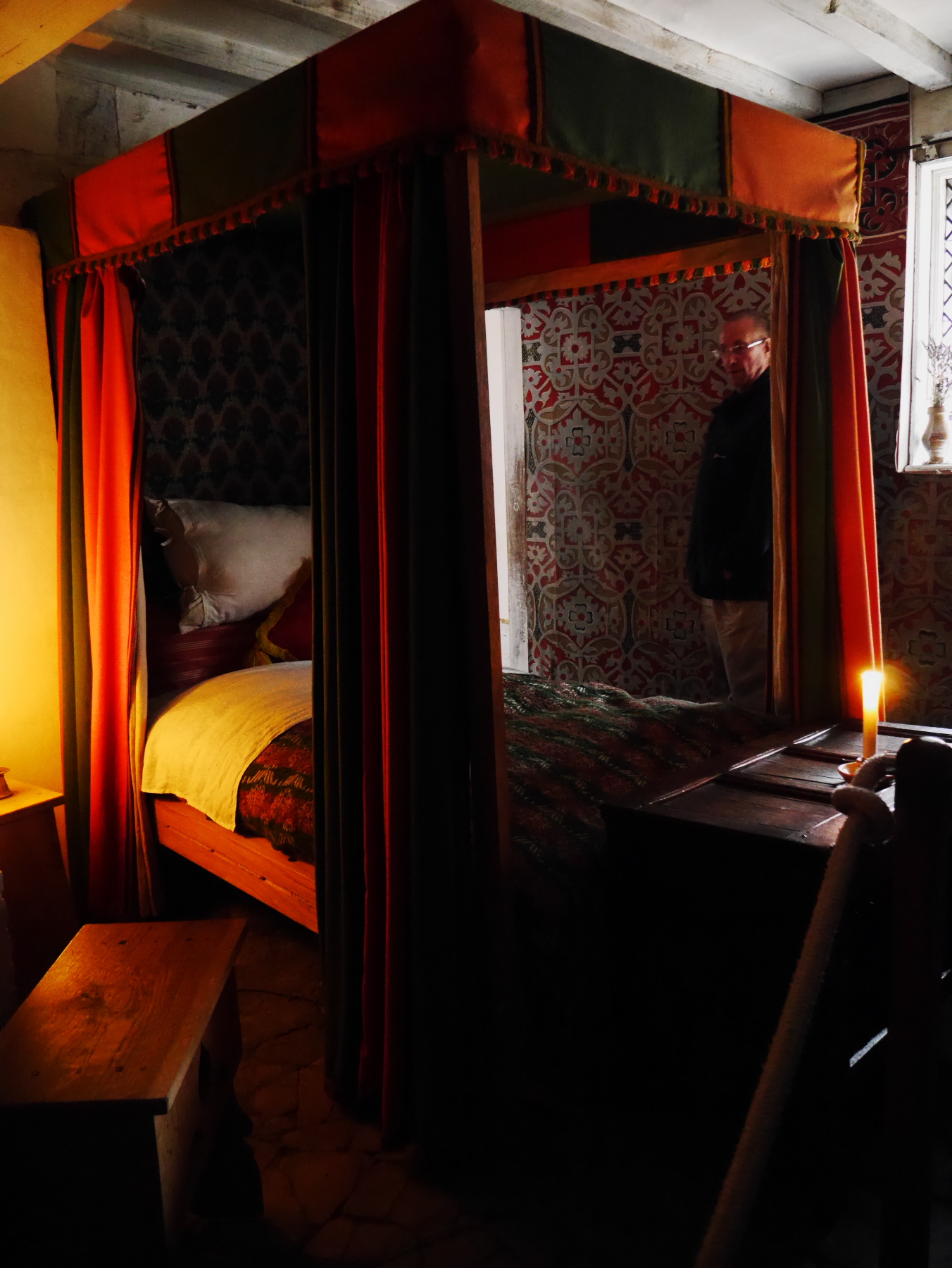 La maison a été gardée plutôt intacte, avec du mobilier d’époque. On y découvre un hall plutôt sombre, une cuisine qui devait être bien fournie, des chambres séparées pour parents et enfants (le luxe, à l’époque, même si frères et sœurs dormaient ensemble, divisés par sexe) et bien entendu, il y avait l’atelier de maroquinerie du chef de famille. Pour illustrer la fabrication d’objets à l’époque, des artisans y officient tous les jours et préparent devant vous gants ou autres sacoches. On s’y croirait presque! Ne manque plus que la persistante odeur d’urine qui devait y régner, vu l’utilisation massive qu’on en faisait pour traiter les peaux de bêtes. Juste à côté, il y a une annexe. William, qui outre un auteur, avait également le sens des affaires, surtout immobilières, y avait ouvert un pub: The Maidenhead and the Swan. Outre la maison natale, on peut également visiter le cottage de Anne Hathaway, la femme de Shakespeare, et la ferme de Mary Arden, sa mère, qui était fille d’un grand propriétaire terrien. On peut aussi y voir une des maisons qu’il acheta, une fois fortune faite: New Place.