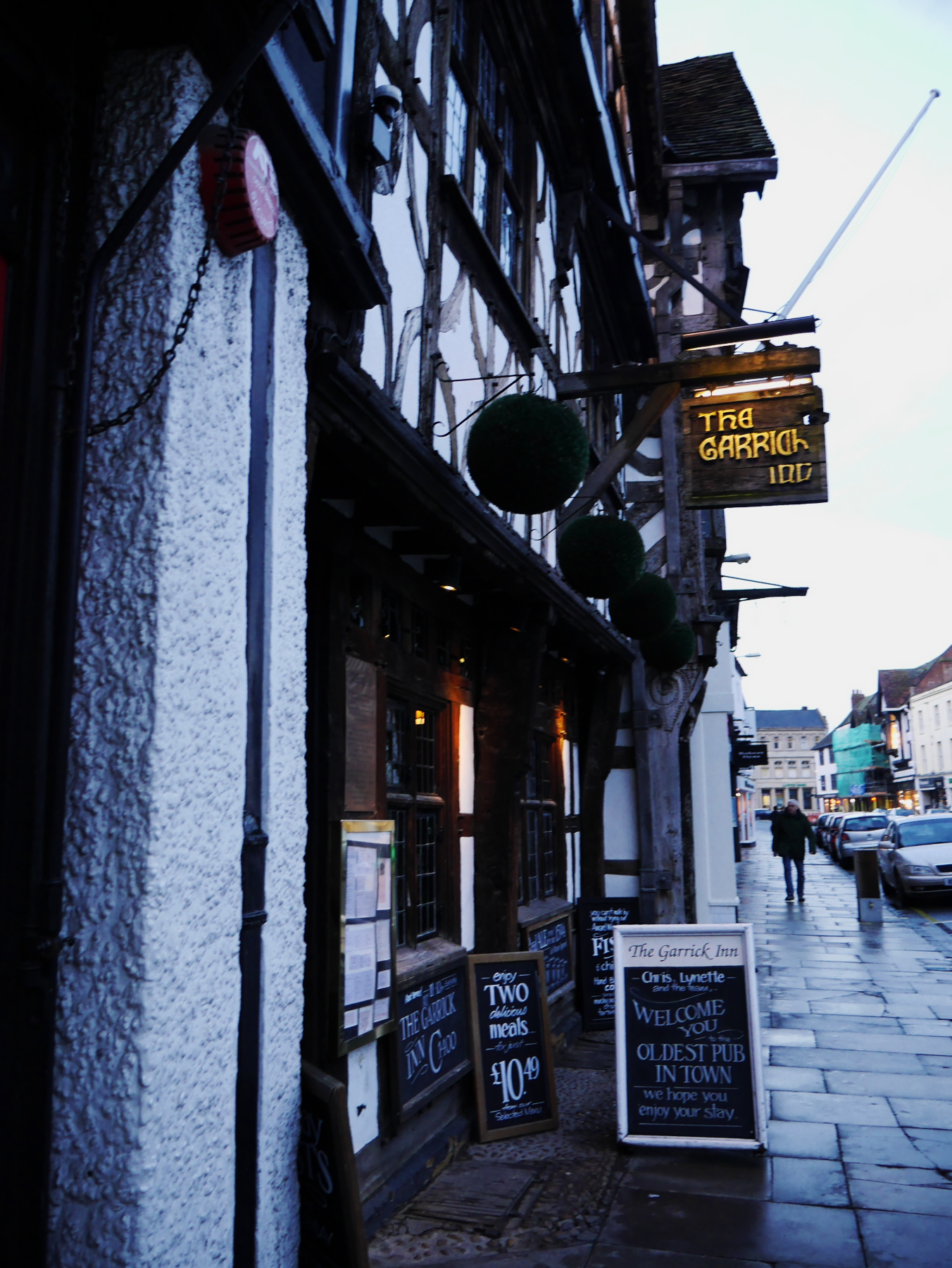 Dans cette ville aux allures surannées, vous tomberez facilement sur « The Garrick Inn« , le pub le plus ancien de Stratford. On y vient d’abords pour admirer sa façade et ses motifs mais une fois à l’intérieur, on retrouve tous les composants du pub: le bois sombre, les fenêtres qui laisse à peine passer la lumière… L’espace à l’avant est assez étroit (c’est si bon, la chaleur humaine) et un peu bas de plafond. Lectrice, Lecteur, laisse toi poser les coudes sur le bar et demande une pinte de Shakesbeer… et on verra si tu ne seras pas inspiré par l’ambiance du lieu.
