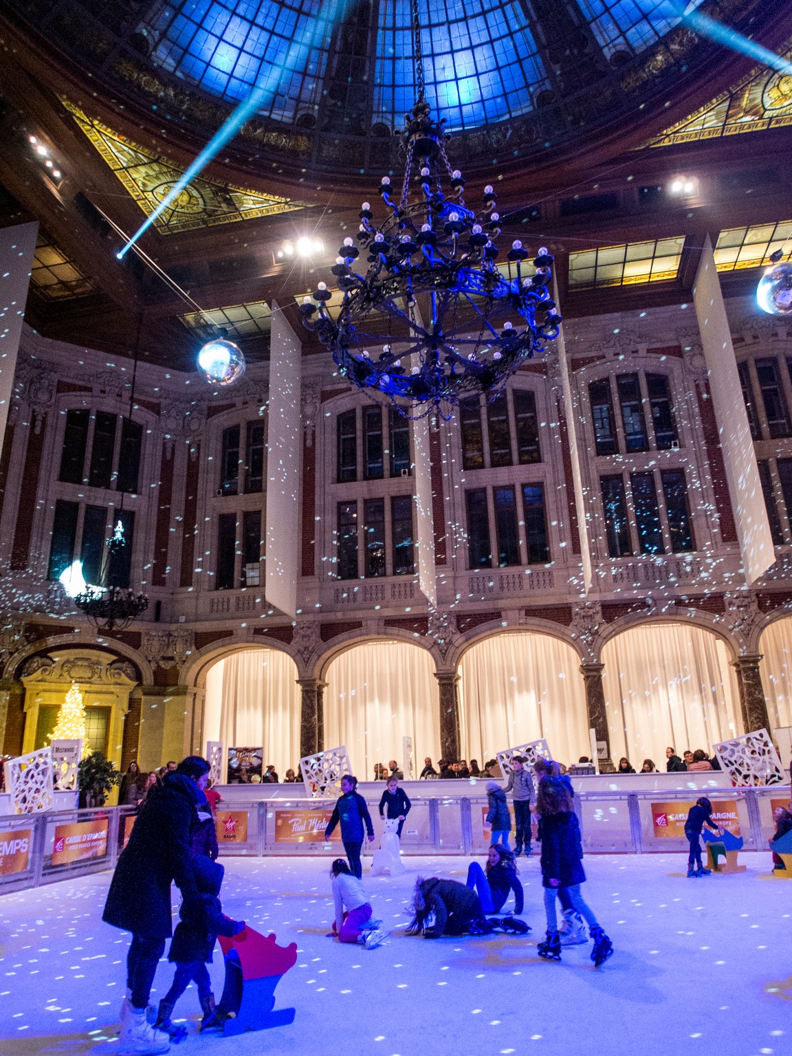 MM : Voilà, si vous avez des enfants ils ne se feront pas mal quand ils tomberont, aussi et l'endroit est vraiment superbe avec des projections sur les murs et cette immense verrière donc on n'a pas froid, on peut patiner sans problèmes et c'est vraiment à voir. Si vous allez à Lille, surtout ne loupez pas la patinoire de la Nouvelle Bourse.