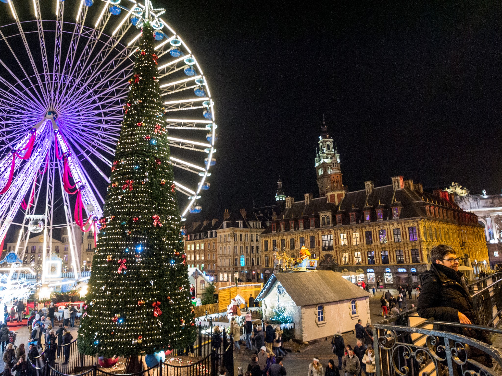 MM : Oui, On peut facilement y arriver. A Lille en fait, c'est un marché qui commence à prendre un peu plus d'importance et on va dire que le clou du Marché de Noël, c'est une immense grand-roue qui est sur la Grand-Place de Lille avec un gros nœud rouge. Elle est vraiment très, très belle et elle est aussi, très, très haute et une fois en haut, on peut voir tout le panorama de la ville de Lille et c’est très, très beau mais le marché de Noël en lui-même est sur une place un peu sur le côté de la Grand-Place sur la Place Rihours. Cette année, il s'est un peu plus étalé. C'est vraiment un marché qui est très traditionnel avec de la vente de déco, de l'artisanat, évidemment à manger mais mon endroit préféré du Marché de Noël à Lille, c'est la patinoire de la Nouvelle Bourse où se trouve la Chambre de Commerce et d'industrie où ils ont installé une patinoire en plastique, synthétique donc ce n'est pas de la glace et c'est plus écologique.