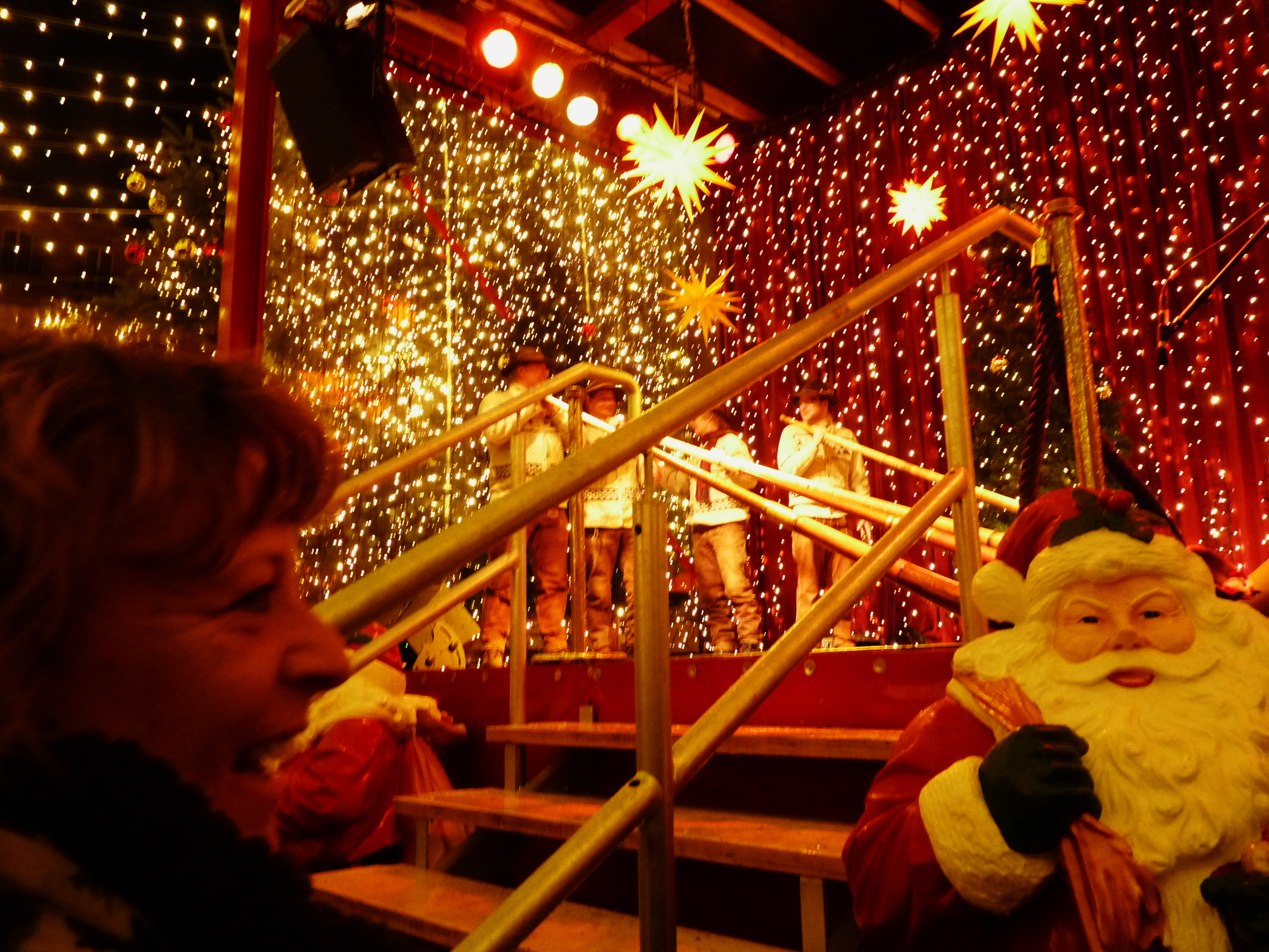 MM : Tout le monde est debout et ça tourne, comme dans un manège et cette année, ils ont inauguré un truc où il y a des espèces de petits chalets où on peut commander à boire et à manger avec un karaoké mais uniquement de chansons de Noël !