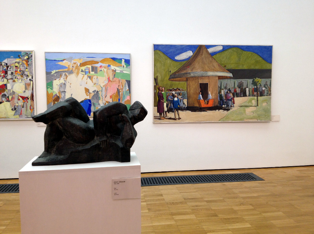 Vers le 19e siècle, avec le modernisme, apparaissent les premiers artistes estoniens qui se mettent tout de suite dans l’air du temps. Avec la première indépendance, vinrent les première œuvres plus personnelles, soit des commentaires de l’artiste sur son époque, soit des exercices de style, soit des sujets ayant trait à un folklore estonien retrouvé et affirmé. Après la 2e guerre mondiale, l’Estonie perd son indépendance et devient une république socialiste soviétique. Une petite salle est consacrée au réalisme soviétique, comme s’il on invitait le visiteur à ne pas s’attarder sur une période que les Estoniens aimeraient bien oublier… mais même pendant l’ère soviétique, les artistes ont pu trouver quelques petites failles… telle cette magnifique tête de Lénine complètement hypnotique… et même presque psychédélique d’Ilmar Malin. Je me suis demandée si ce crime de lèse-majesté avait été 1.) commis en exil ou 2.) Puni par le goulag. Eh bien aucun des deux ! L’artiste est mort à 70 ans et n’a pas été inquiété… parce qu’il s’agissait de surréalisme.
