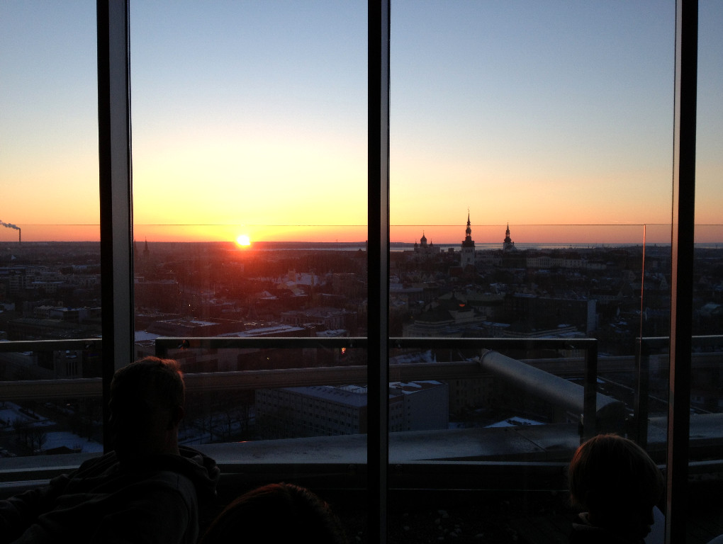 Nous explorerons le musée jusqu’à la fermeture… le soleil se couche doucement. Je calcule l’heure… nous avons le temps d’arriver au bar du Radisson Blu, le Lounge 24, perché au 24e étage d’un des bâtiments le plus haut de Tallinn, nous voilà tous les trois, cocktail en main, en train d’admirer un coucher de soleil en technicolor. L’envie est trop forte de sortir voir çà depuis laterrasse !! Nous sommes littéralement gelés dès que nous mettons les pieds dehors, mais si nous étions fatigués, nous voilà tous remis en selle par un bon coup de vent glacial. Le dernier… mais cette journée était loin d’être terminée car comme la nuit suit toujours le jour, le côté lumineux ne peut exister sans le côté obscur.