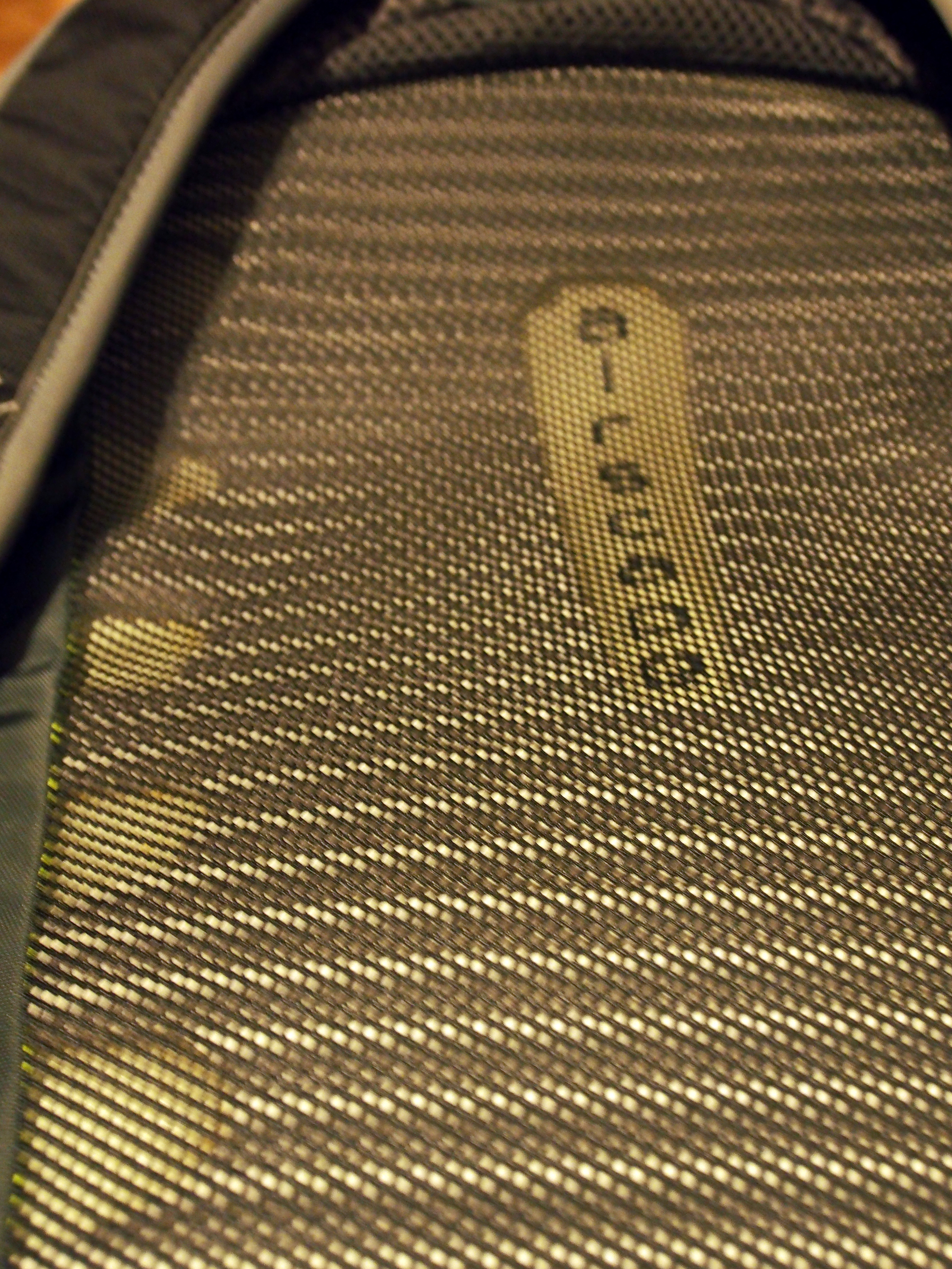- L’absence d’un filet sur le panneau frontal. La place du filet est prise par l’attache pour casque à vélo, mais le filet m’a bien servi avec mon sac Quasar, pour pouvoir y mettre des serviettes de bains ou des vêtement mouillés pour qu’il puissent rester à l’air libre.