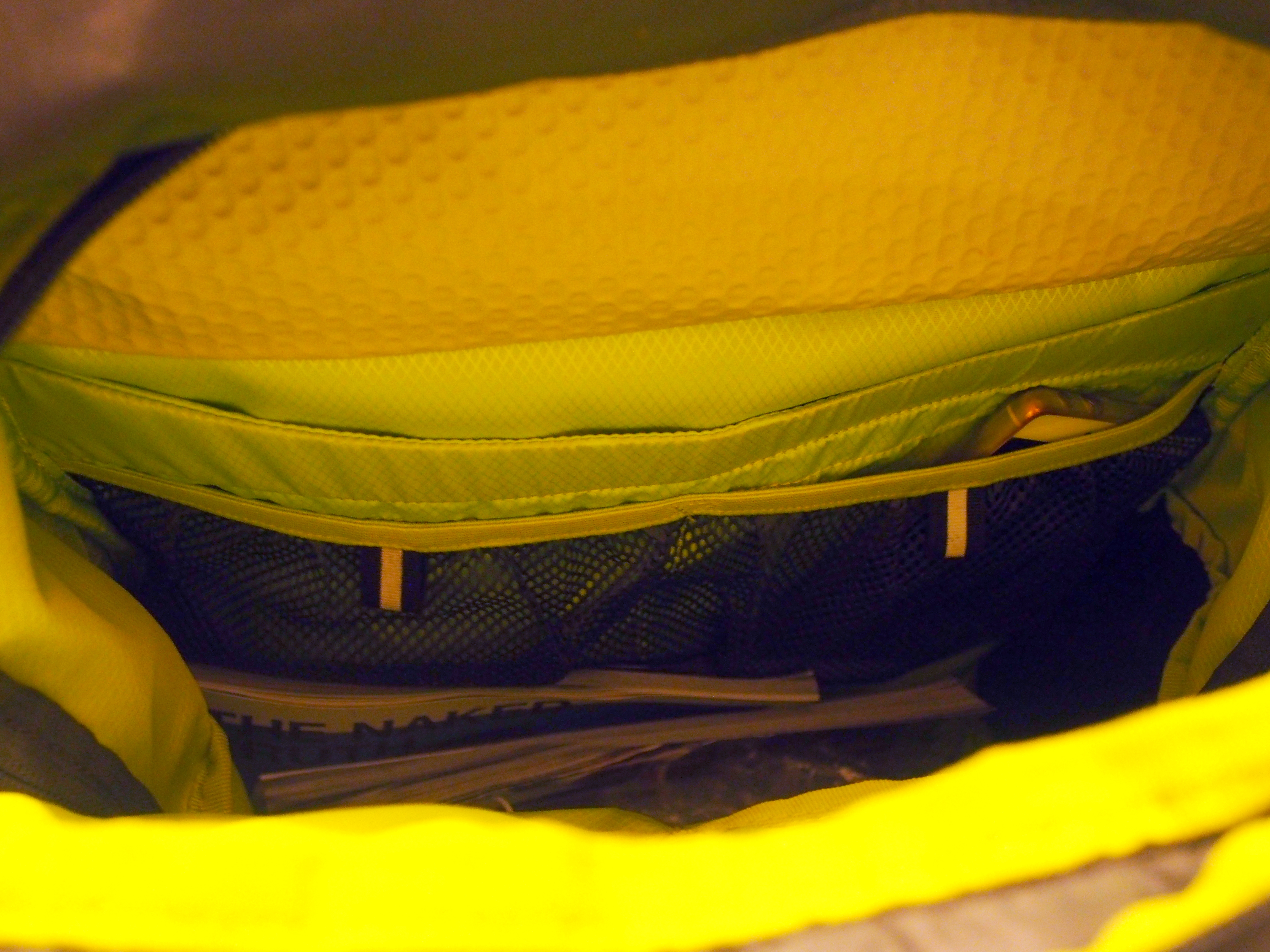 Pour organiser vos affaires, le Momentum dispose d’une foule de compartiment et de filets. Le premier compartiment est accessible sur le haut du sac. On peut y placer son ordinateur portable (13 pouces maxi), des documents ou magazines.La pochette est rembourrées et on y trouve également un fourreau pour tablette (dont je n’ai pas encore testé l’utilité).
