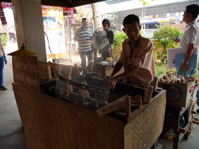 En attendant de rêver aux aventures de demain, ce soir là, nous déambulerons parmi les étals du Bazar de nuit de Chiang Mai. Une ville qui semble vraiment vivre la nuit. On se presse le long des trottoirs étroits, on marchande sur de vrais fruits séchés et du faux maquillage, on se promet de revenir pour se faire un massage express dans une boutique de massage à la chaîne comme on en trouve partout dans les grandes villes de Thaïlande mais surtout, surtout, on sacrifie à l’expérience de la « fish therapy » ou autrement dit: comment se faire dévorer les peaux mortes par de voraces petits poissons. A absolument déconseiller aux plus chatouilleux, même si personnellement, je trouve çà plus similaire à des mini-décharges électriques! Si l’expérience vous tente, faîtes quand même gaffe à l’hygiène des bassins (une infection est vite arrivée). Et c’est là qu’on se rend compte que les poissons ont des personnalités. certains sont méthodiques (s’attache longuement à un endroit, puis s’attaque à un autre morceau tout à côté), d’autre « butinent », enfin, certains s’acharnent (un des plus gros restera attaché au bas de mon mollet jusqu’au bout des 15 minutes). Au final, des pieds relativement doux mais aussi, une sensation de relaxation plutôt inattendue (ça marcherait donc plus ou moins).