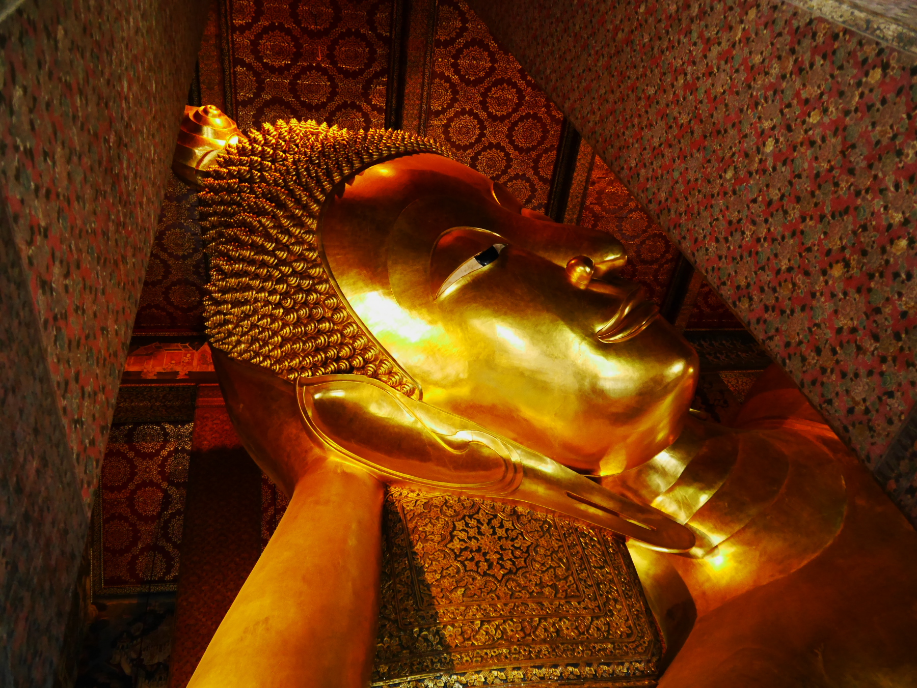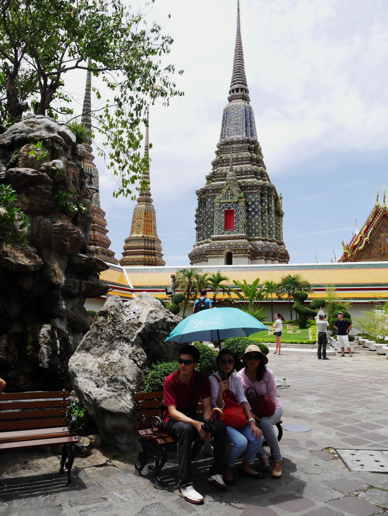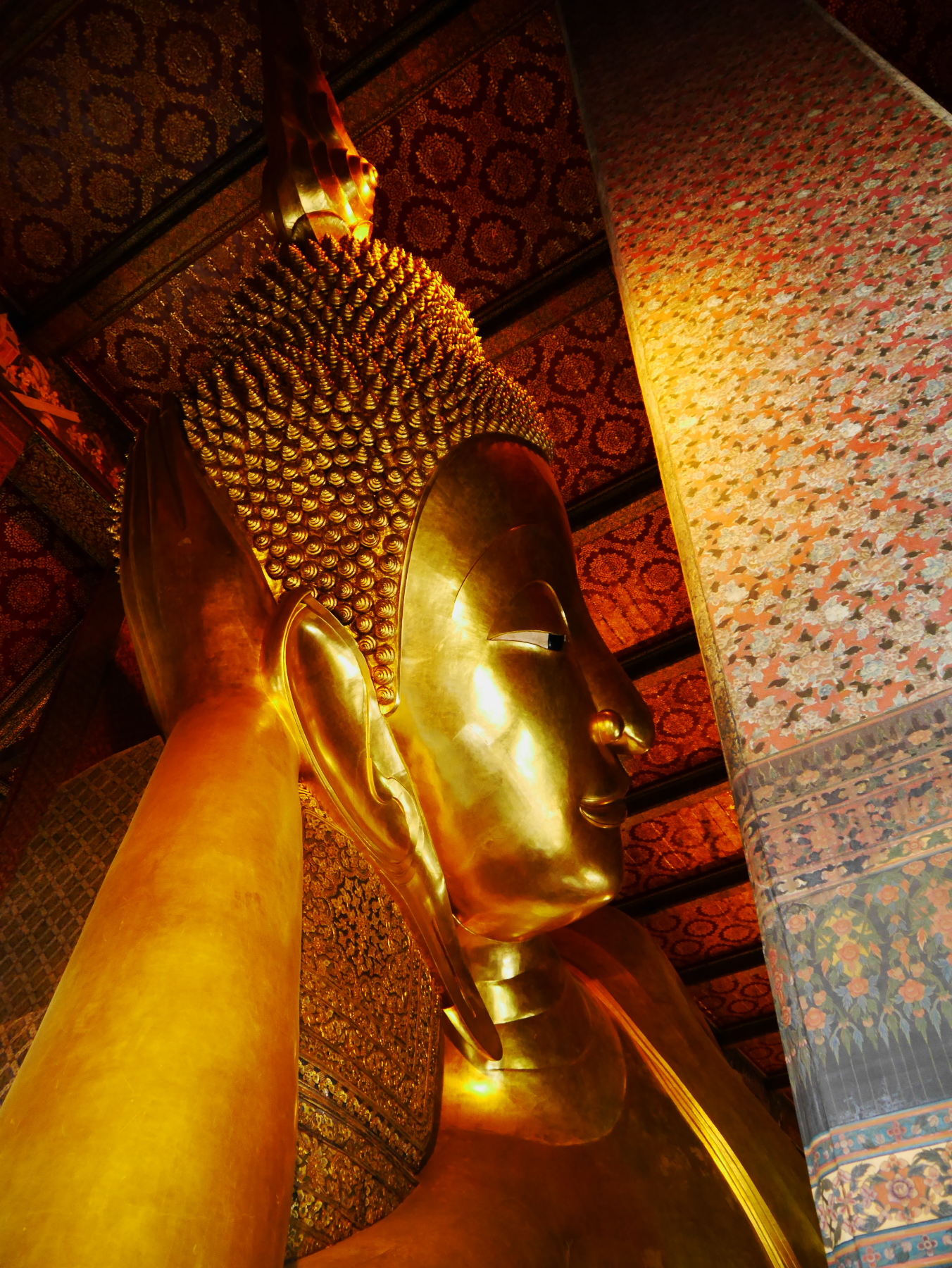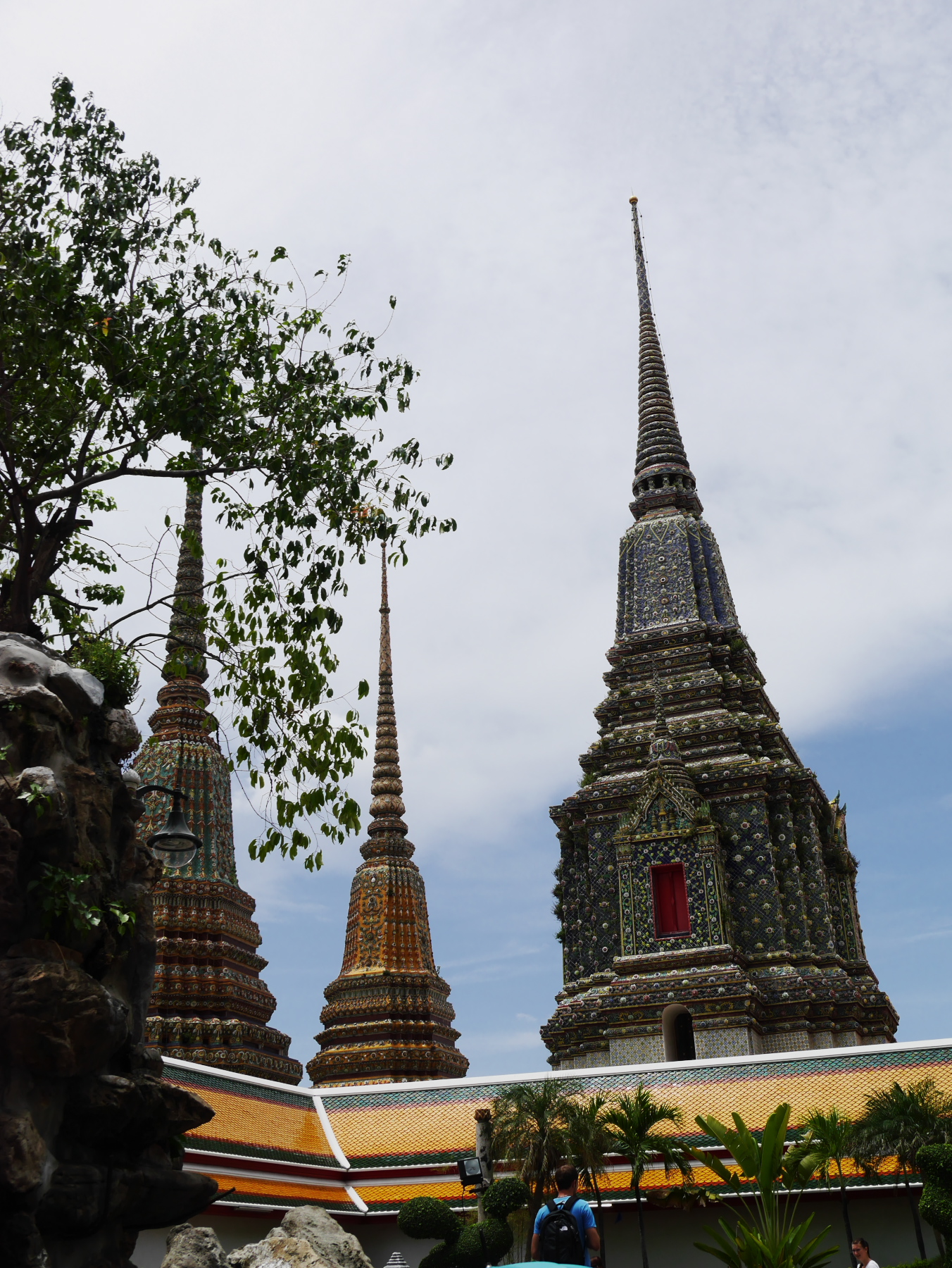C’est avec plaisir que je retrouve une vieille connaissance : le grand Bouddha couché du Temple de Wat Pho, le plus important des temples de Bangkok. La grande statue dorée à l’or fin d’un Bouddha mourant m’impressionne tout autant que la première fois! On y vient pour admirer le travail des artistes qui ont contribué à la beauté du site, pour un prier dans le Grand Temple Central, et méditer à l’ombre des pagodes des 4 premiers souverains Chakri. En se baladant à travers ses allées, on croisera des statues détonnant plutôt avec l’architecture et les sculptures typiquement thaïlandaises. Ces lions et autres messieurs aux longues moustaches auraient plutôt leur place à Pékin qu’à Bangkok! Il s’agit en fait de ballast. Vestige du temps où les navires apportaient à la Chine le riz et entre denrées dont elles avaient bien besoin. Au retour, on y amenait de la porcelaine, mais aussi des statues pour servir de ballast. A présent, ces figures de mandarins et ces animaux fantastiques gardent le Bouddha et la mémoire des rois de Siam.