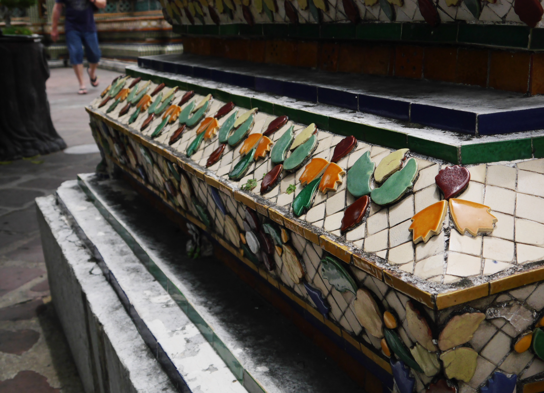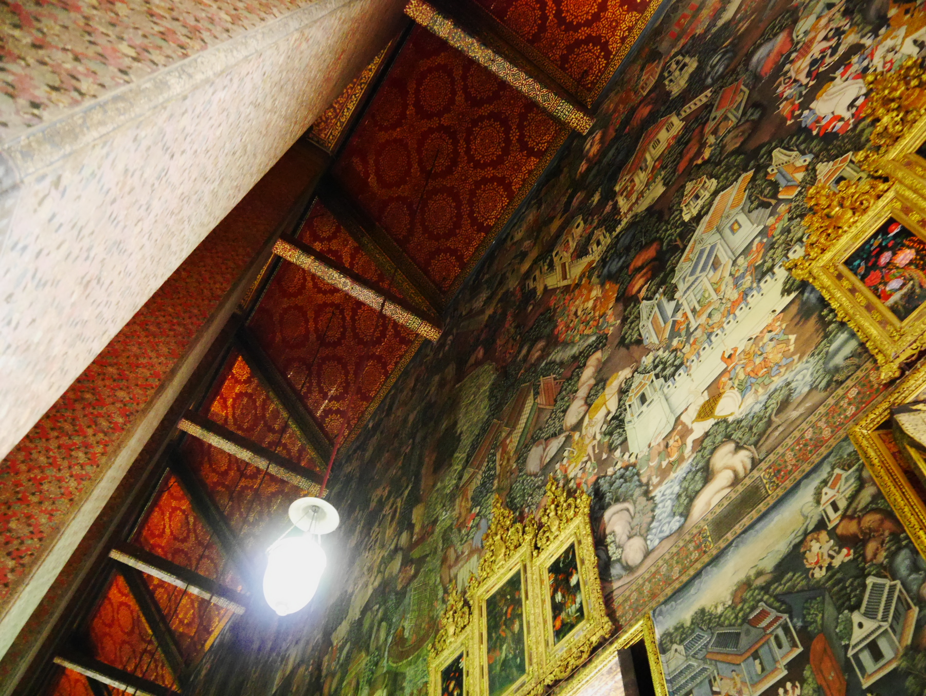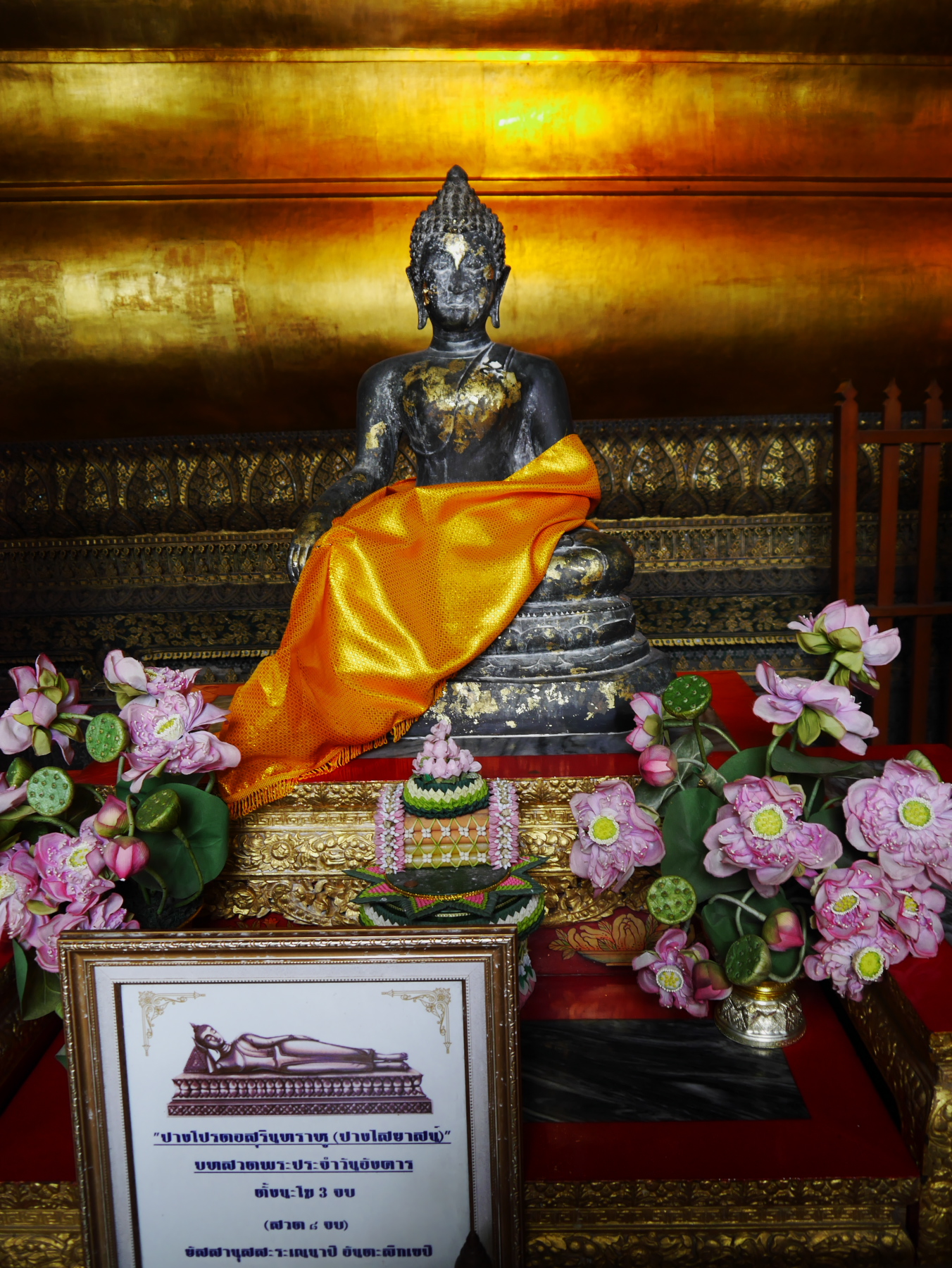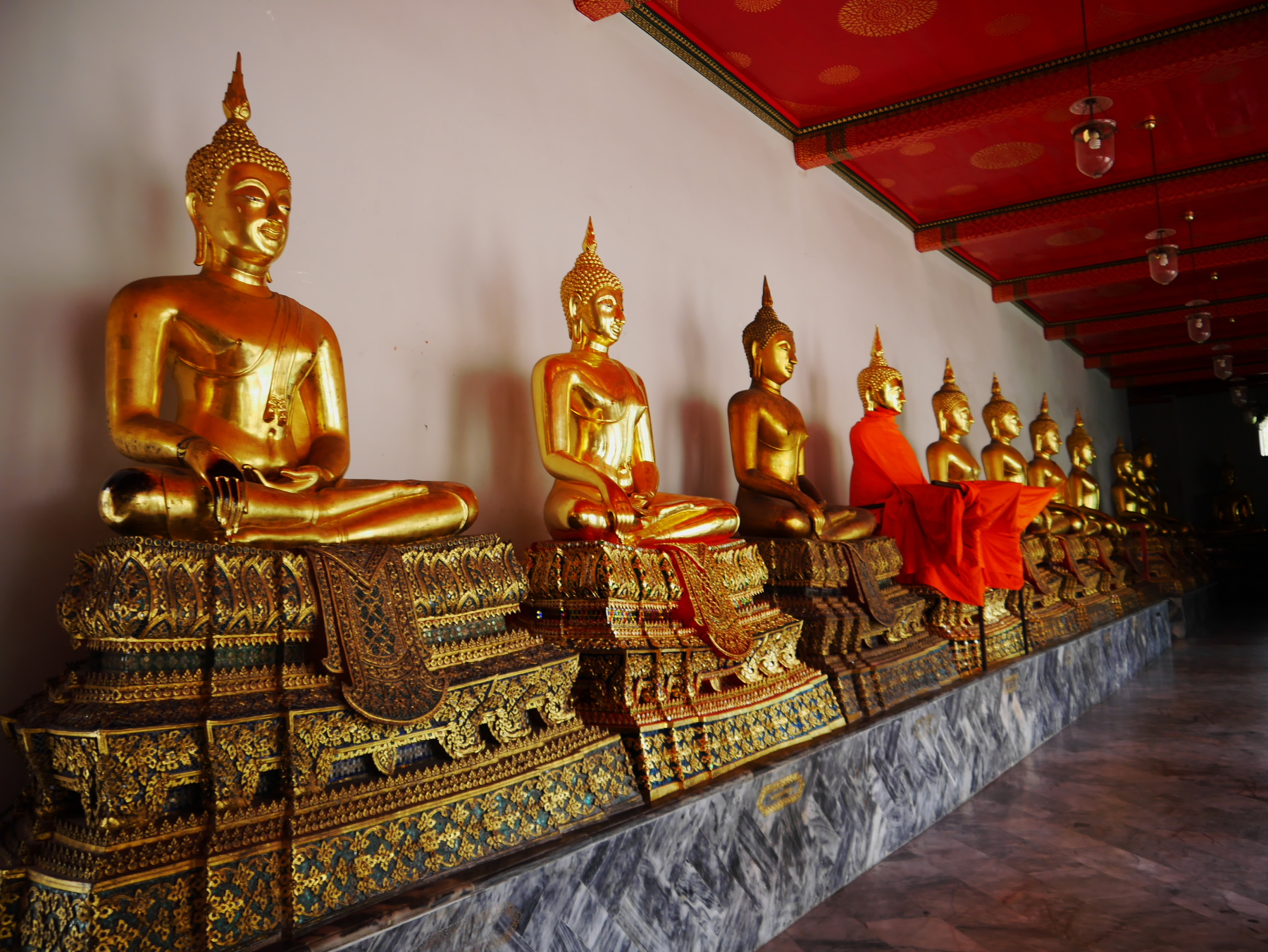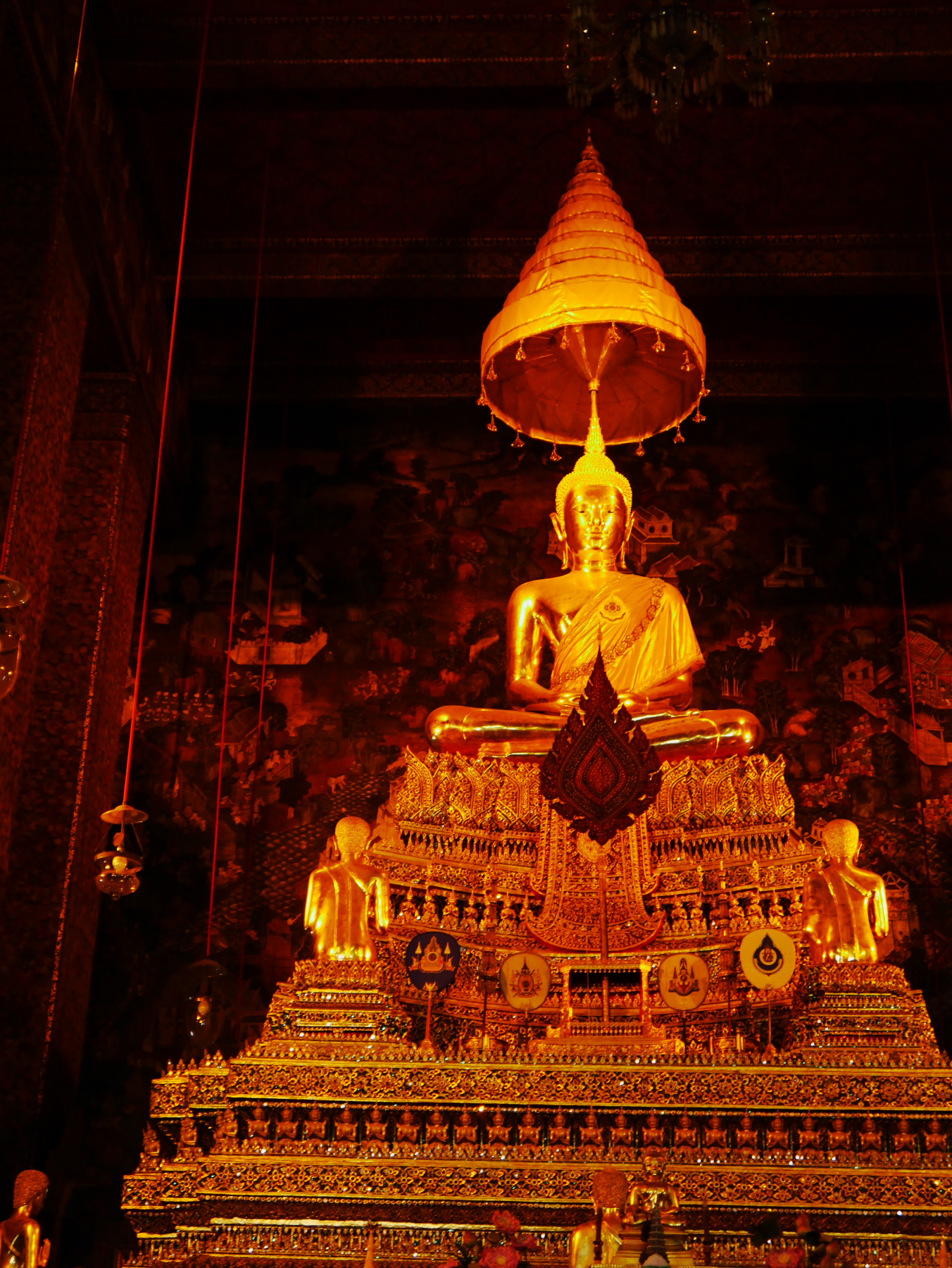 C’est avec plaisir que je retrouve une vieille connaissance : le grand Bouddha couché du Temple de Wat Pho, le plus important des temples de Bangkok. La grande statue dorée à l’or fin d’un Bouddha mourant m’impressionne tout autant que la première fois! On y vient pour admirer le travail des artistes qui ont contribué à la beauté du site, pour un prier dans le Grand Temple Central, et méditer à l’ombre des pagodes des 4 premiers souverains Chakri. En se baladant à travers ses allées, on croisera des statues détonnant plutôt avec l’architecture et les sculptures typiquement thaïlandaises. Ces lions et autres messieurs aux longues moustaches auraient plutôt leur place à Pékin qu’à Bangkok! Il s’agit en fait de ballast. Vestige du temps où les navires apportaient à la Chine le riz et entre denrées dont elles avaient bien besoin. Au retour, on y amenait de la porcelaine, mais aussi des statues pour servir de ballast. A présent, ces figures de mandarins et ces animaux fantastiques gardent le Bouddha et la mémoire des rois de Siam.
