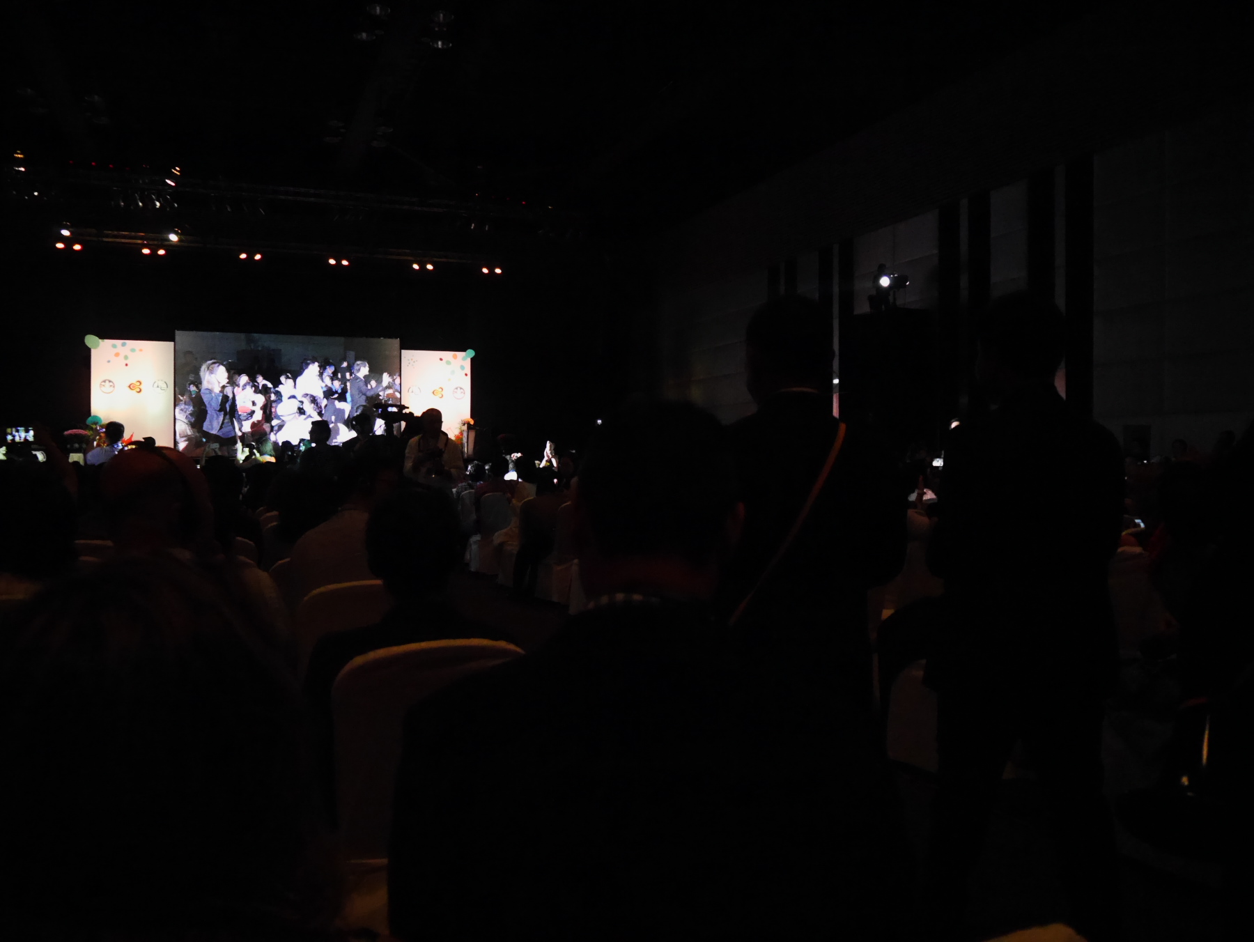 A l’intérieur du Centre de convention, c’est l’effervescence. Nos hôtes ont décidé de frapper un grand coup! Il doit y avoir près de 100 personnes rassemblées pour l’occasion. Je retrouve avec plaisir les drôles de desserts à la consistance et aux couleurs un peu irréelles…