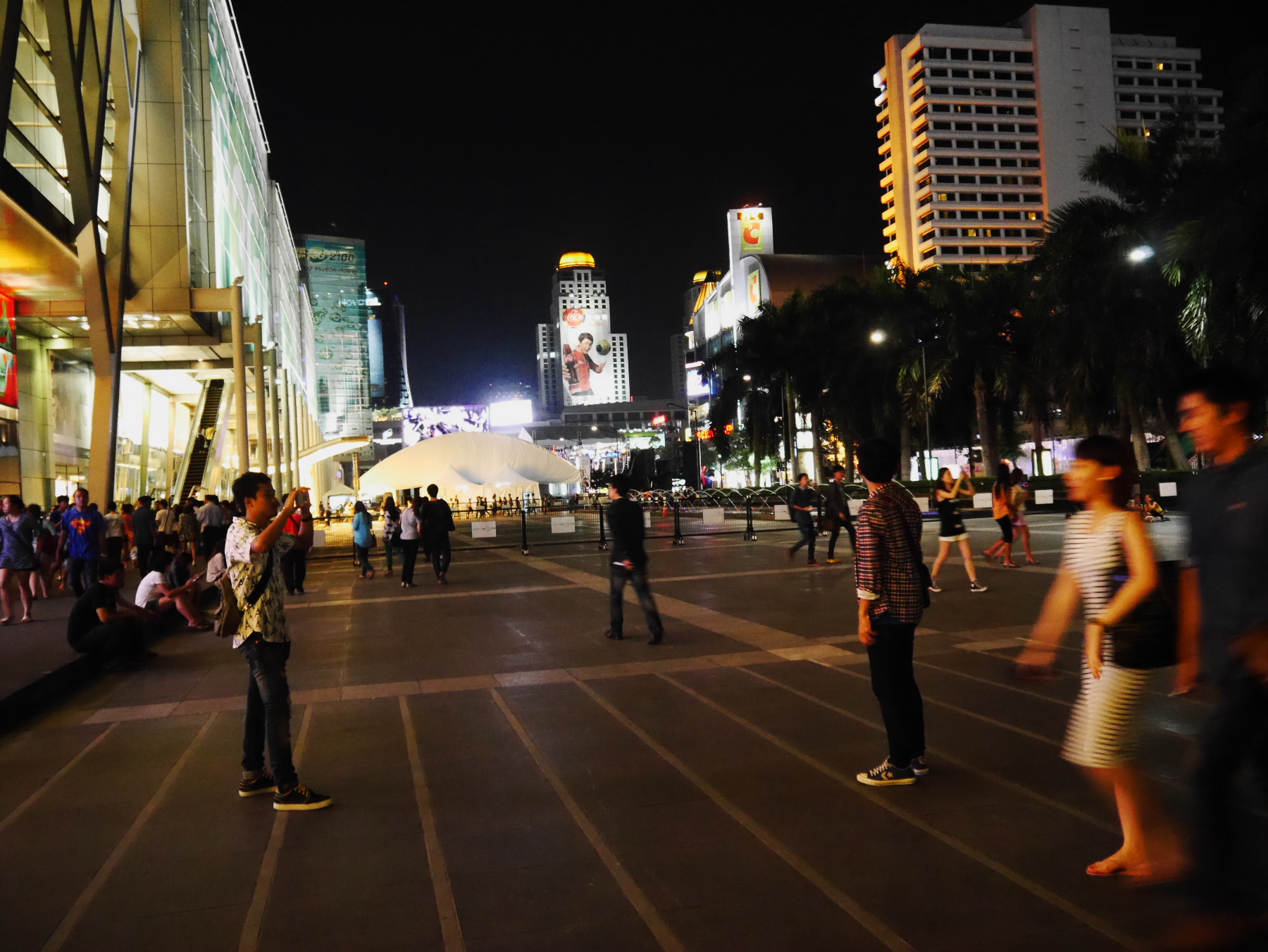 Après avoir piqué une petite tête dans la piscine de l’hôtel pour se rafraîchir les idées, nous allons nous rendre en bateau, et en métro, au Centre de convention situé dans les murs Central World, le plus grand centre commercial de Bangkok, et sa plaza est aussi le lieu de rendez-vous des habitants de Bangkok, pour les célébrations du Nouvel an occidental. Un vrai monstre de verre où l’on trouve de tout! Sept étages, 5 zones… et des allées remplies de chalands. Il ne faudra pas perdre Matthew du regard pour ne pas s’égarer complètement.