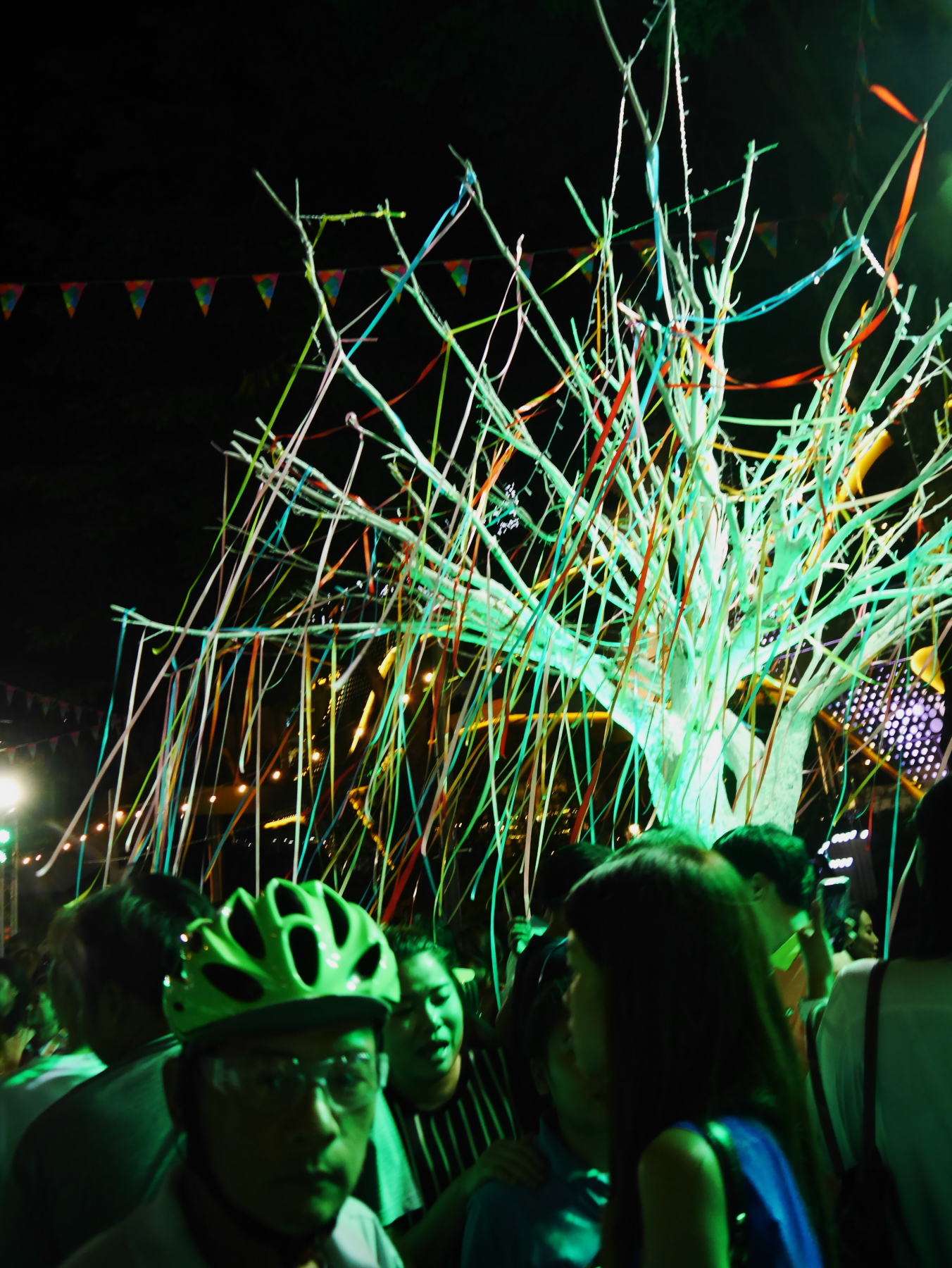 Emma et moi allons déambuler à travers une foule bonne enfant. A Bangkok, il y a toujours du monde mais là, on peut dire que c’était encore plus impressionnant que d’habitude! Vu nos estomacs bien remplis, et la foule dans la section « street-food », nous allons nous rabattre dans la section « artisanat et marché vintage ». Nous progressons lentement dans la foule. On s’arrête pour admirer un tuk-tuk customiser, ou les badauds qui souhaitent mesurer leur taux de bonheur. Je peux te confier que le mien était assez élevé après avoir déniché une robe et un combi-short rétros pour à peine 2 Euros pièces dans un stand de vêtements vintage.