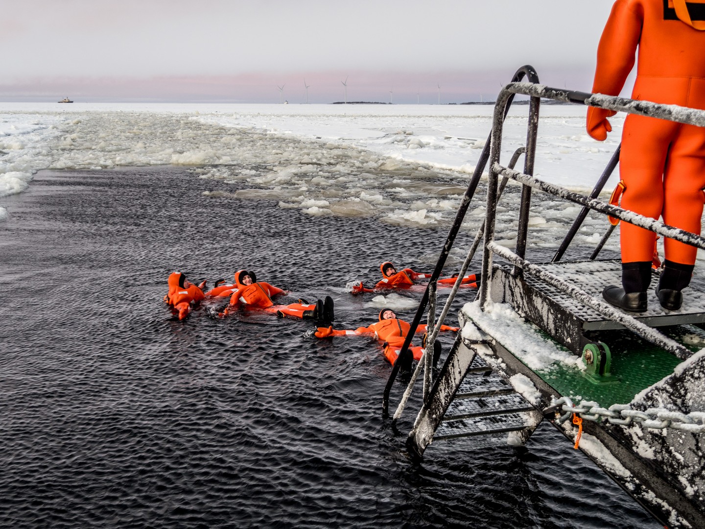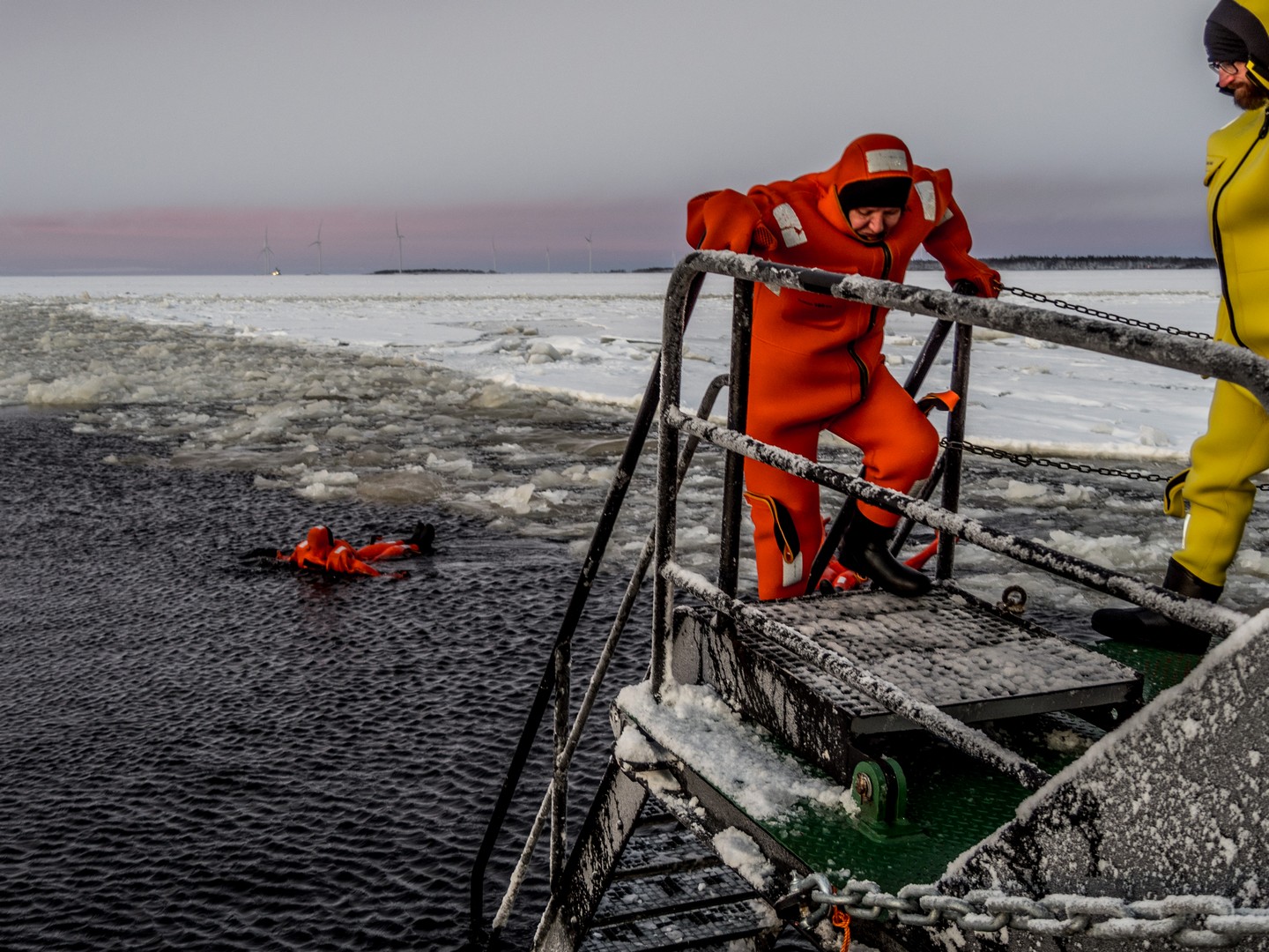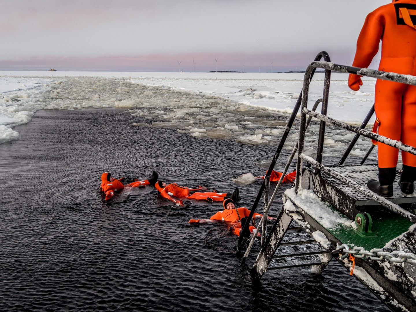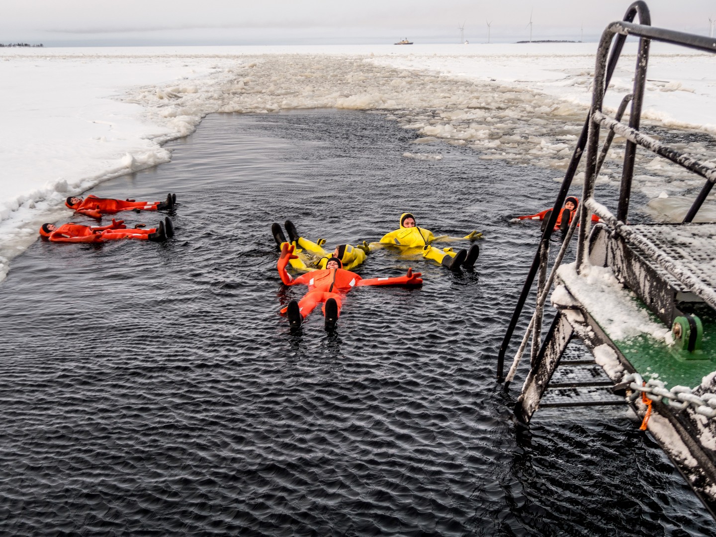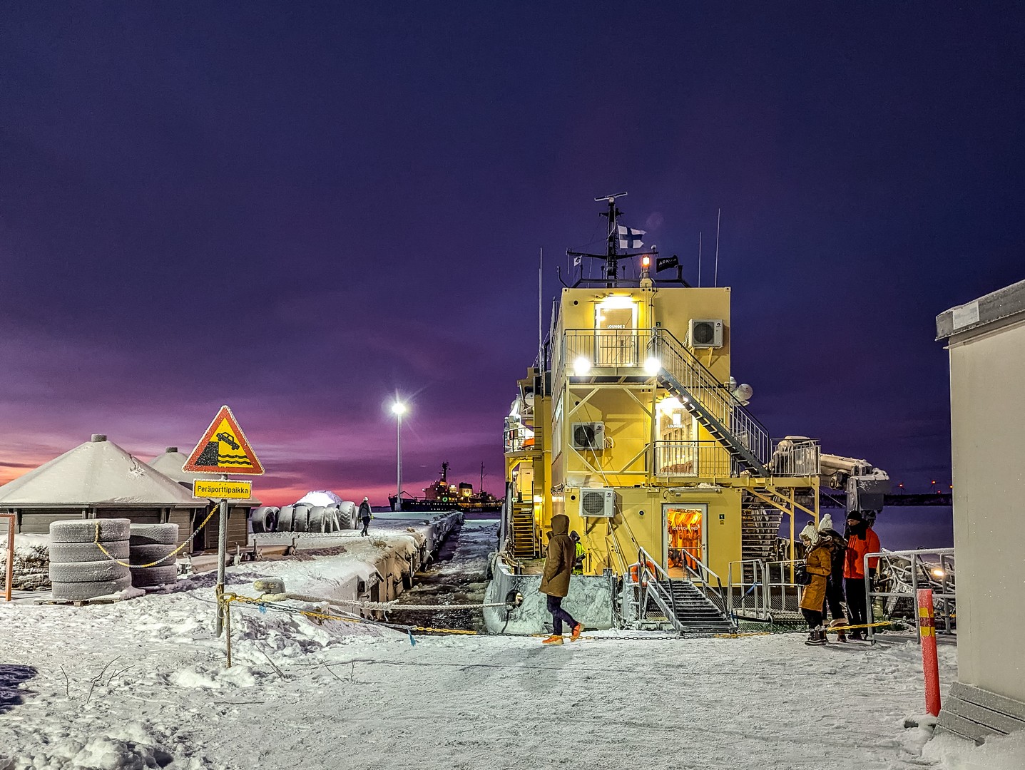 Cette petite ville industrielle (moulin à papier et mine de chrome), tout au fond du Golfe de Botnie, est l’un des lieux les plus visités de Finlande en hiver grâce à son Château de neige et tout un écosystème touristique qui s’est développé autour. Nous irons le visiter plus tard, mais pour le moment, on nous attend au check-in d’une activité qui est sans doute l’une des plus folles que j’aie jamais faites : une traversée en brise-glace… et l’occasion de flotter dans la mer gelée.