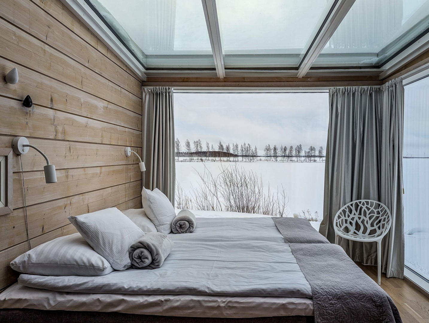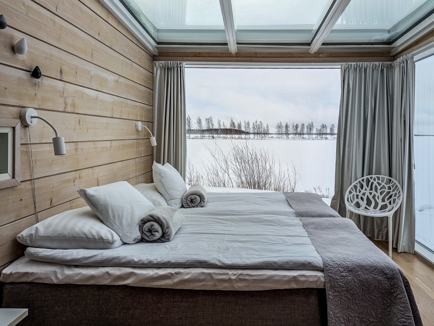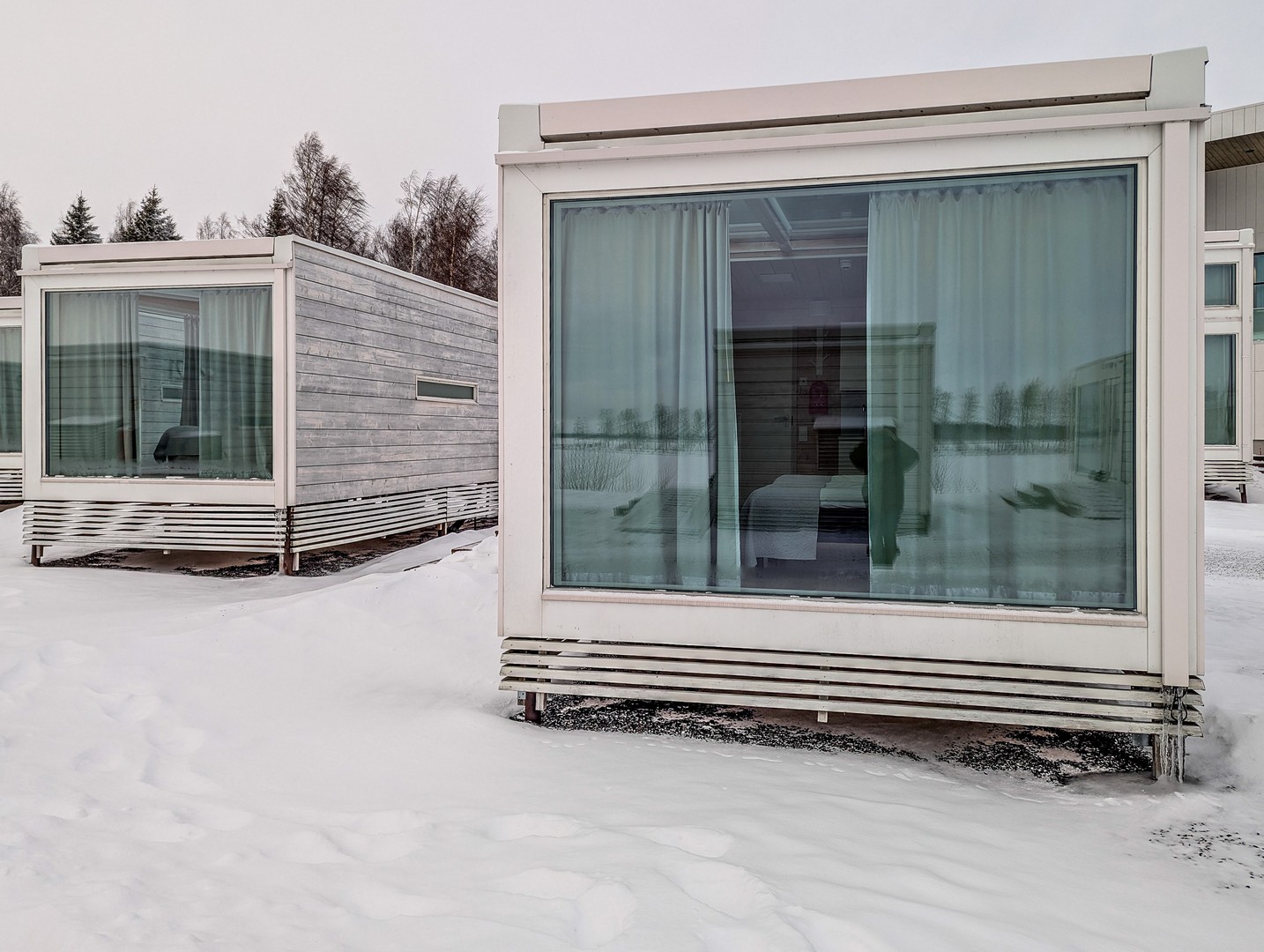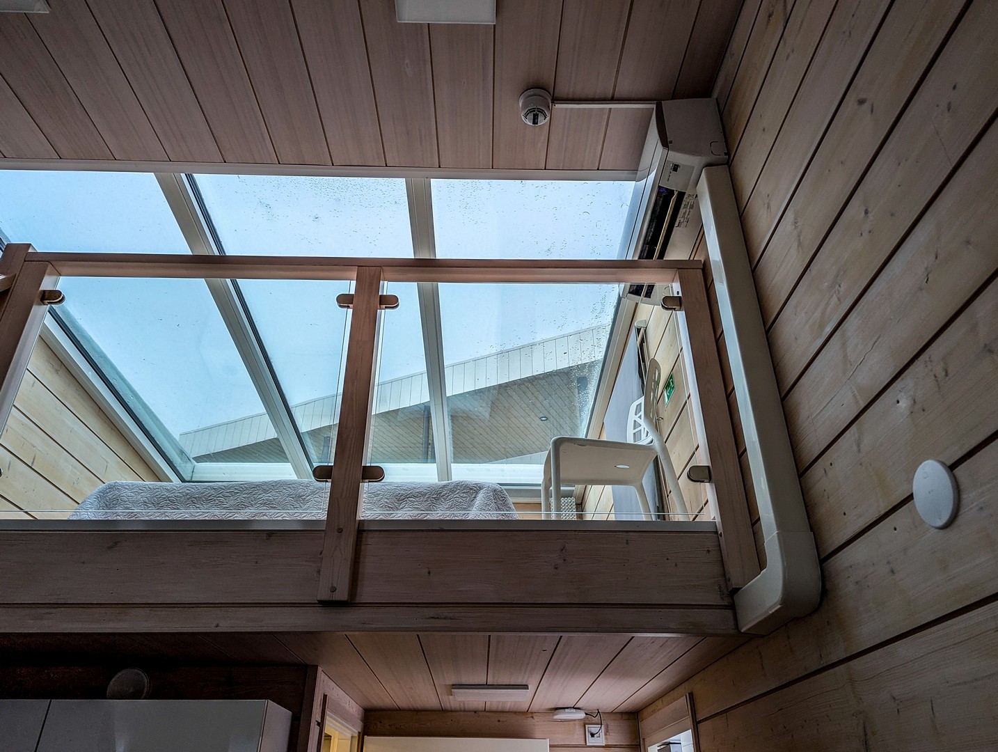 De retour sur le plancher des vaches, nous allons visiter les cabines attenantes au Village, qui permettent aux visiteurs de séjourner. Elles ressemblent à des conteneurs mais avec de vastes fenêtres ouvertes sur la mer. De plain-pied ou sous forme de duplex pour les familles, ces cabines sont meublées de manière minimaliste – mais c’est pour moins se laisser distraire de ce qu’on peut voir dehors ! Si le camping est plus votre came, il y a un terrain juste à côté !