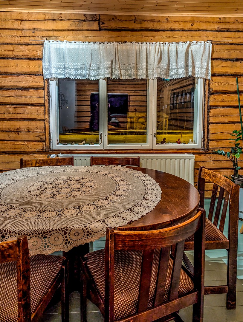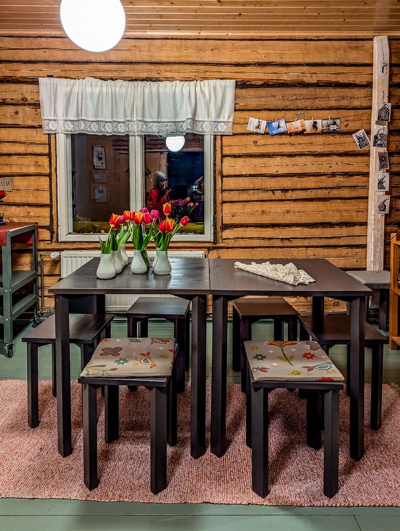 Avant de partir, Rita nous montre le petit café de Naturest, Loppula, lieu d’ateliers et de réconfort. L’intérieur est chaleureux et l’atmosphère familiale. Je m’y vois bien engloutir un cholat chaud après une rando-raquettes ! Ancien QG des garde-chasses, il n’est ouvert que le week-end et fermé en janvier.