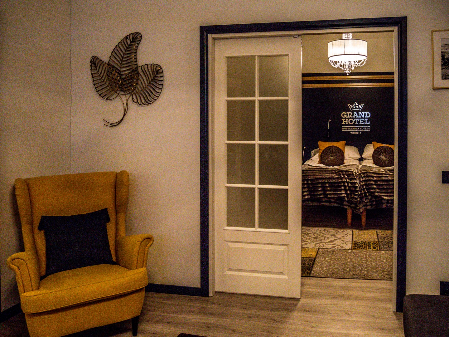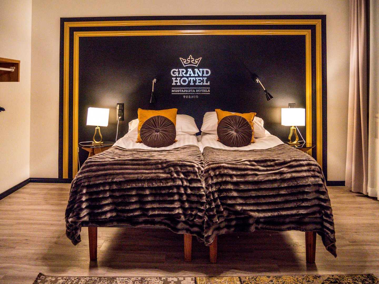 Le Mustaparta, lui aussi en plein centre-ville, est en fait deux hôtels en un ! Le Mustaparta Boutique Hotel est l’endroit où vous ferez votre check-in (et prendrez votre petit-déjeuner). Étrangement, l’hôtel est décoré sur le thème des bateaux pirates (coffres en bois, maquettes de bateaux, fenêtres en forme de hublot…) – et pour cause, il rend hommage à un héros local : Iisakki Mustaparta (littéralement « Isaac Barbenoire »). Quand Tornio était suédoise, une famine sévit dans la vallée du Torne, touchant principalement les paysans finlandais (la bourgeoisie étant quasi exclusivement suédoise). Avec quelques amis, Iisakki construisit un navire, le chargea de poix, et prit la mer en direction de Stockholm pour acheter des céréales. Déclarés hors-la-loi un temps, Iisakki et ses compagnons revinrent finalement en héros en Laponie. Je trouve que cette touche d’excentricité est plutôt sympa !