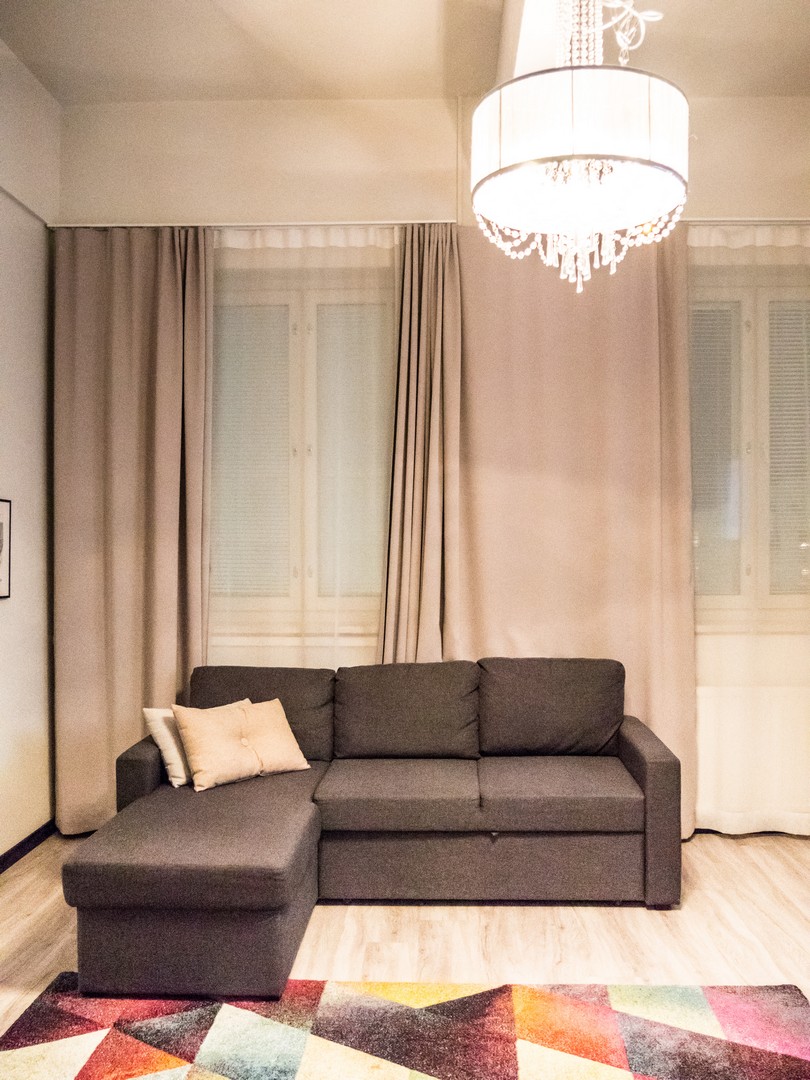 Quant à nous, nous séjournons au Grand Hotel, presque de l’autre côté de la rue. Ce bâtiment a une histoire : à l’origine, c’était une baraque pour soldats russes construite en 1914. Lui aussi arbore un style « fou-fou », avec des rues intérieures dotées de bancs et de réverbères en guise de couloirs. Les chambres sont carrément des suites immenses (peut-être même trop grandes ?), équipées d’un sauna intégré dans la salle de bain (bienvenue en Finlande !) et joliment décorées (j’émets une petite objection à la couronne au-dessus du lit, mais on sent que l’établissement ne se prend pas au sérieux). Seul bémol de cette expérience : la salle du petit-déjeuner, où la lumière est si tamisée qu’on distingue à peine son assiette.