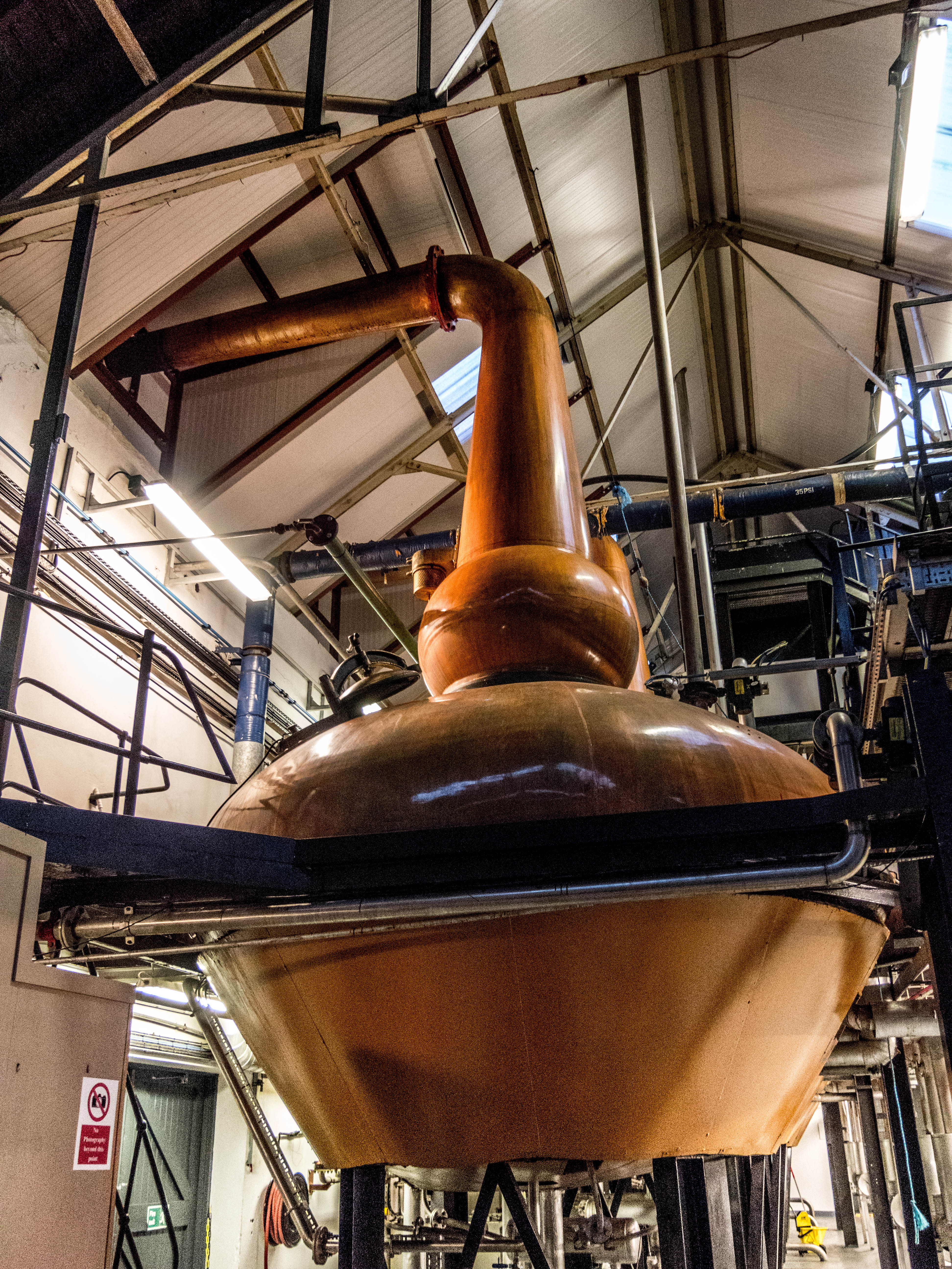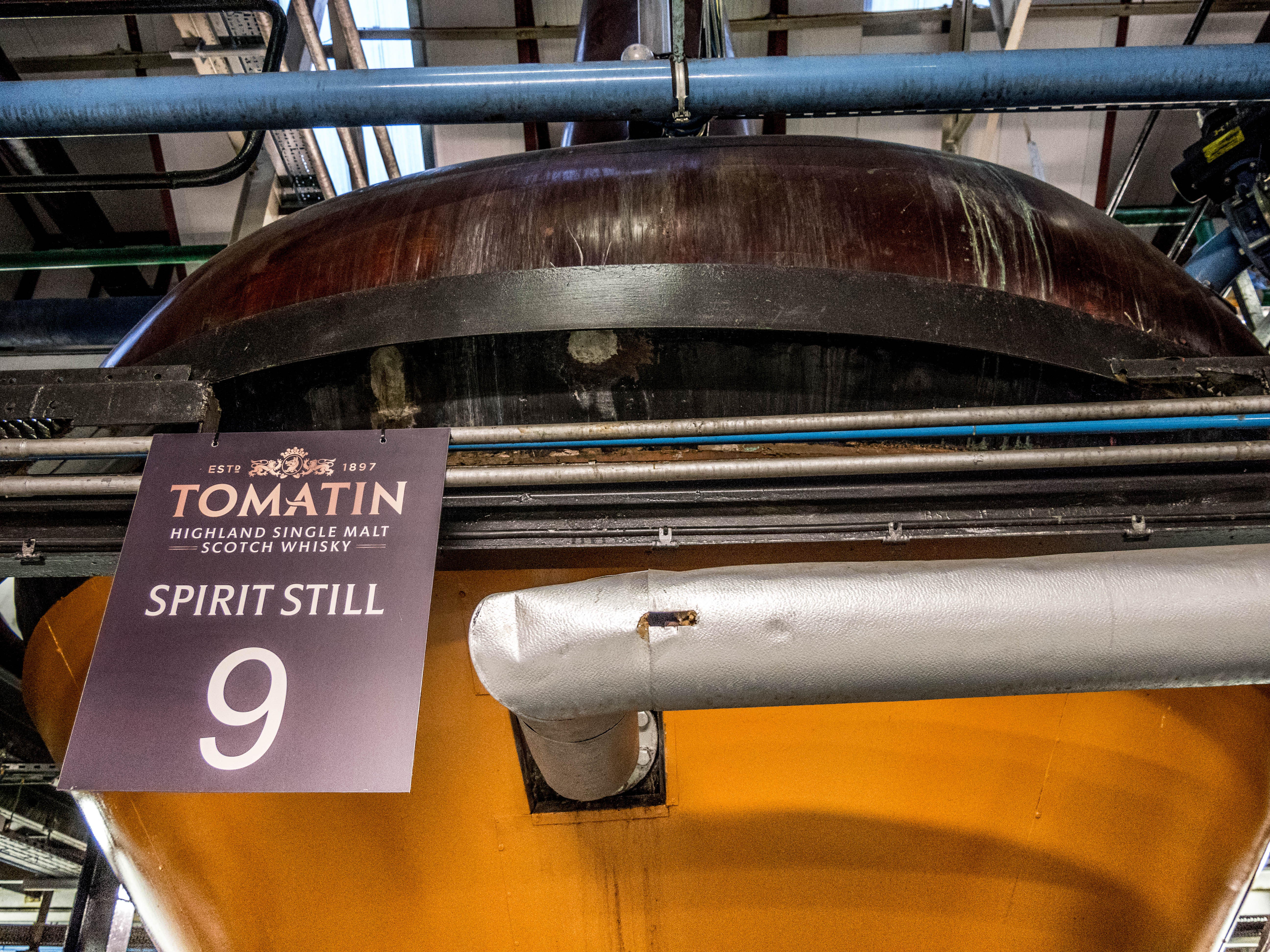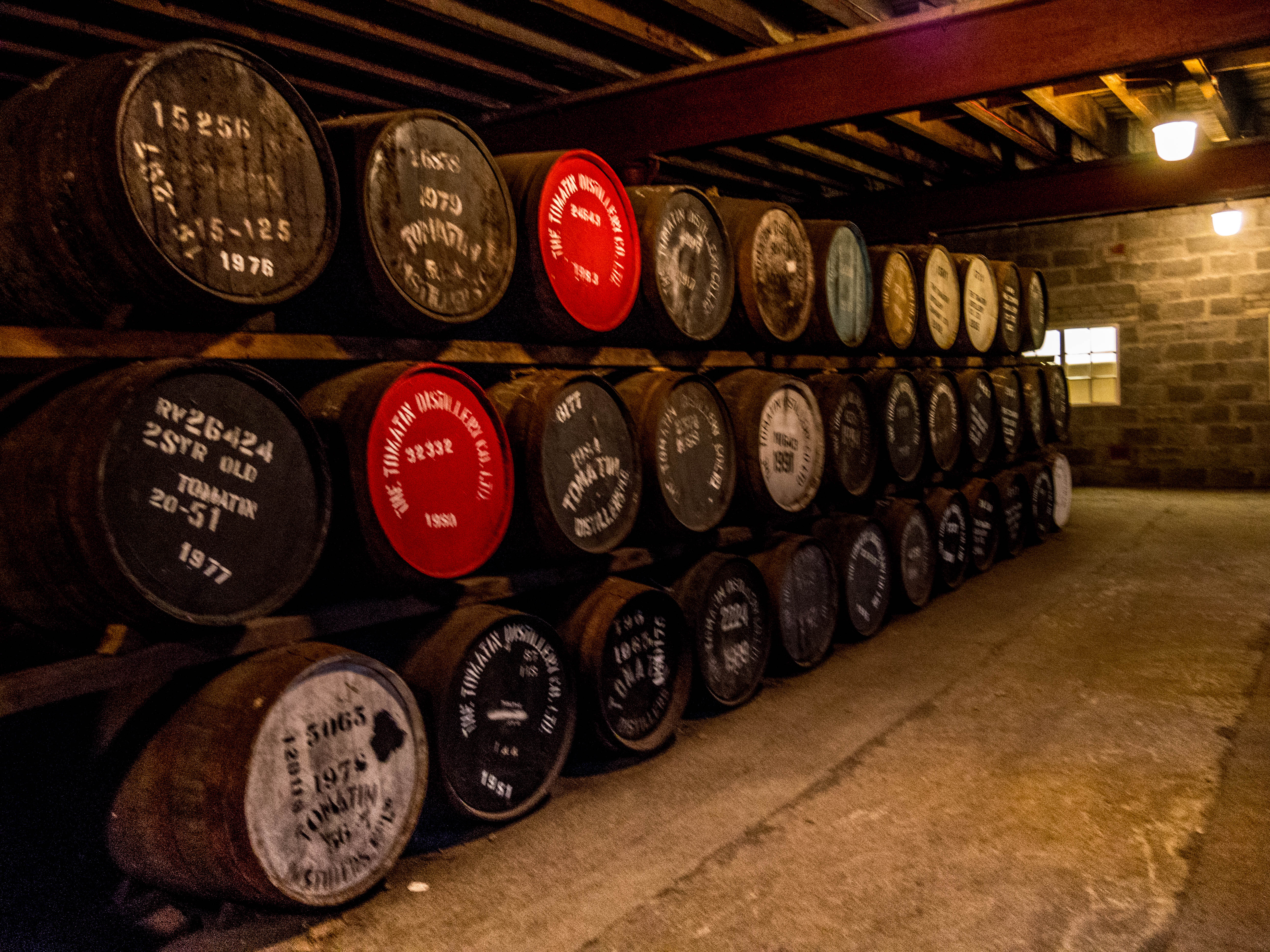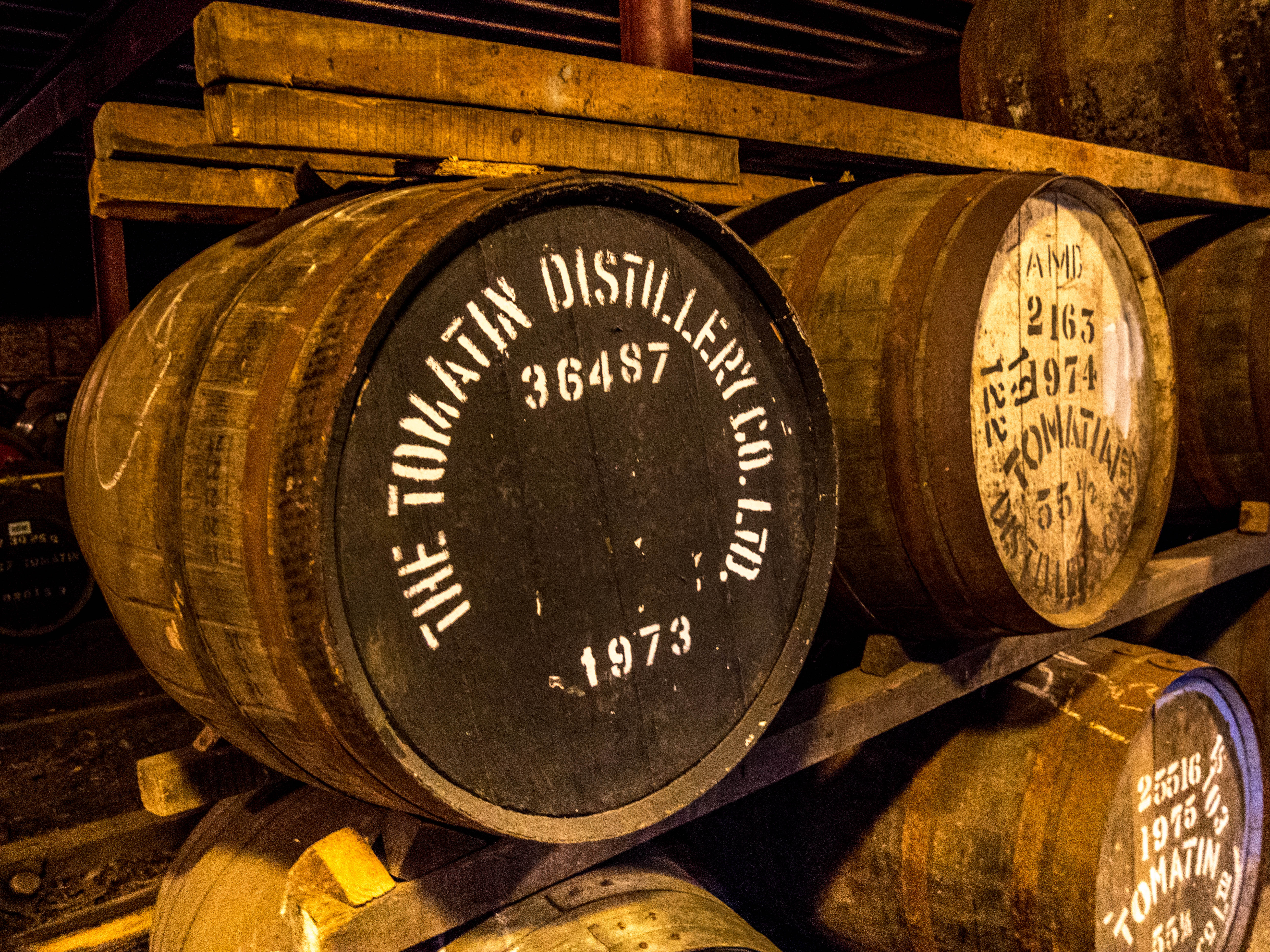 Pour nous remettre de tout ça, il fallait bien un petit whisky et LA distillerie du coin, c’est Tomatin. Aujourd’hui, la distillerie est calme mais la veille encore, tout le monde était au turbin pour terminer la mise au tonneau de leur whisky plus tourbé. Tout bénéfice finalement, puisque nous ne serons pas dans les pattes du personnel pour la visite ! La grande caractéristique de Tomatin, c’est que son ingrédient principal, l’eau, coule juste ici. C’est celle de la Alt-na-Frith, une des rares distilleries écossaises à avoir une source d’eau directe. C’est que le coin est plutôt isolé et lorsque la distillerie fut construite à la fin du XIXe siècle, les fondateurs demandèrent à l’architecte de construite également des maisons pour la main d’oeuvre. A ce jour, encore 80 pour-cent des employés vivent sur le site. L’autre particularité, c’est que c’est la seule distillerie qui possède encore un tonnelier. Les tonneaux ne sont pas fabriqués (d’autant plus que les whiskies reposent en anciens fûts de sherry ou de bourbon) mais bien modifiés ou réparés sur place. J’ai l’impression d’avoir mis les pieds dans une grande famille plus que dans une petite entreprise. Une entreprise qui a l’air de marcher plutôt bien tant je verrais de publicité pour la marque lors de nos déplacements dans la région.