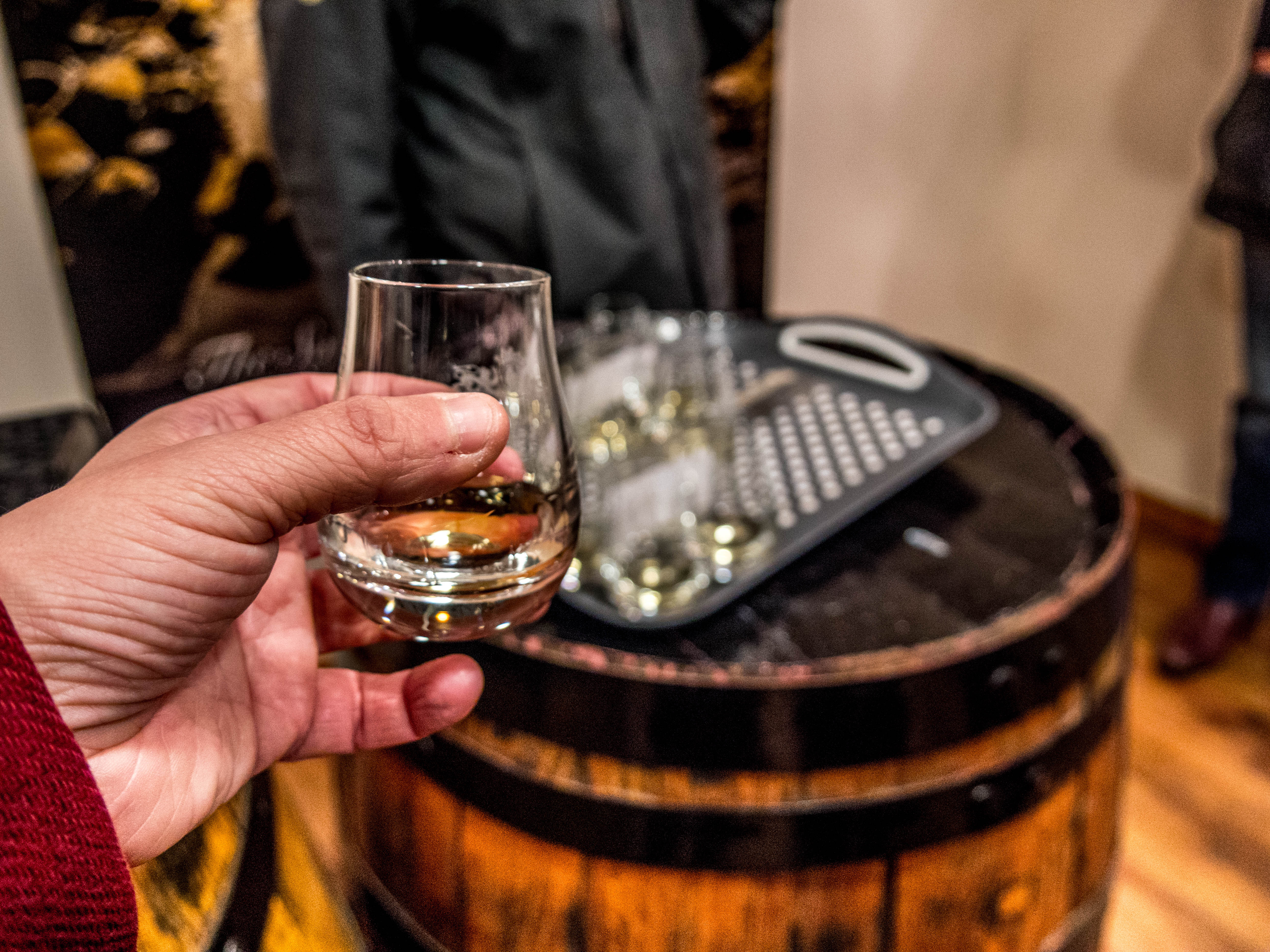 Enfin, nous arrivons au cœur des choses : la dégustation. Trois whiskies nous sont proposés pour exercer nos palais : le whisky de base, rond, aux notes vanillées, un whisky plus vieux, vieilli en fût de bourbon, plus complexe et corsé et enfin, une version plus tourbée et dirons-nous… masculine mais harmonieuse, sans que cela agresse. Nous voilà donc tout joyeux et détendus pour démarrer le séjour !
