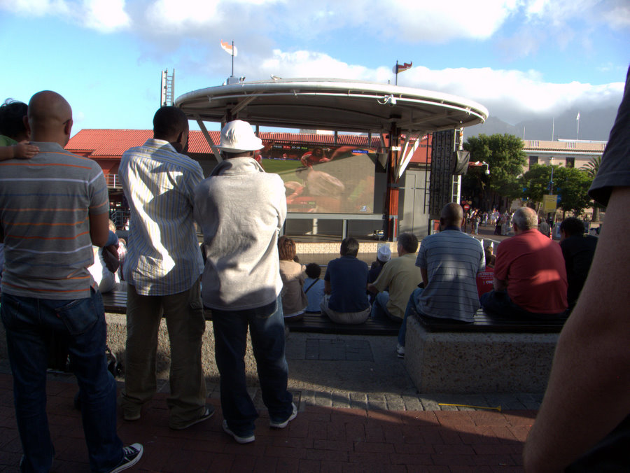 Sur les bancs des jardins de Company Gardens, dans les marchés (ici, de Grand Parade), sur les perrons du quartier malais de Bo Kaap, sur les terrasses, à l’heure du rugby en collectif.