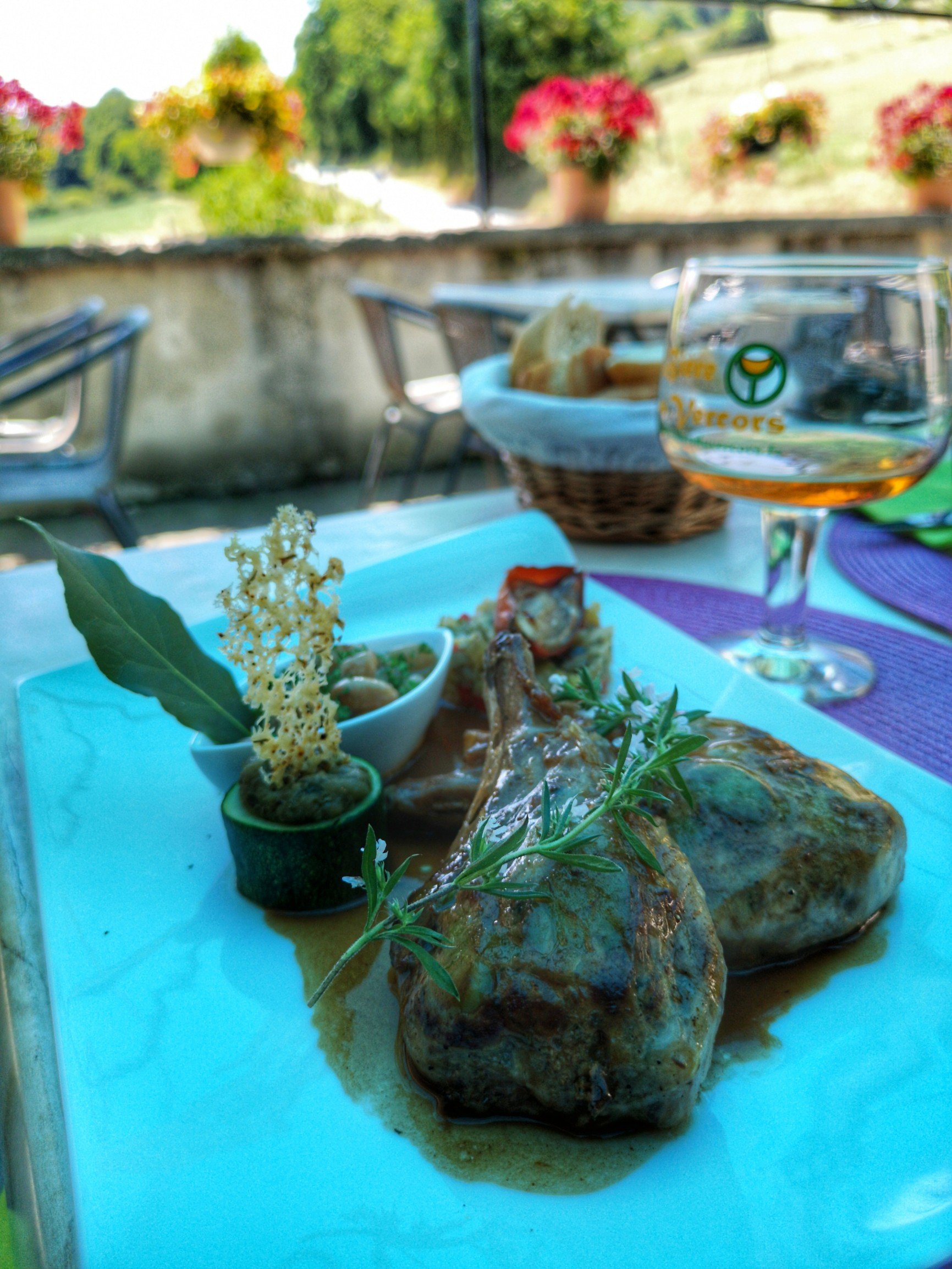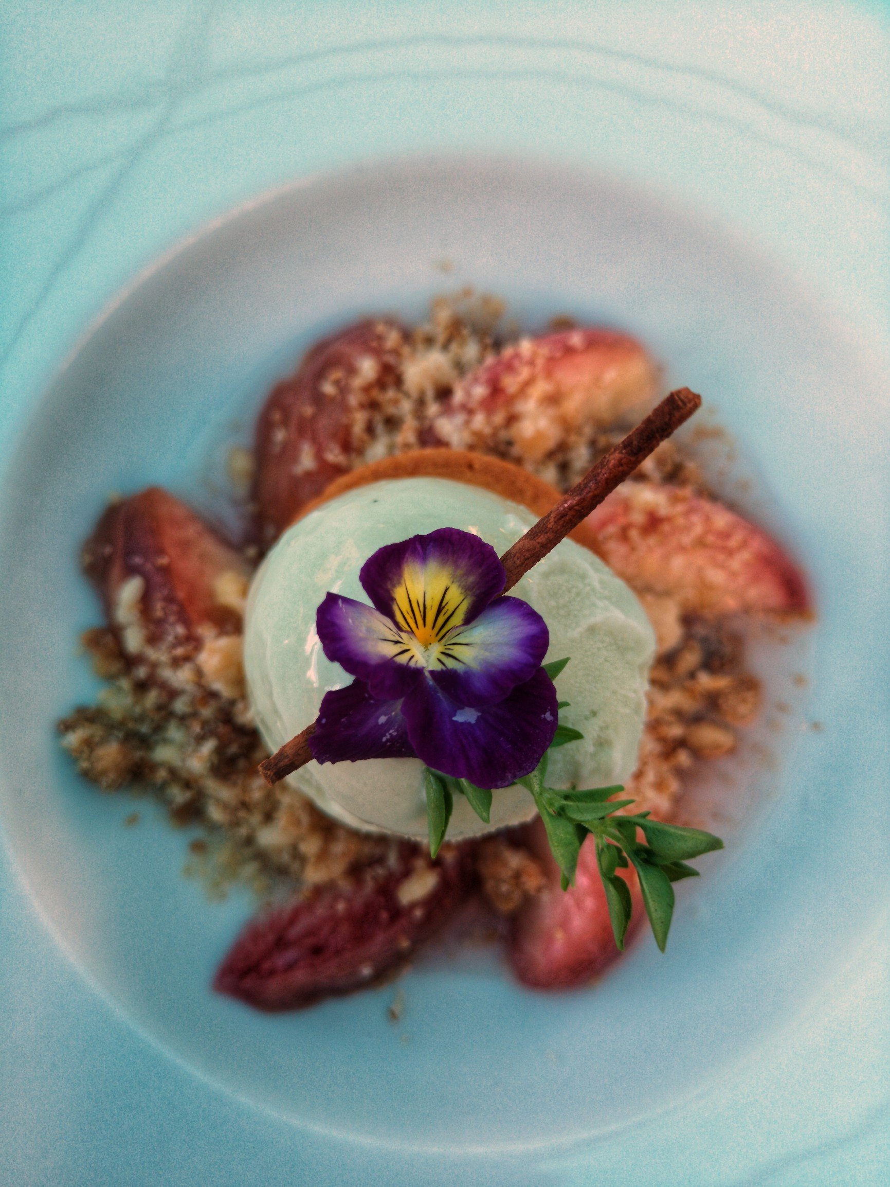 L’Auberge du Collet Vercors restera mon coup de cœur culinaire de ce séjour (et peut-être bien même parmi ceux de l’année). L’auberge ne paie pas de mine au premier abord, ce qui fait que la surprise qui nous attend dans nos assiettes est encore plus grande. Bon, nous ne devions pas avoir l’air très frais après deux jours de rando et un bivouac, peut-être même qu’on sentait le bouquetin. Ça tombe bien, nous sommes installés en terrasse sous une pergola avec un verre de clairette de Die bien fraîche pour nous souhaiter la bienvenue. A la barre du restaurant, on retrouve Christian qui définit son style comme de la cuisine créative et on va vite s’en rendre compte avec le repas. Comme entrée, de la truite et un smoothie de betterave-framboise, comme plat principal un agneau en crépinette de fèves avec des haricots blancs, des légumes du soleil et une échalote brûlée, évidemment, un petit plateau de fromages et en guise de dessert, une glace à la menthe maison posée sur des morceaux de pêches blanches et son crumble. Chaque étape du menu était un délice et chaque plat présenté avec élégance et finesse. Franchement, une adresse chaudement recommandée !