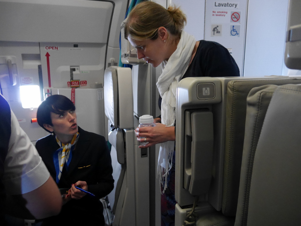 Connaissant des lecteurs qui ont peur en avion, je me demande si l’équipage est au courant quand un passager qui va embarquer a la phobie des avions et a besoin d’aide. C’est une des hôtesses qui me répond sur ce point. Si le passager s’est signalé avant l’embarquement, le personnel de la porte d’embarquement va informer l’équipage et le passager sera pris en charge et rassuré. « Je leur dit que je suis suis une maman, qui aime la vie, que je ne ferai pas ce métier si n’était pas sûr ».