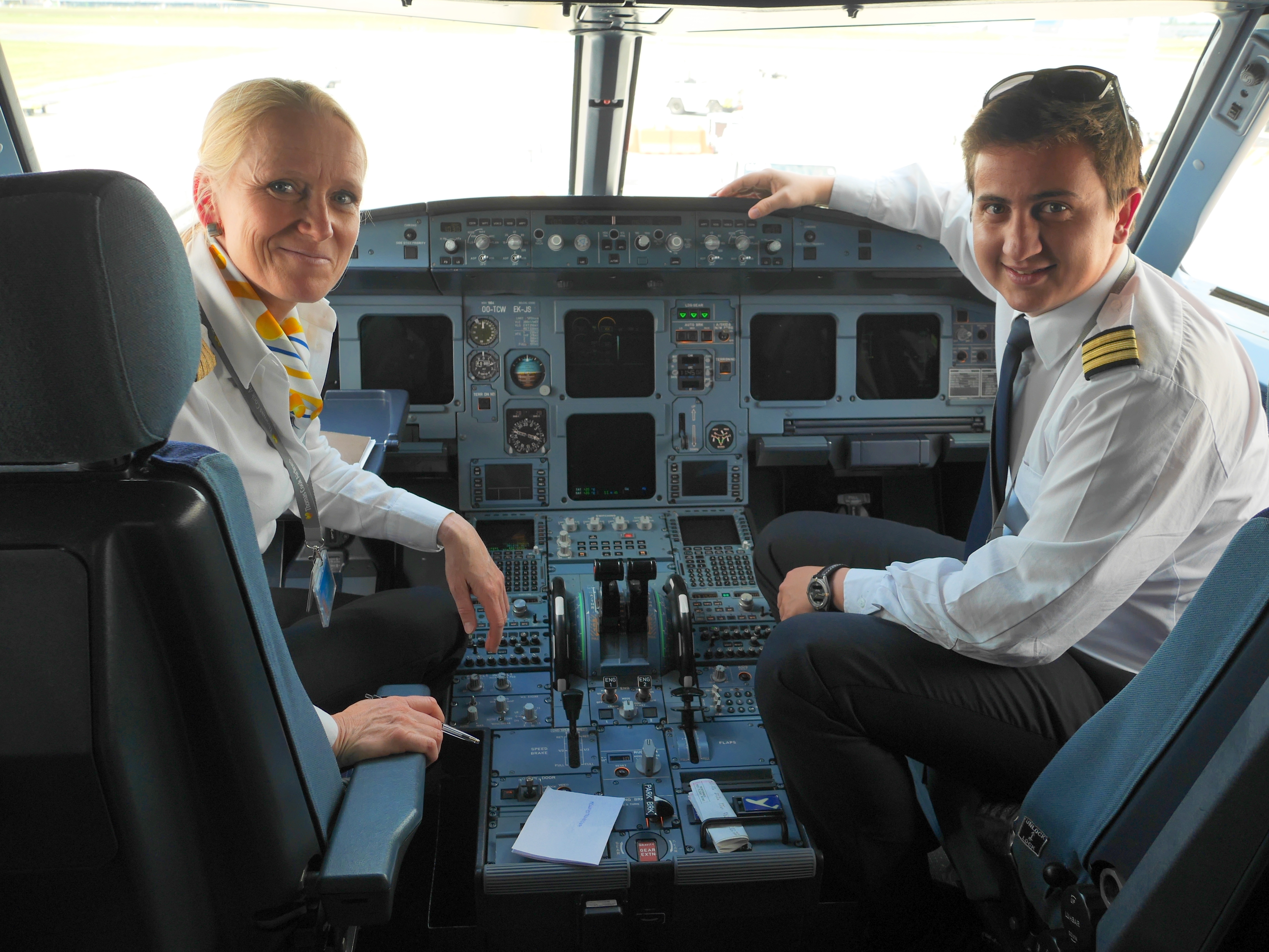 Je m’attarde pour dire au revoir à tout le monde, serrer la main de la commandante et son second et remercier chaleureusement mes « collègues » d’un jour. On se dépêche de faire une photo souvenir avant que le bus qui ramène les passagers au terminal ne me laisse en rade. L’A320, lui, repartira pour sa deuxième rotation de la journée, avec un autre équipage.